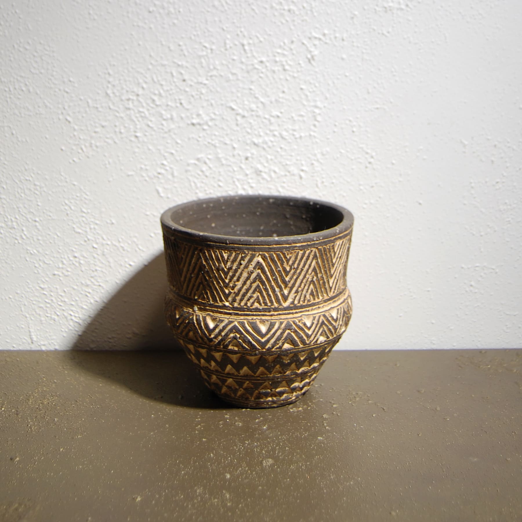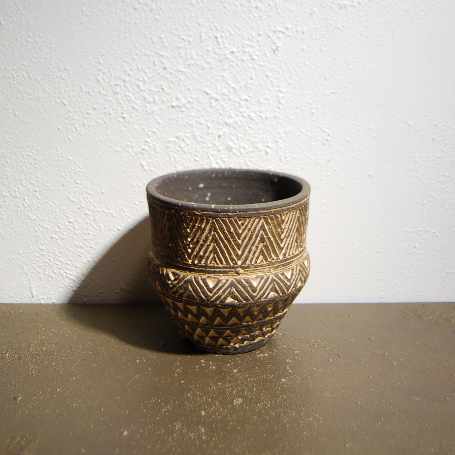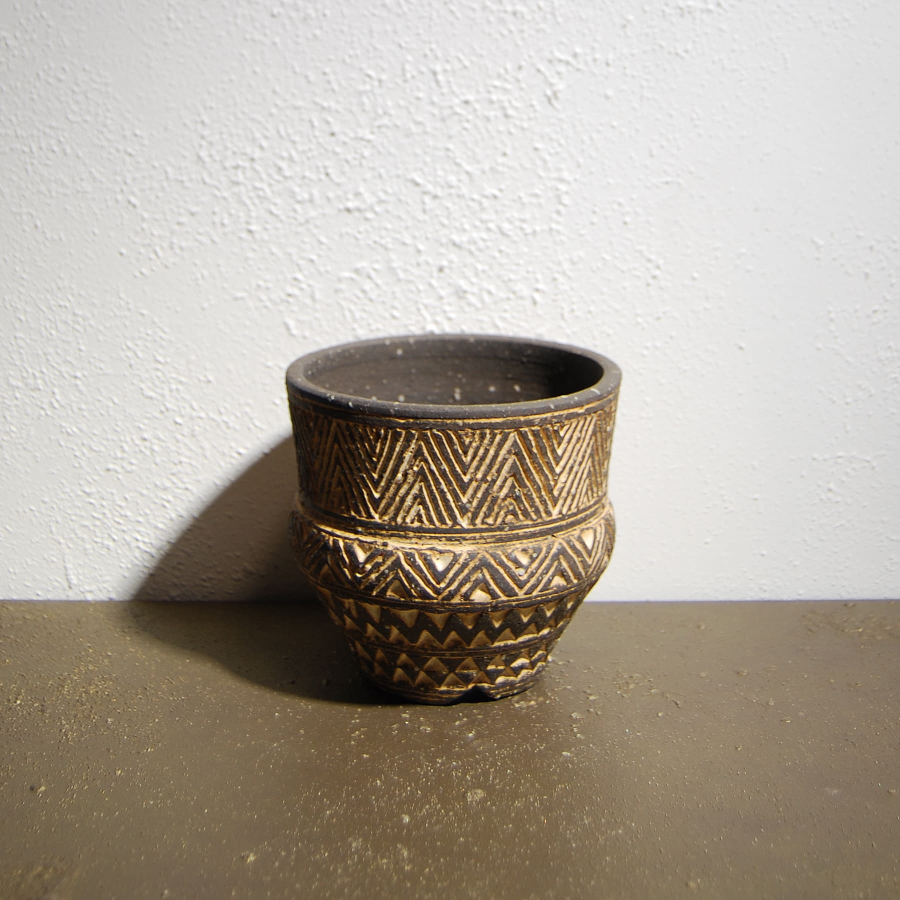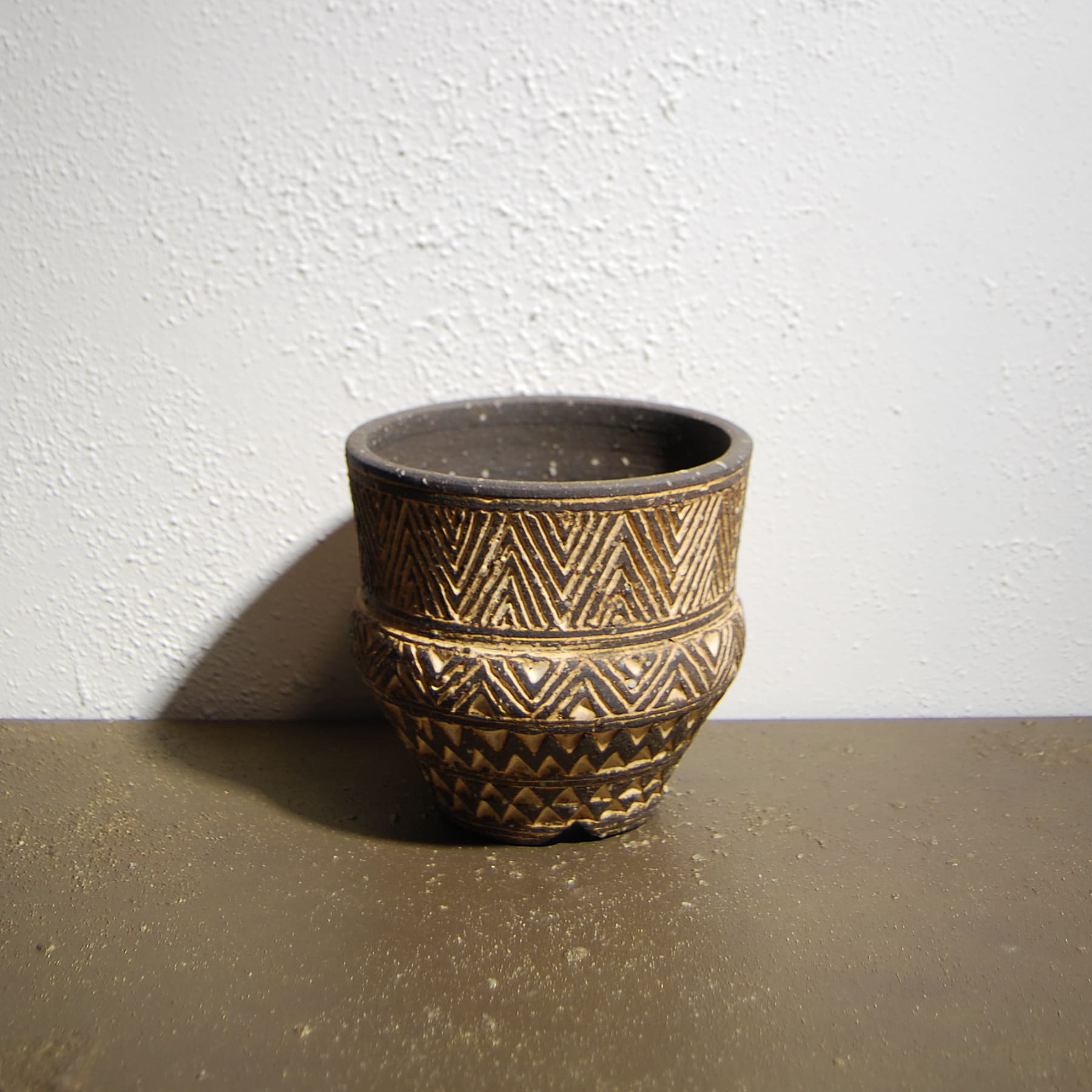 象嵌炭化焼成 刻文壺型植木鉢 232 荻野善史