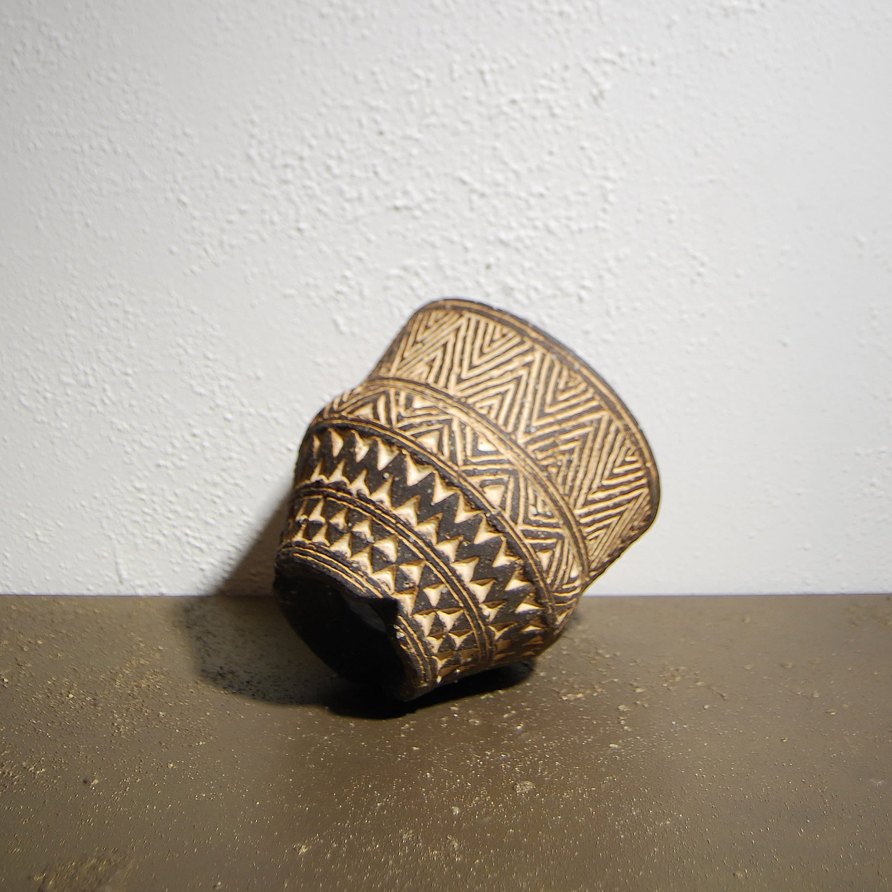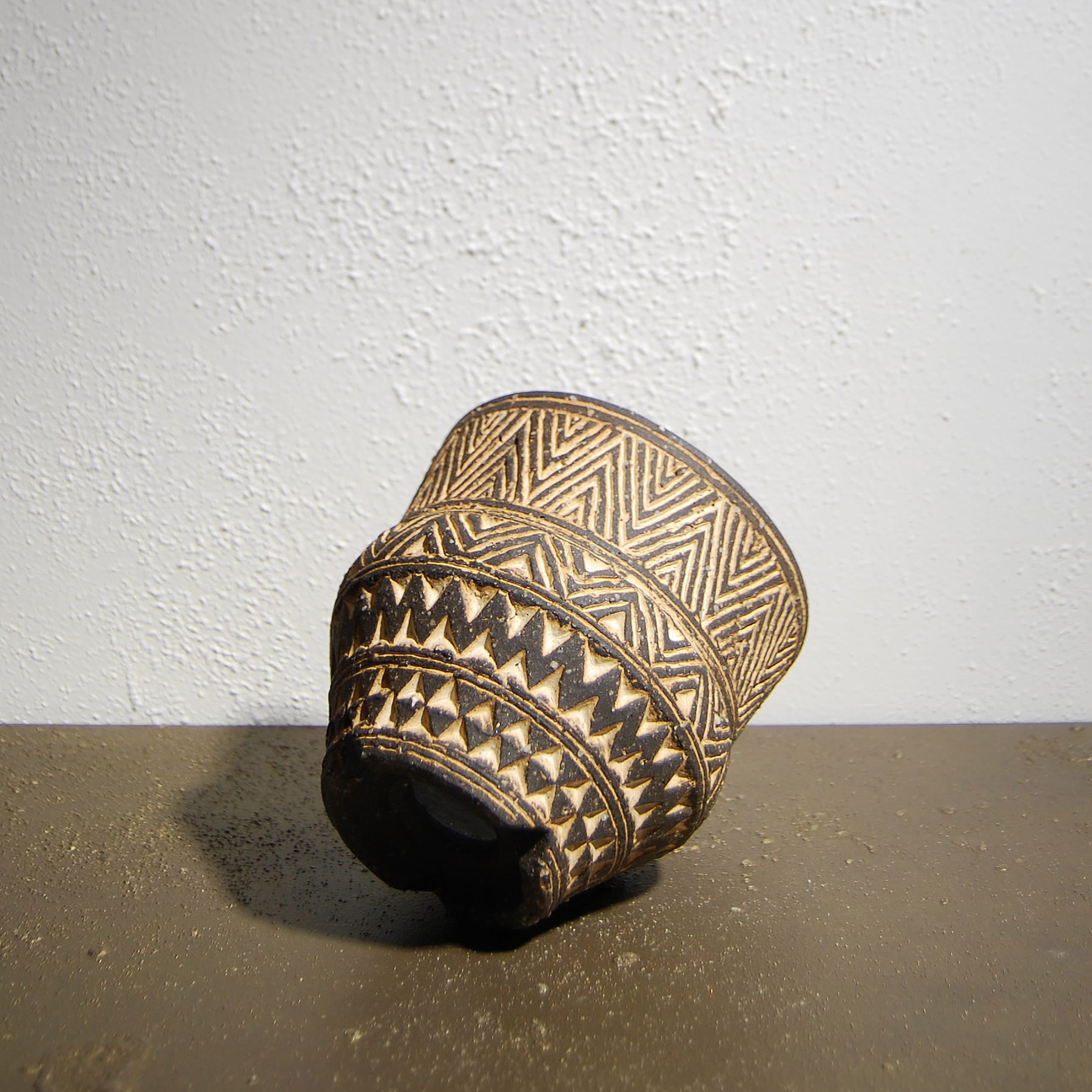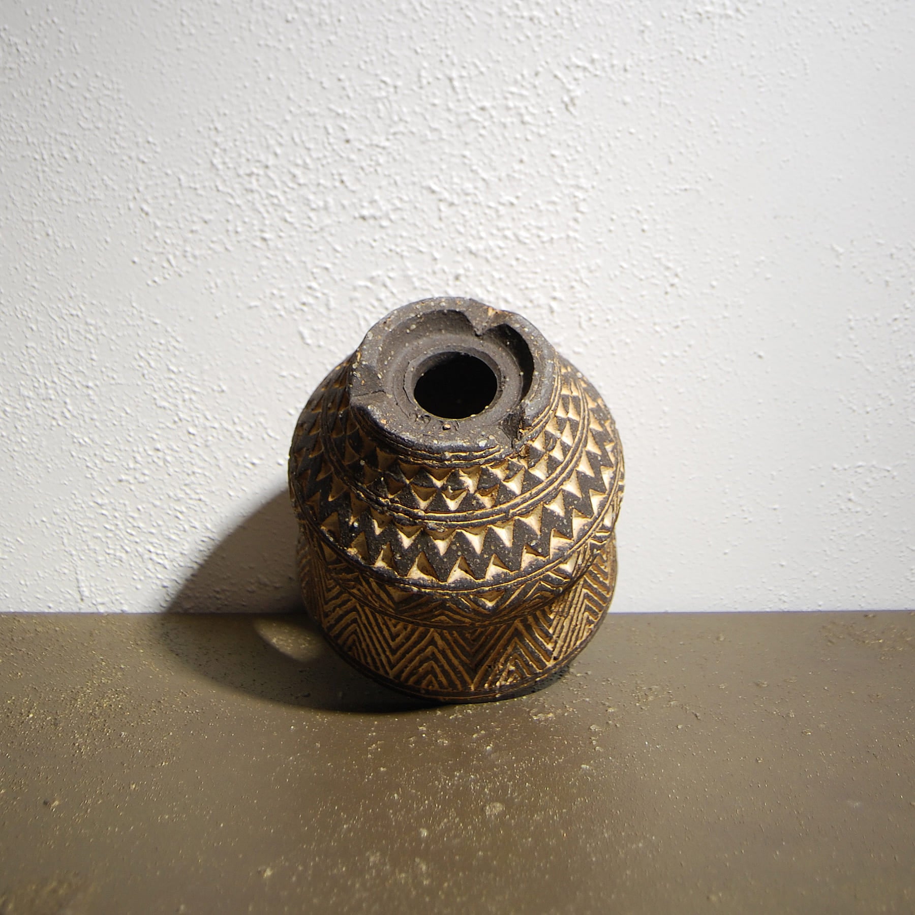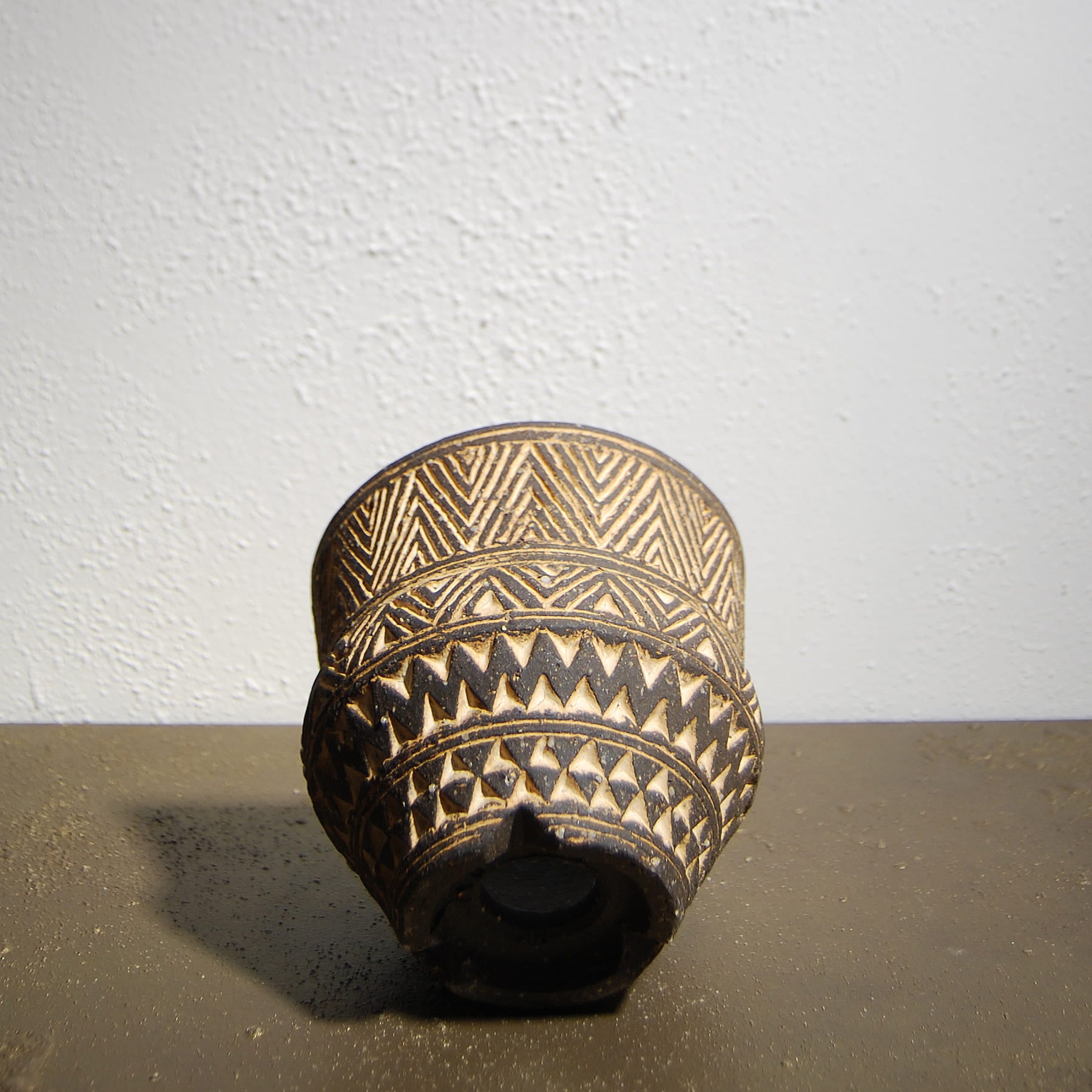 象嵌炭化焼成 刻文壺型植木鉢 232 荻野善史