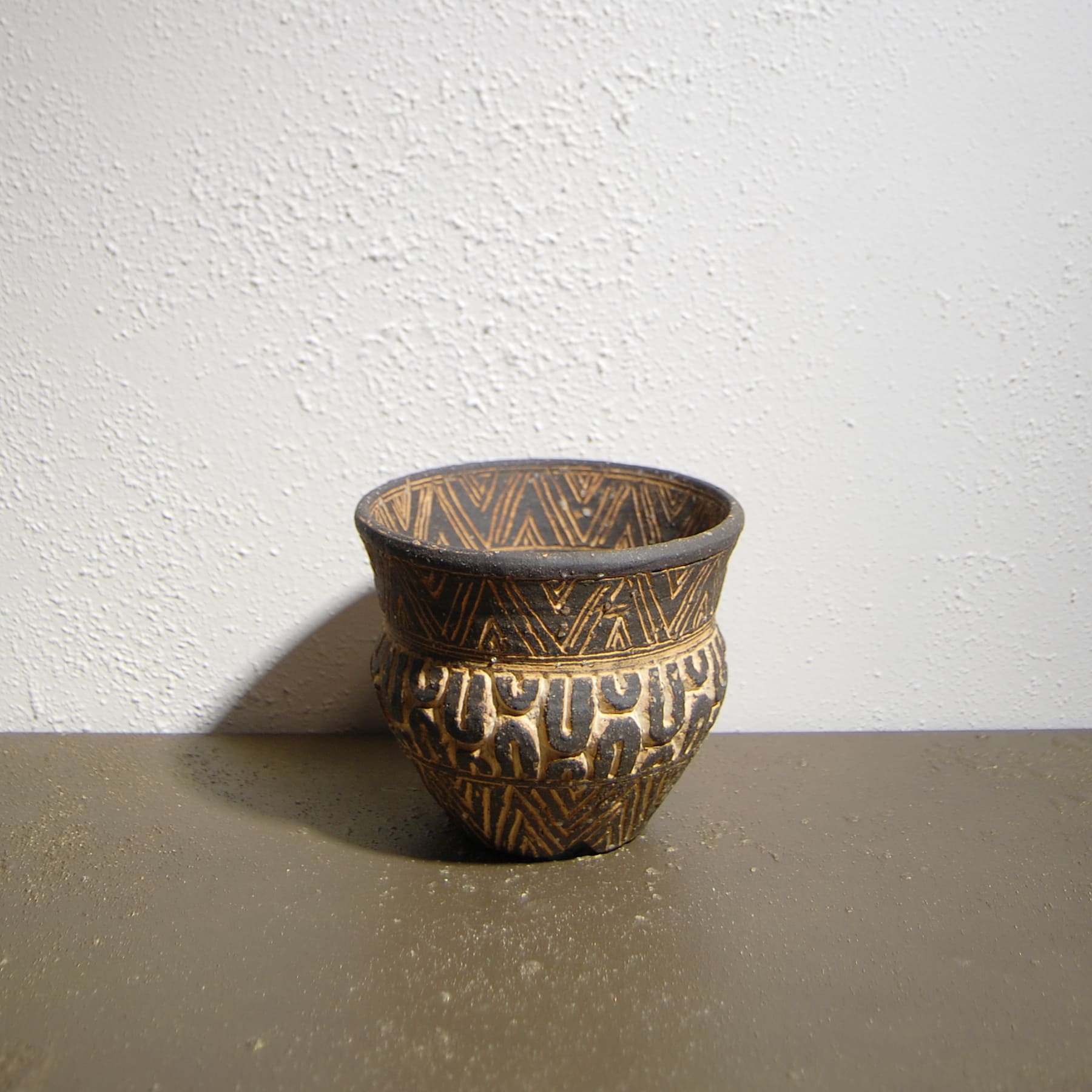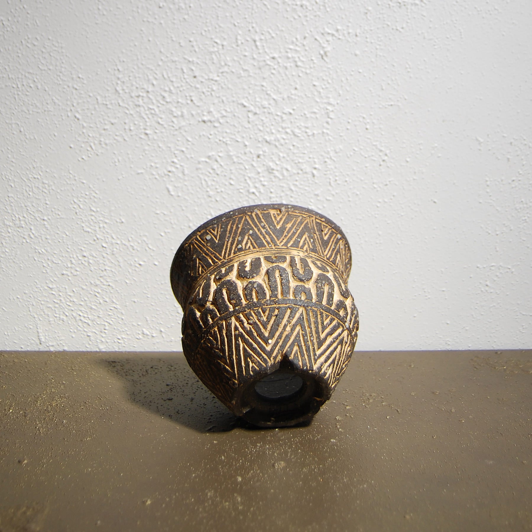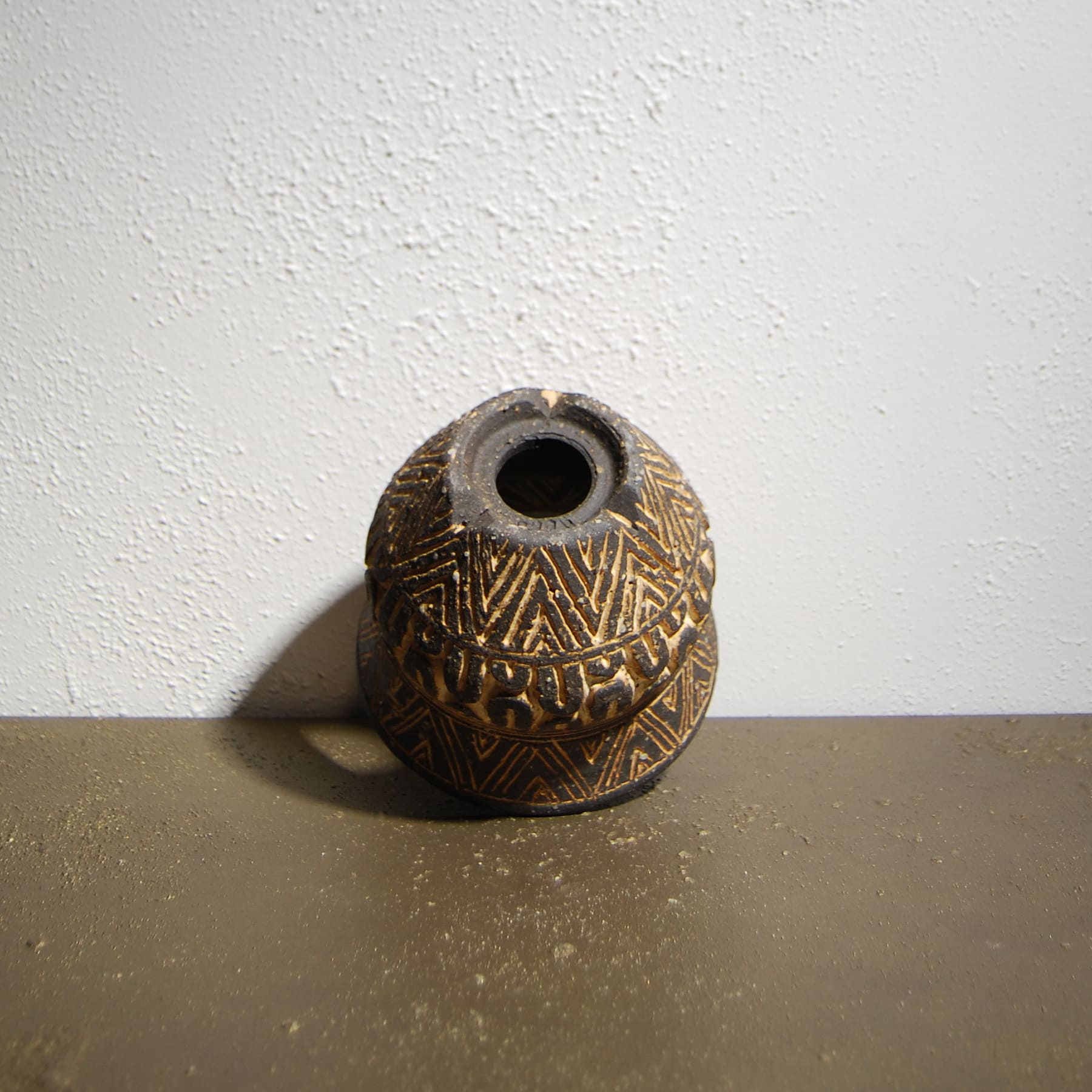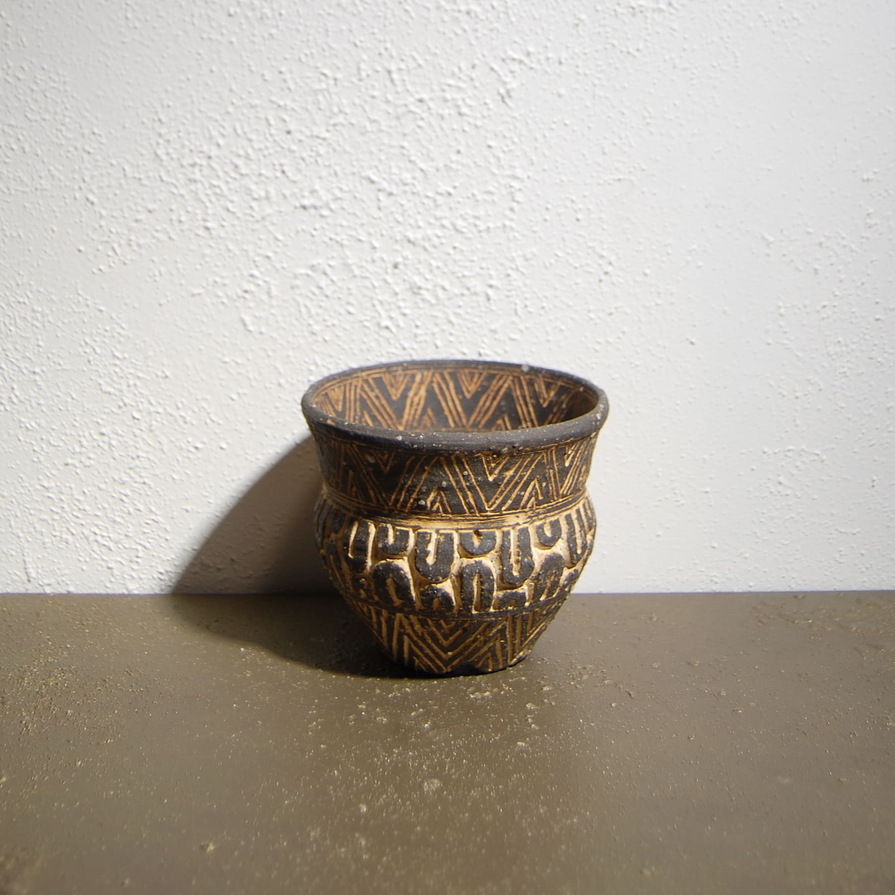 象嵌炭化焼成 刻文壺型植木鉢 237 荻野善史