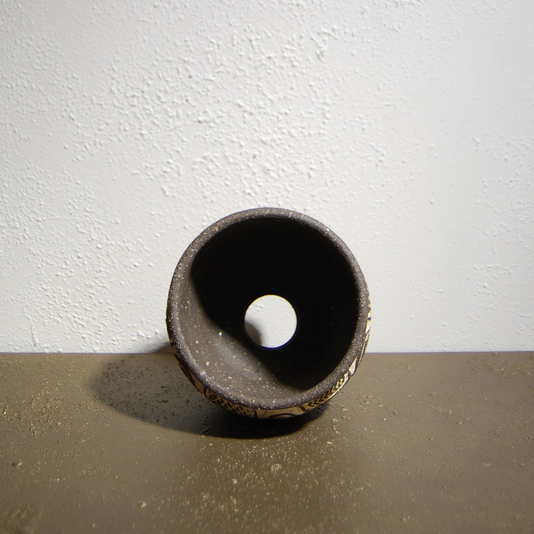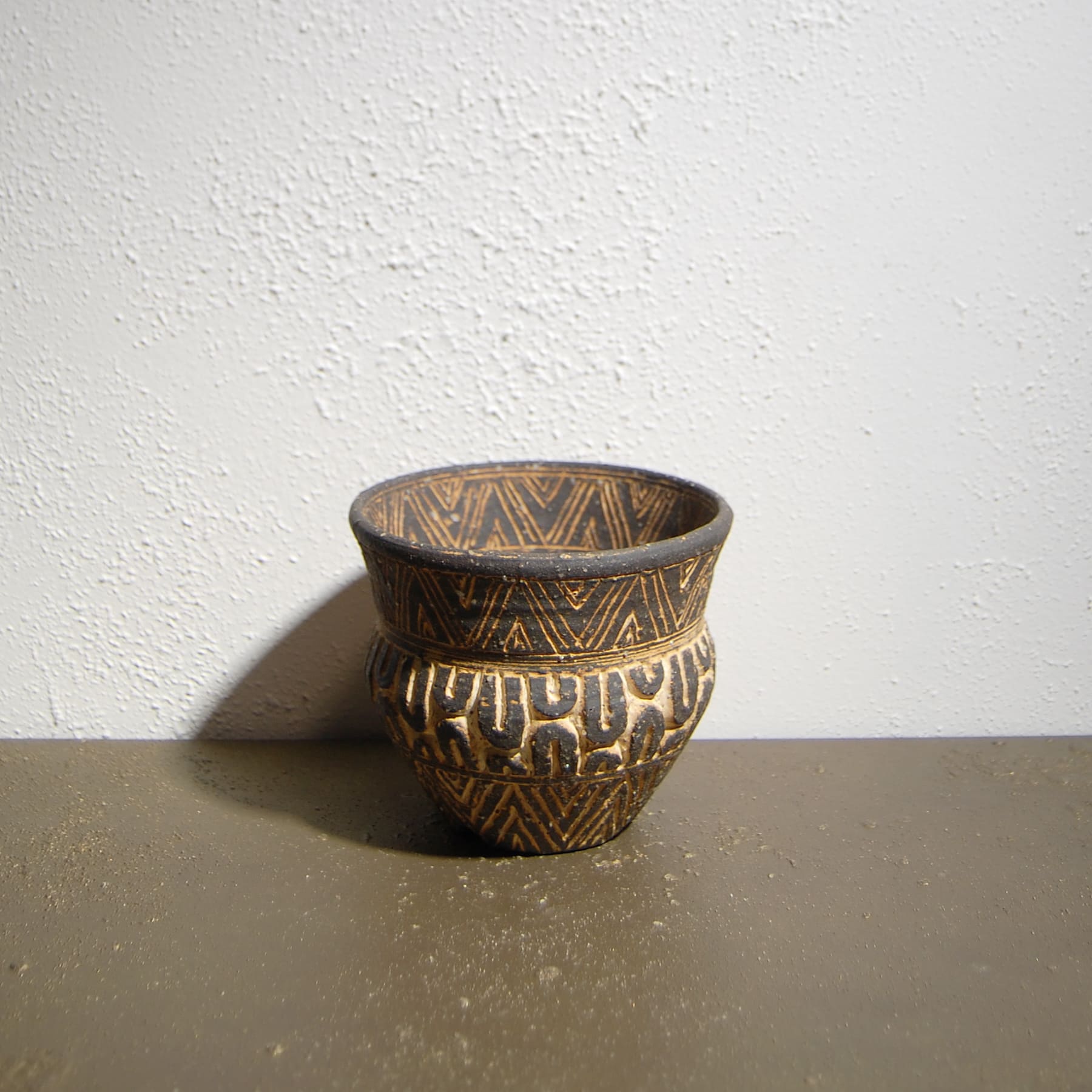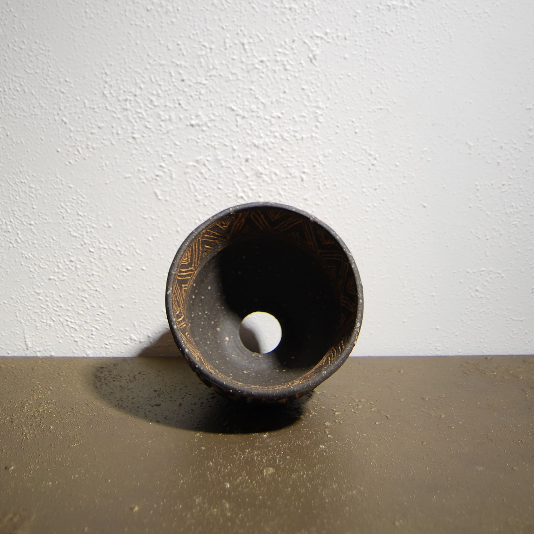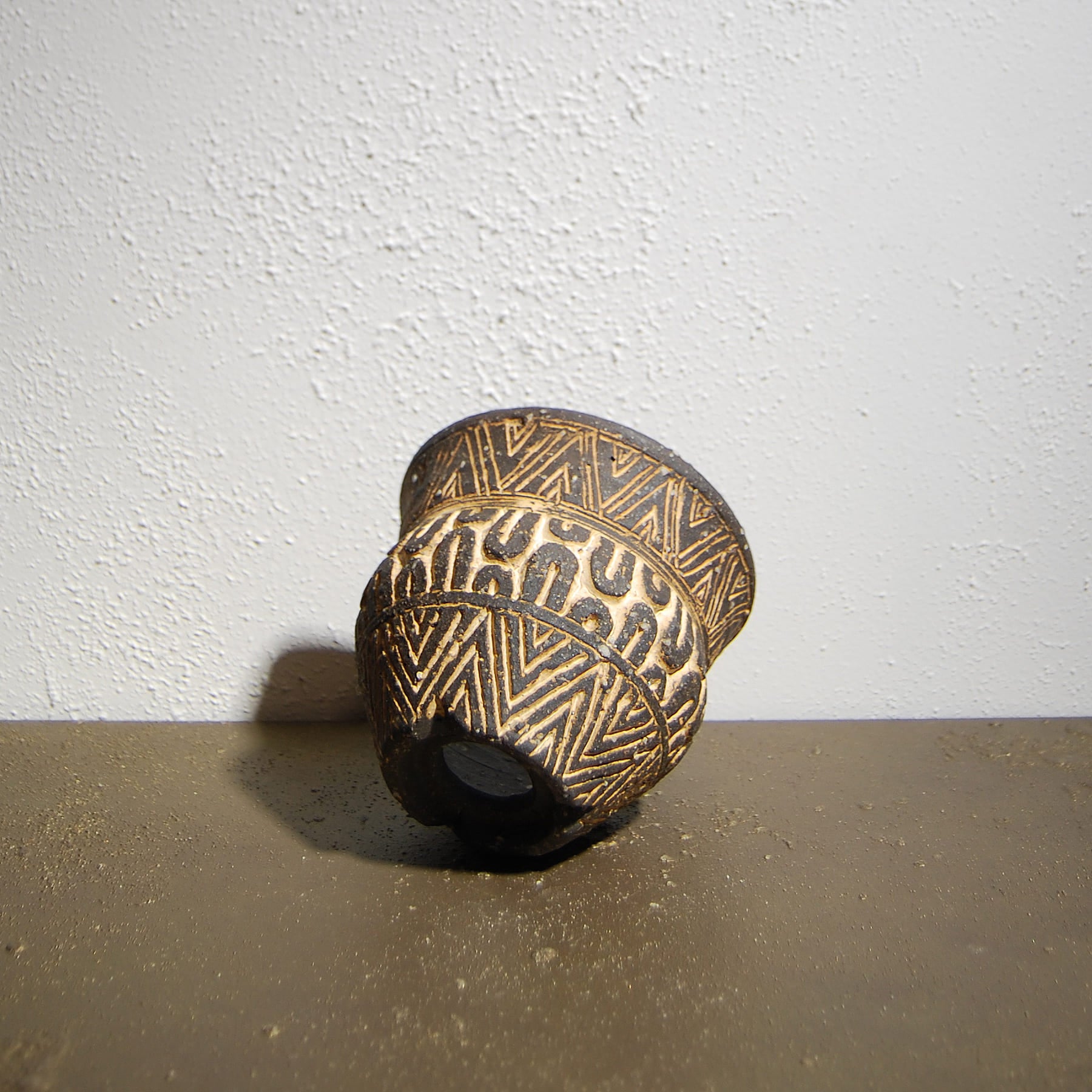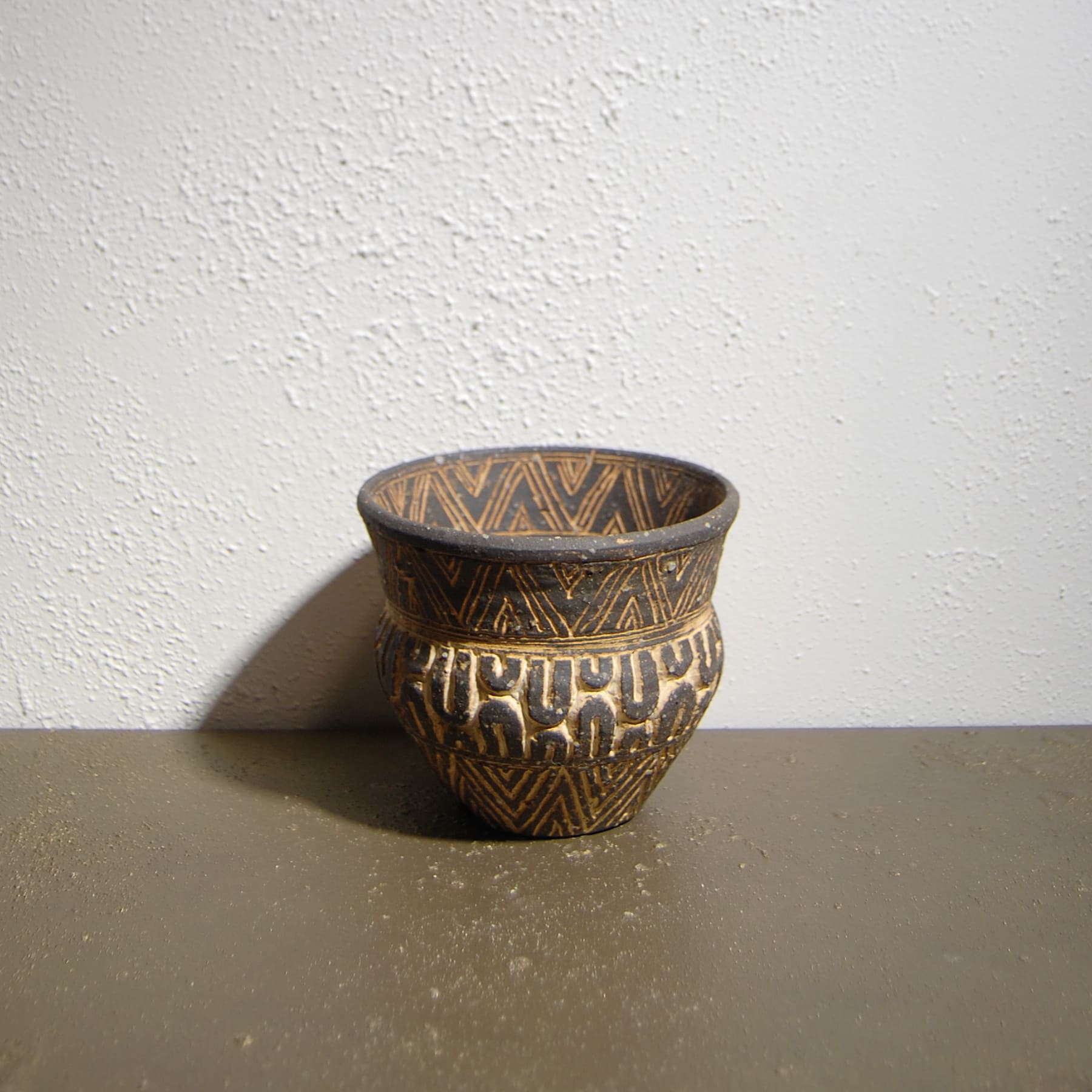 象嵌炭化焼成 刻文壺型植木鉢 237 荻野善史