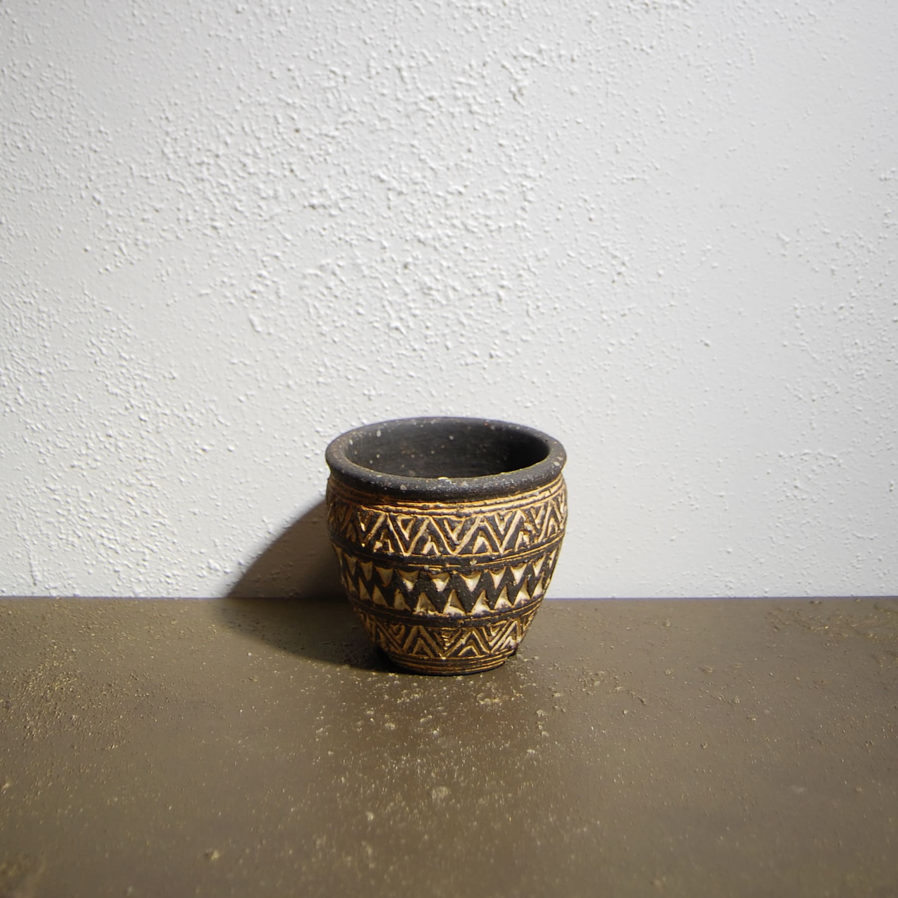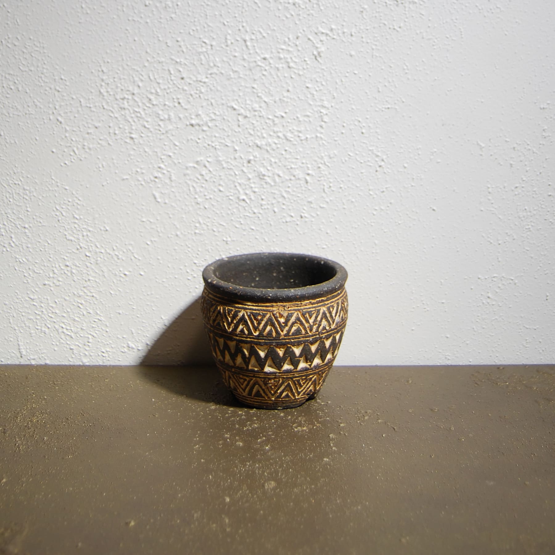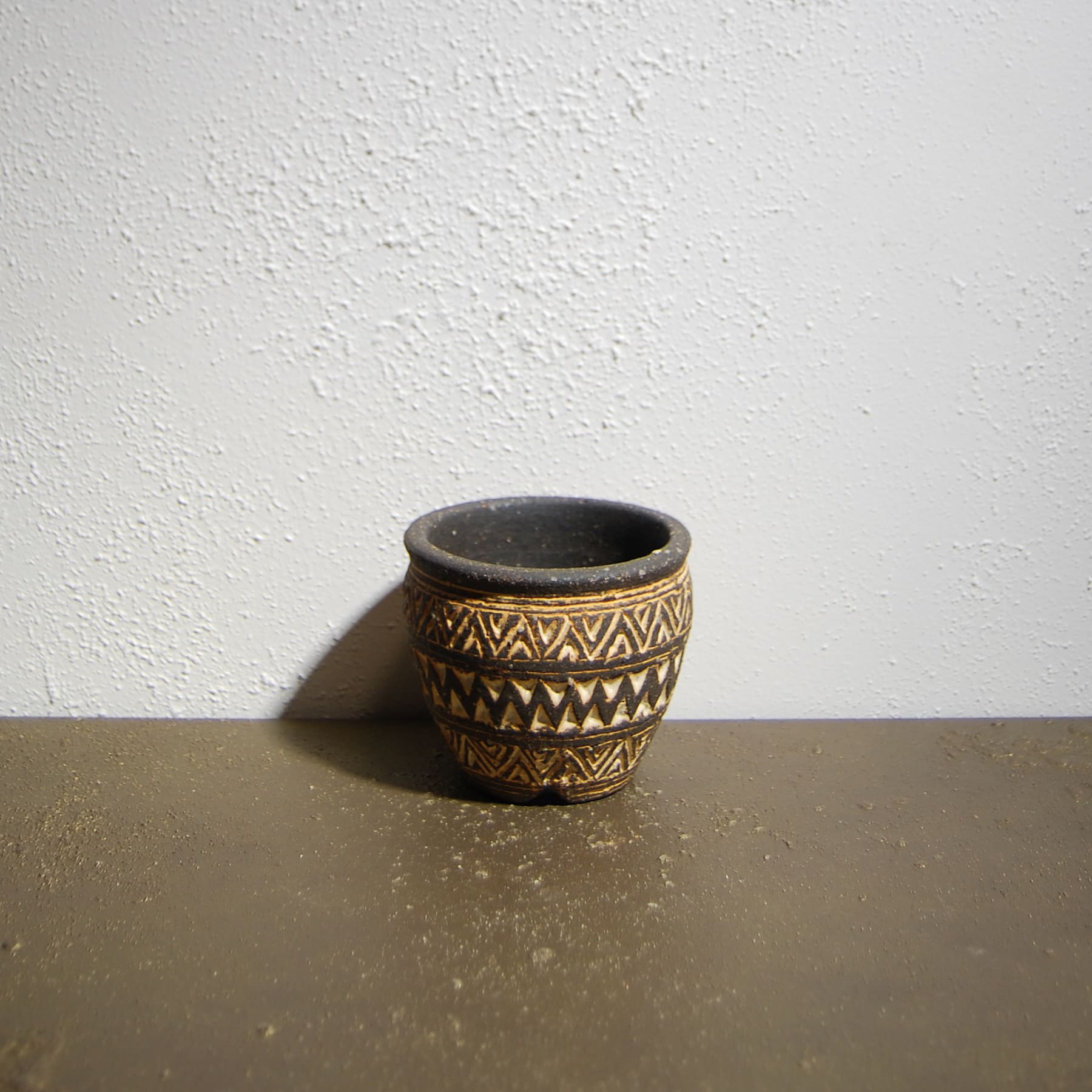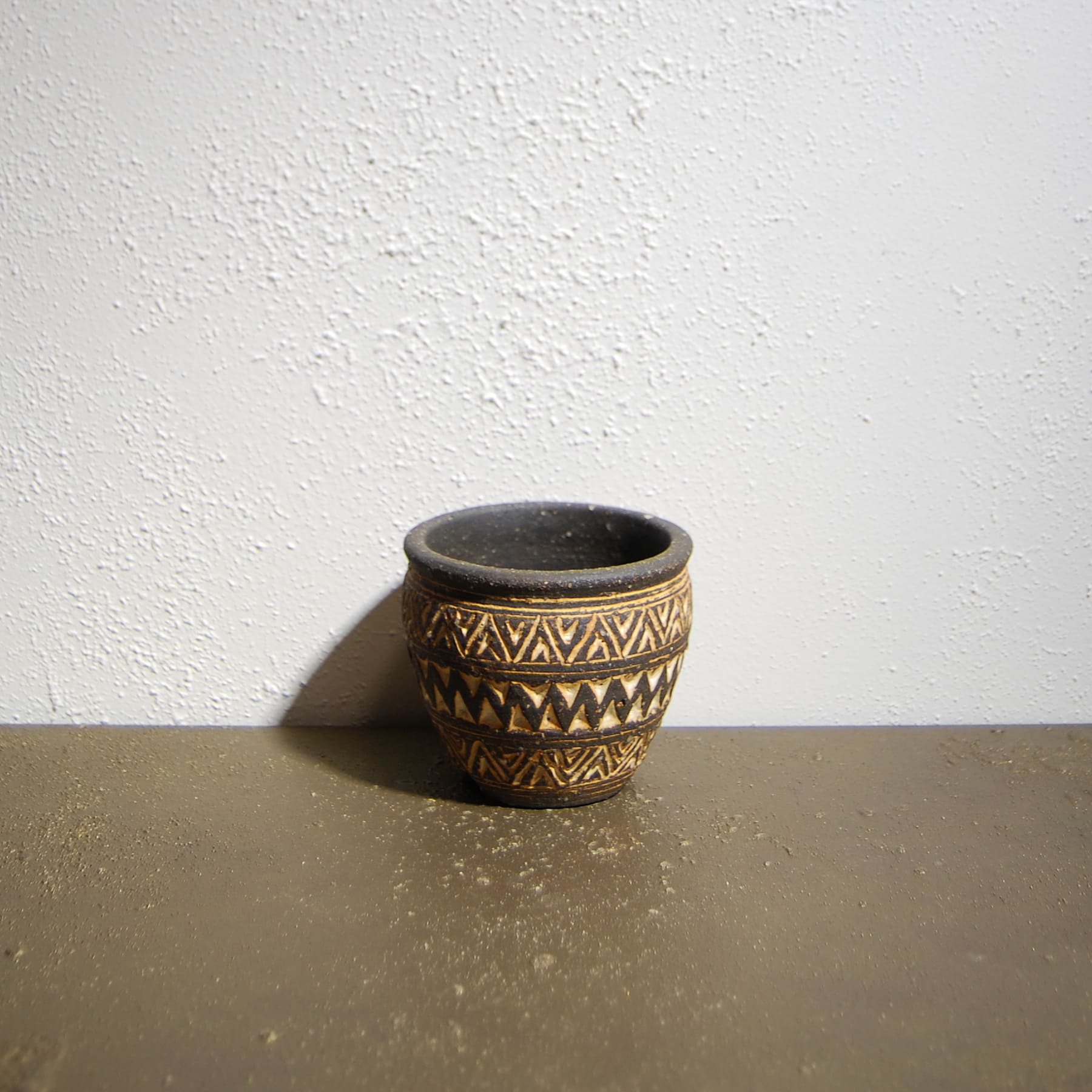 象嵌炭化焼成 刻文壺型植木鉢 241 荻野善史