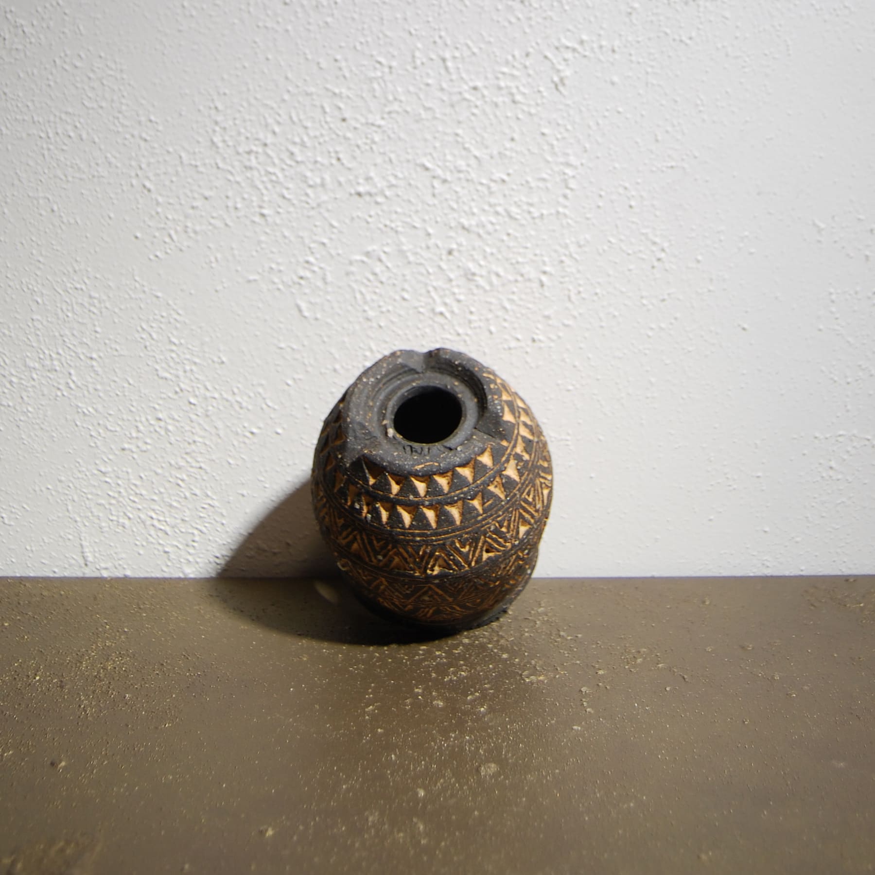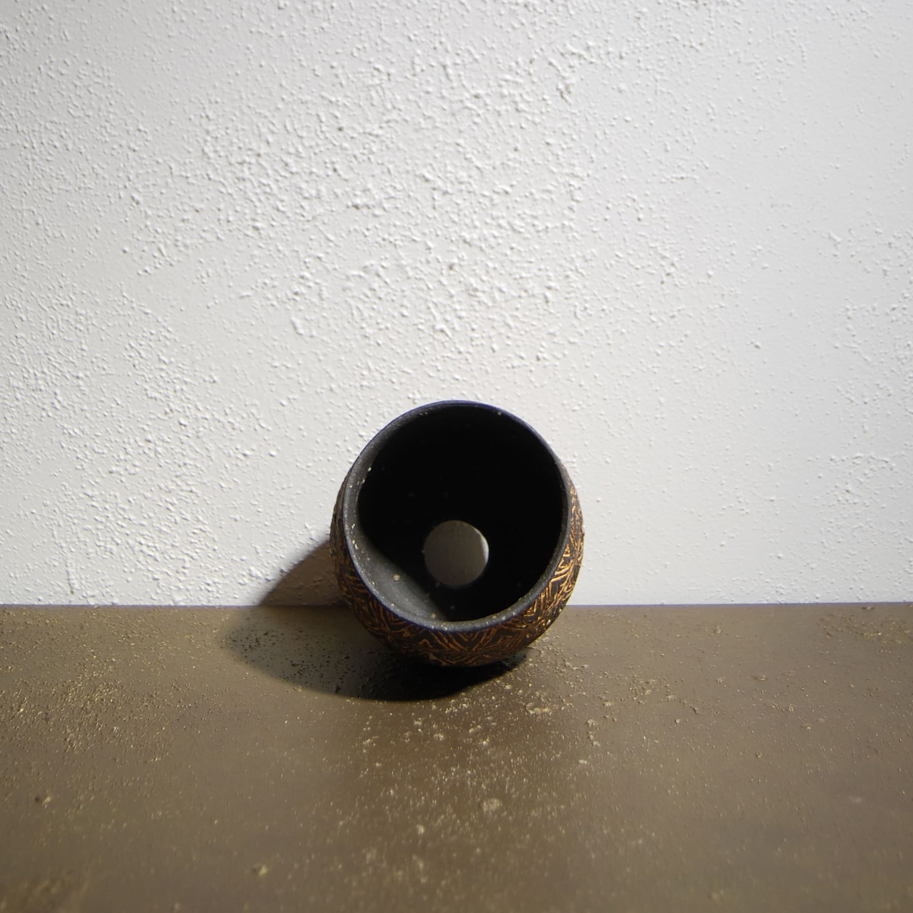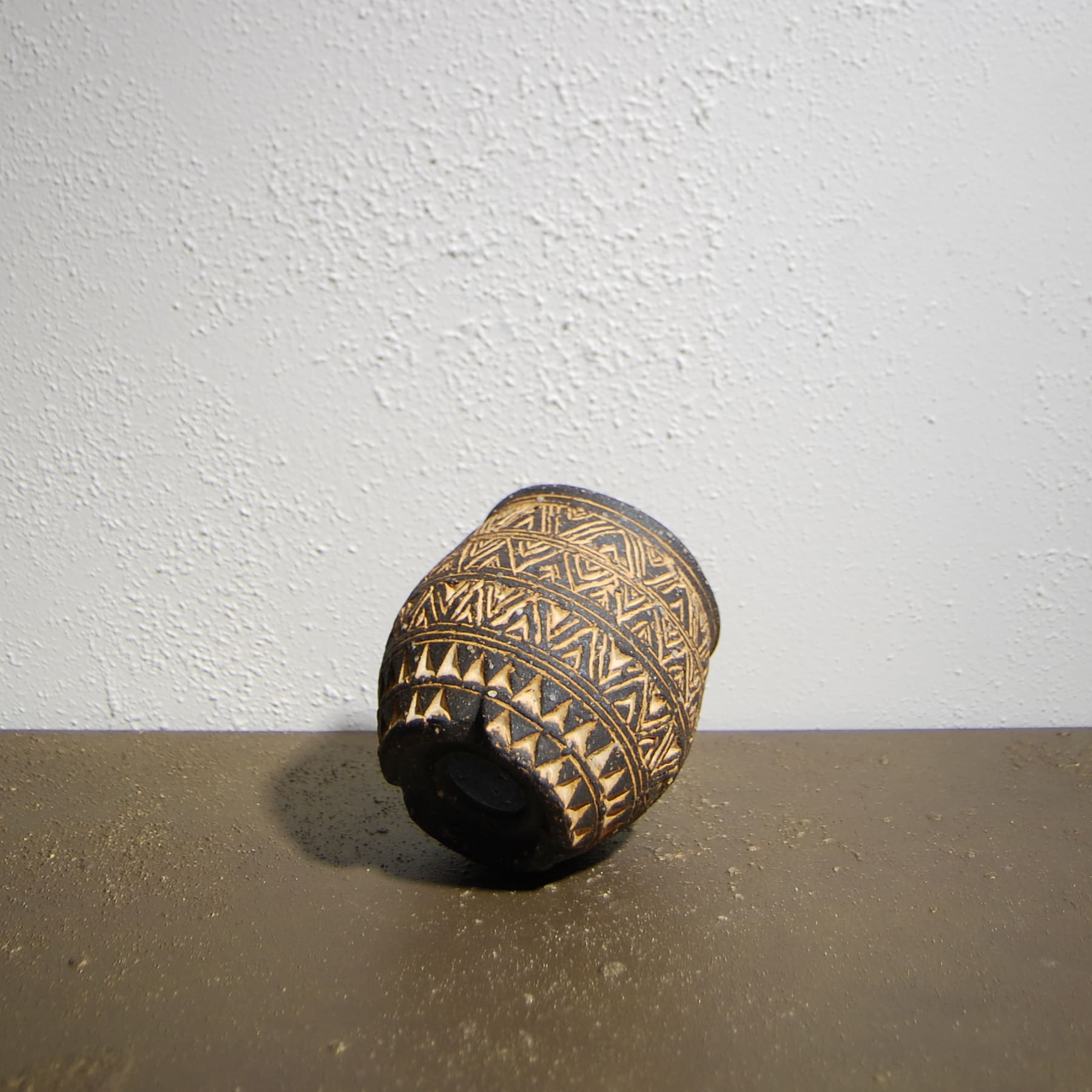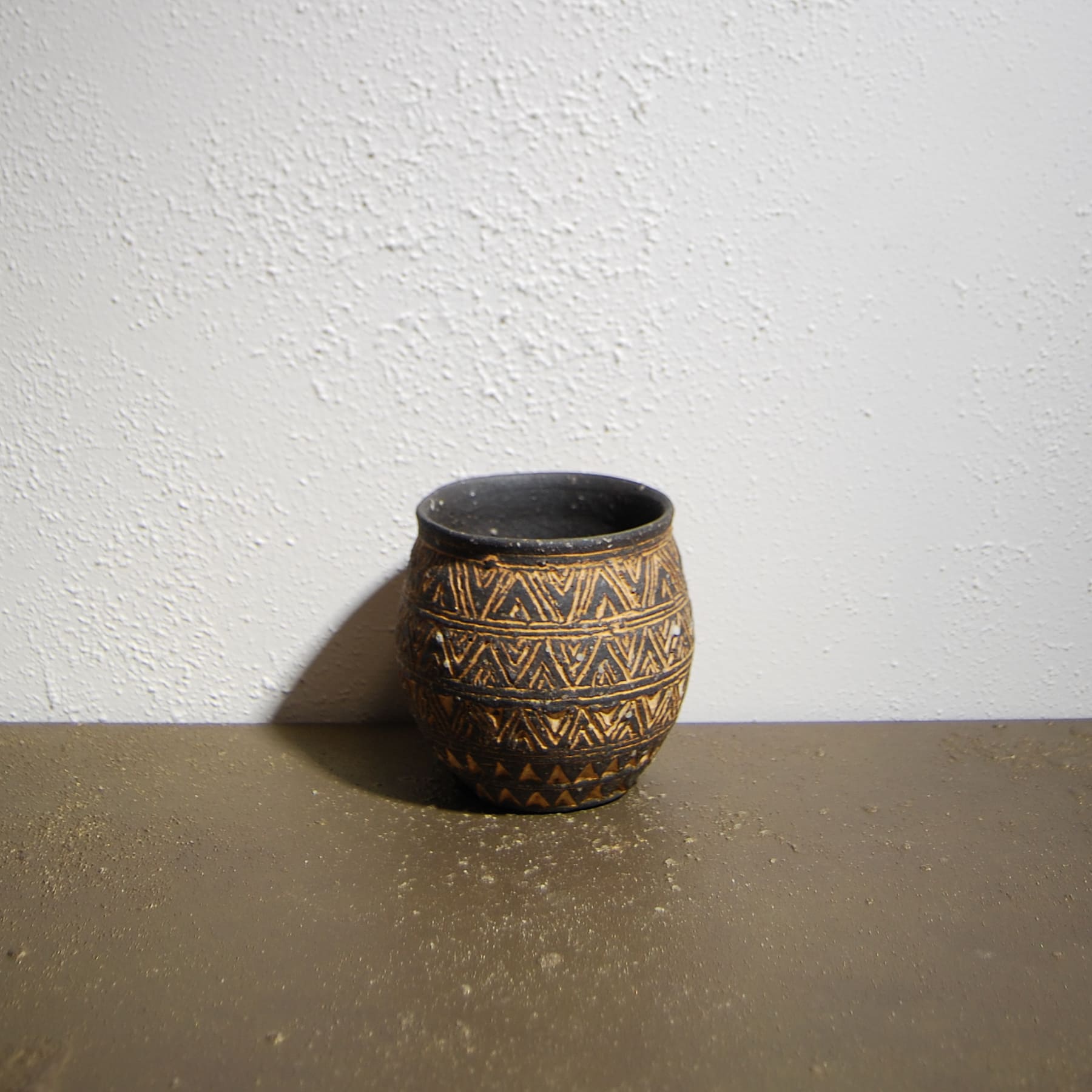 象嵌炭化焼成 刻文壺型植木鉢 242 荻野善史