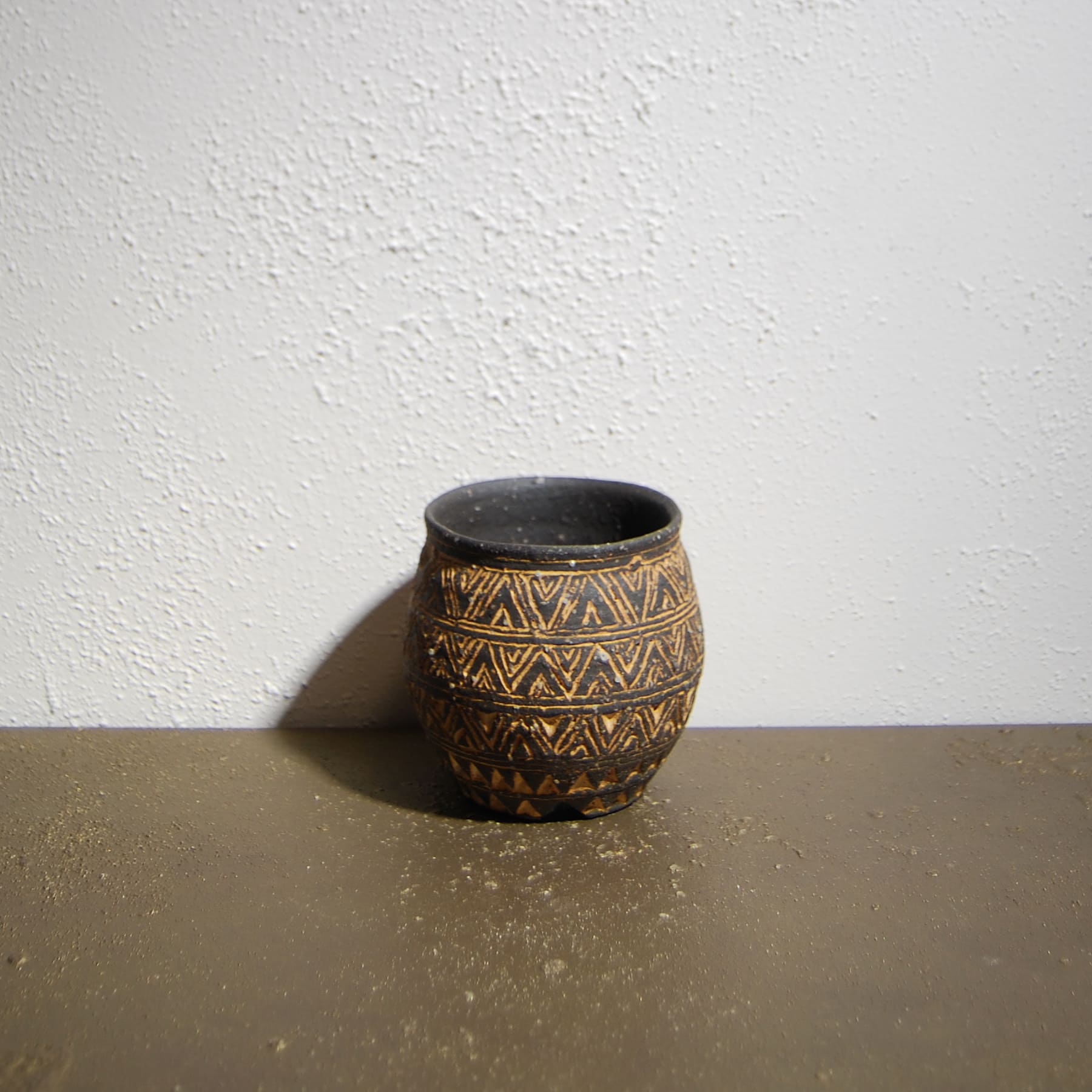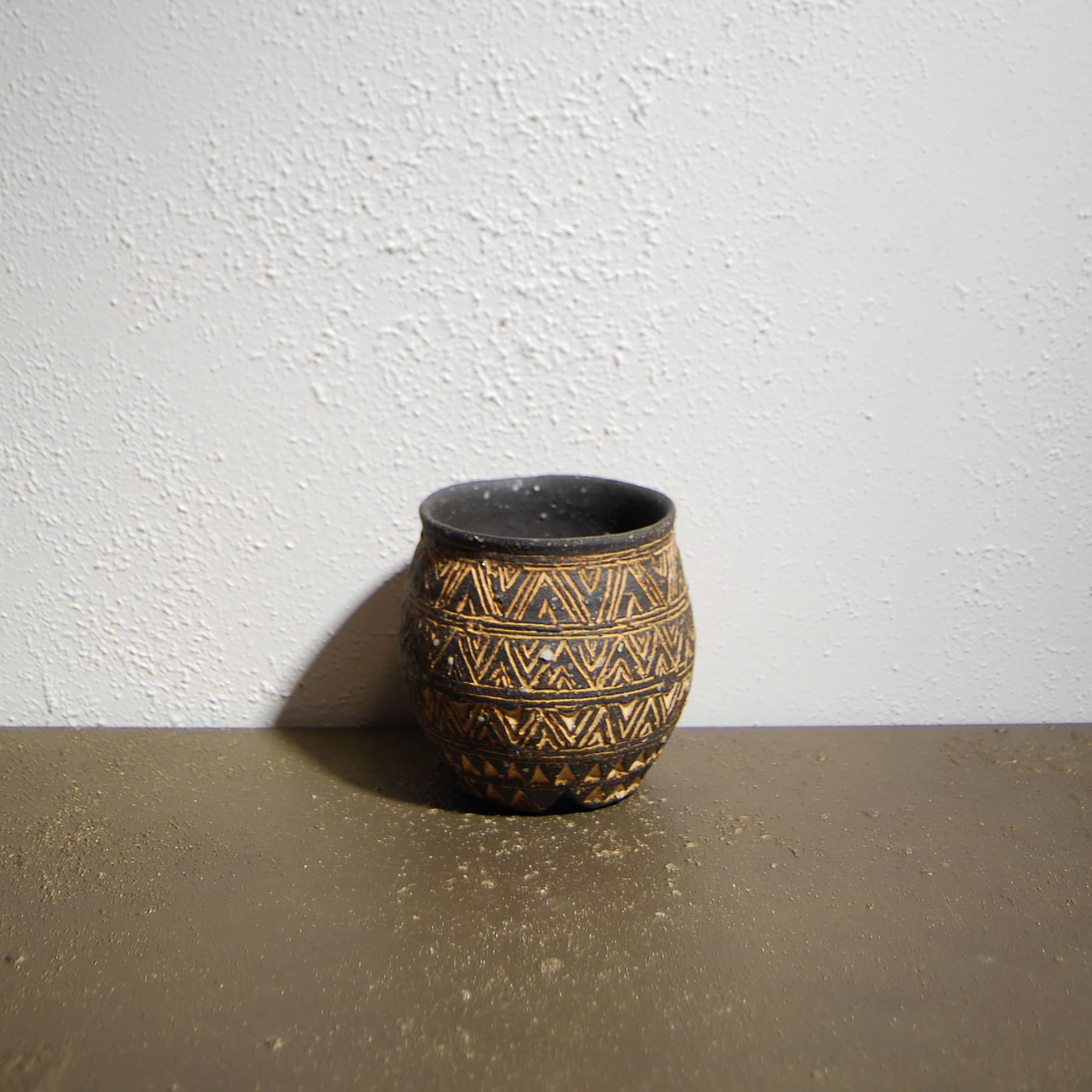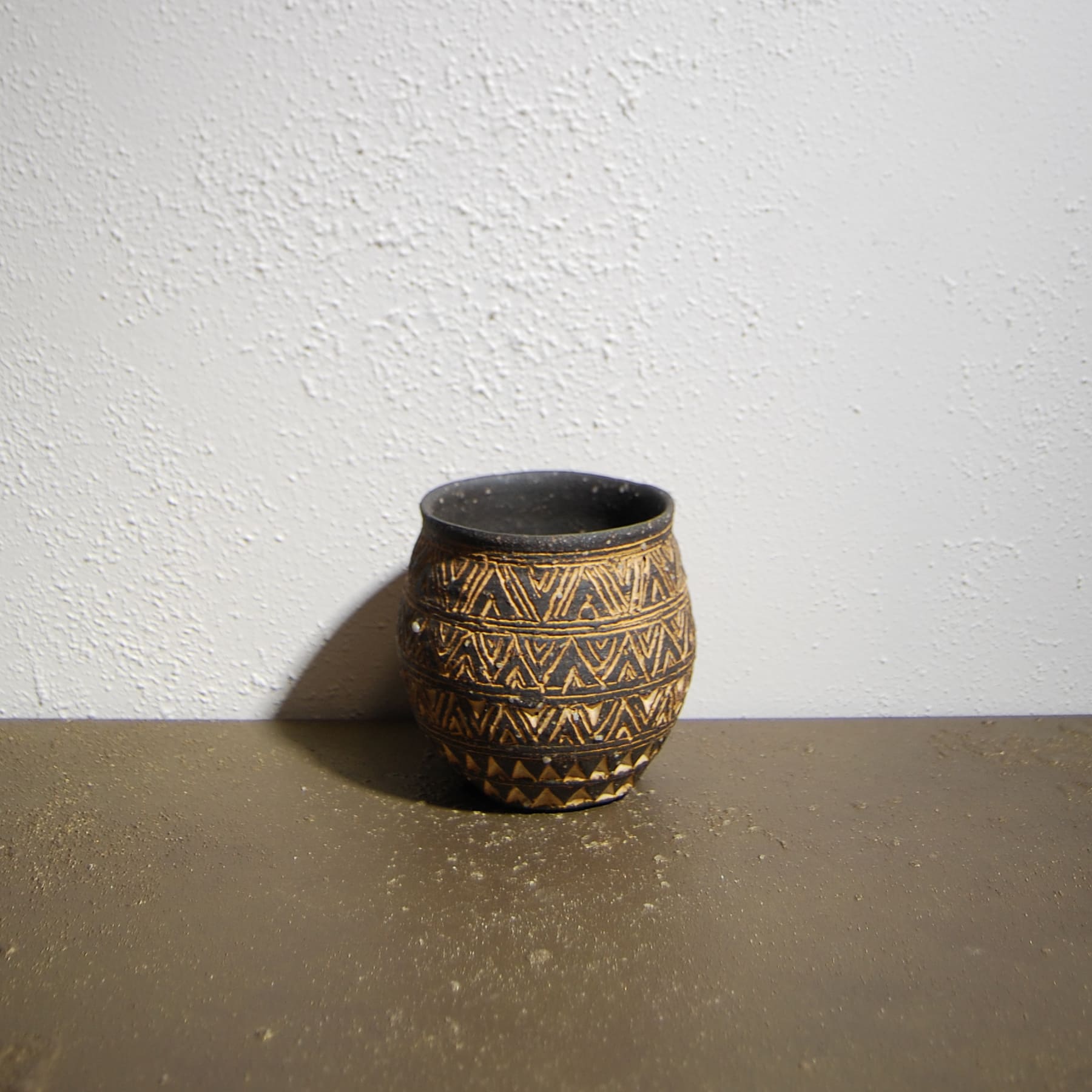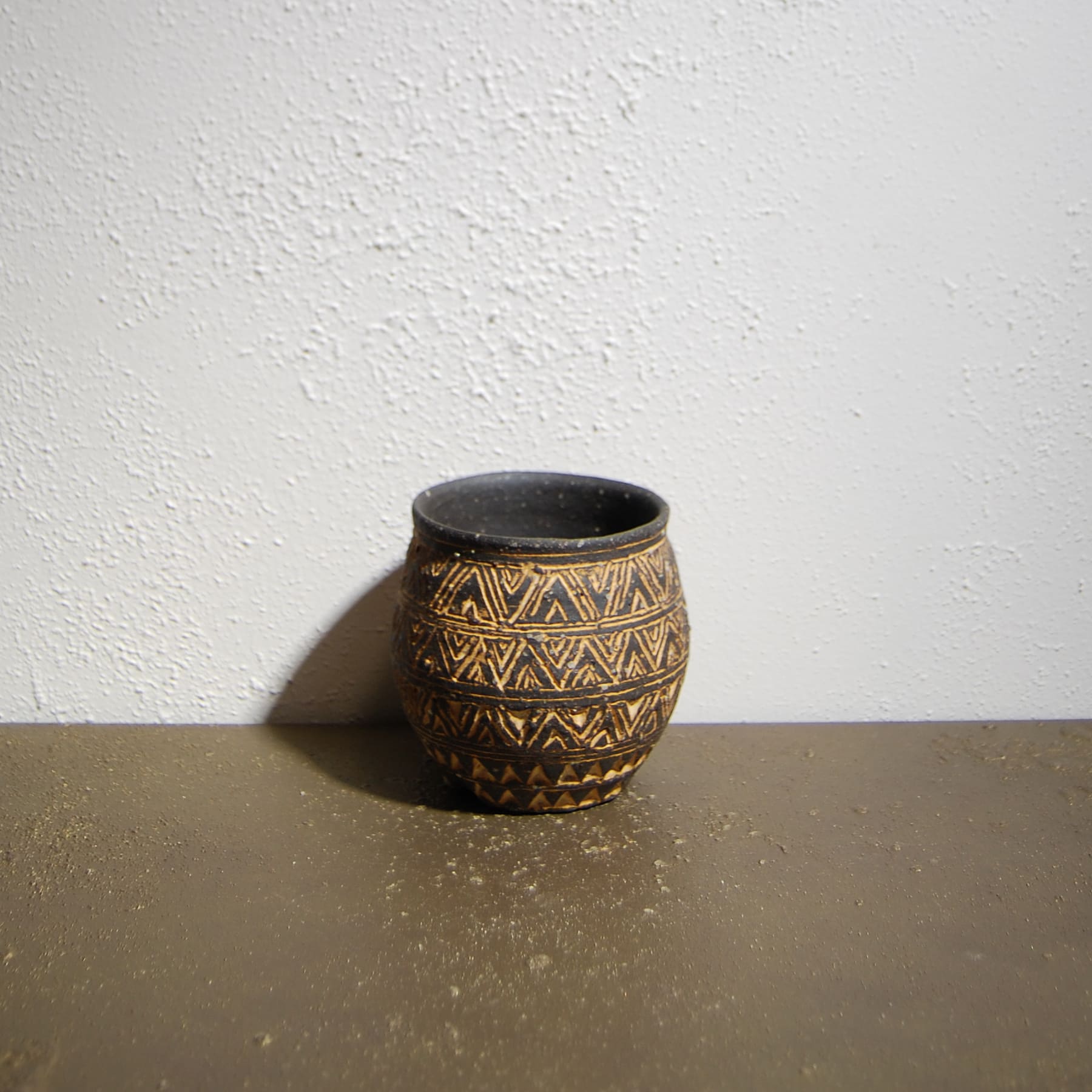 象嵌炭化焼成 刻文壺型植木鉢 242 荻野善史