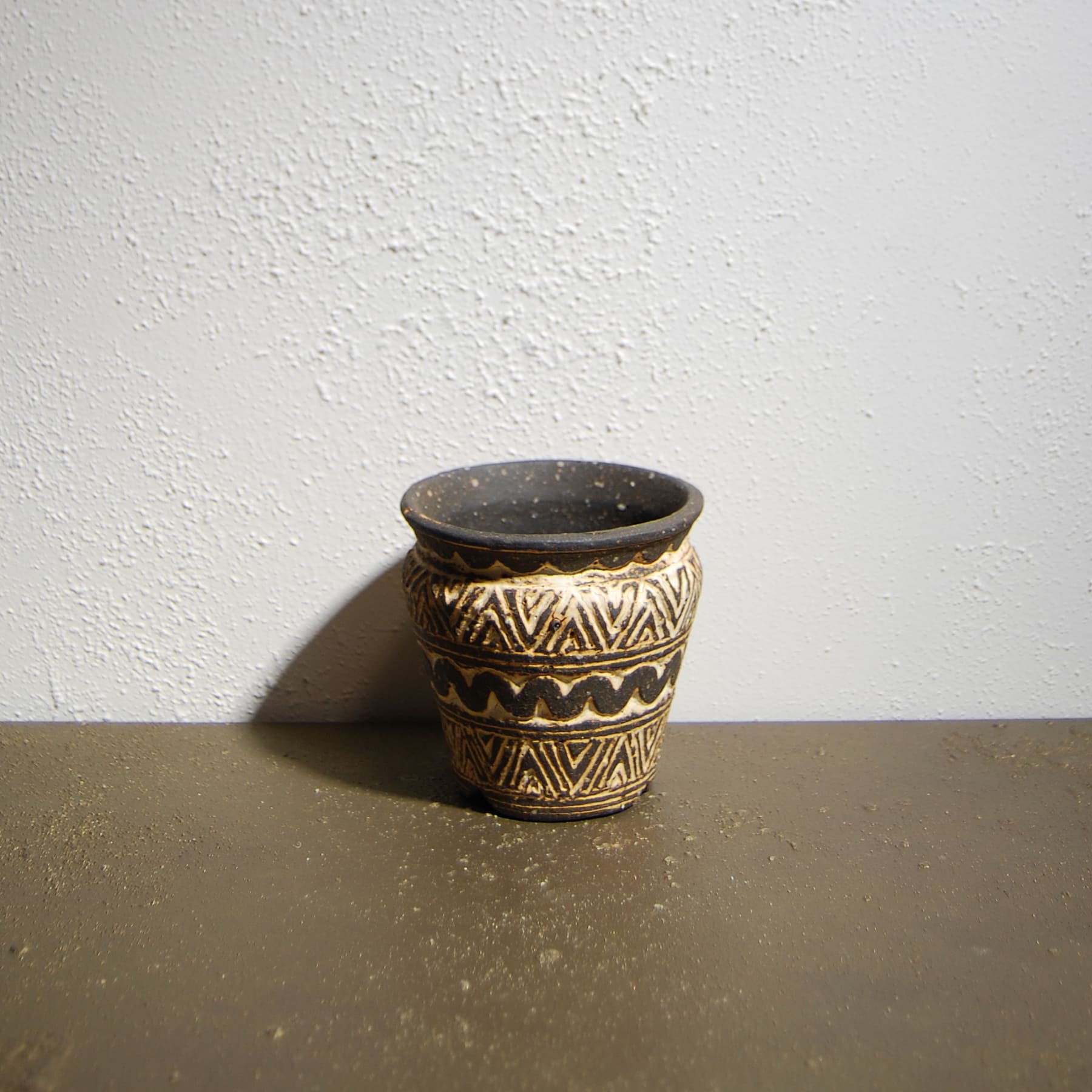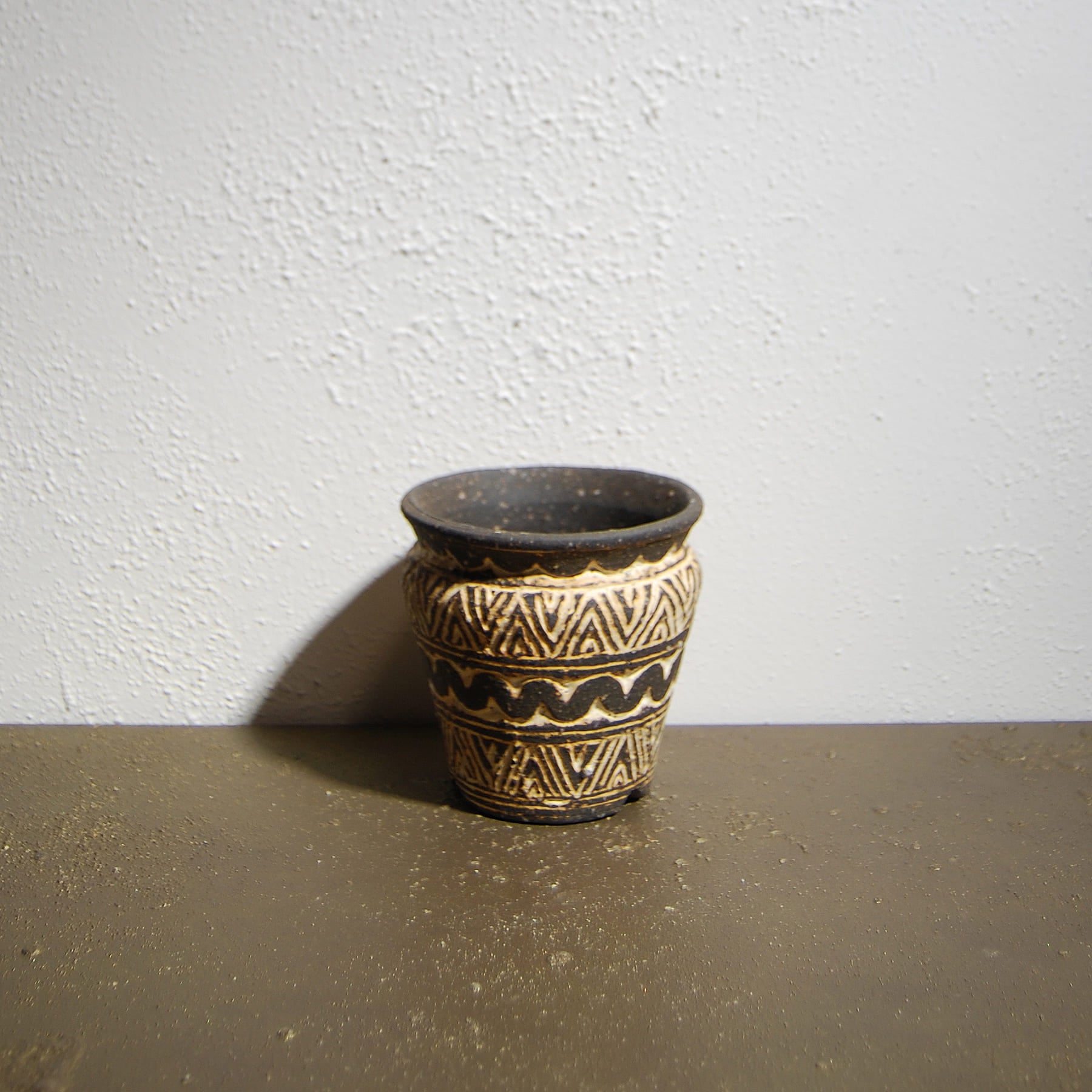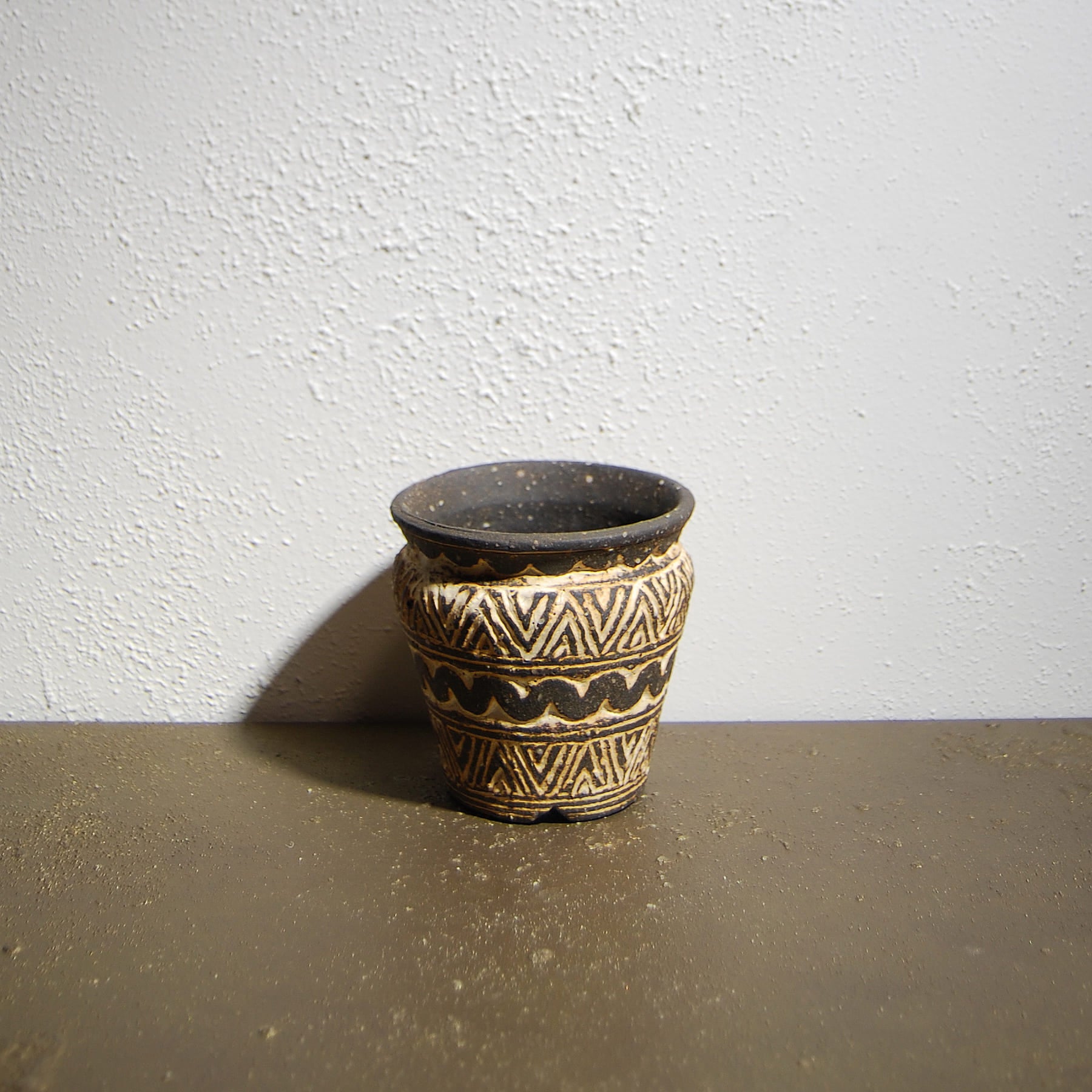 象嵌炭化焼成 刻文壺型植木鉢 243 荻野善史