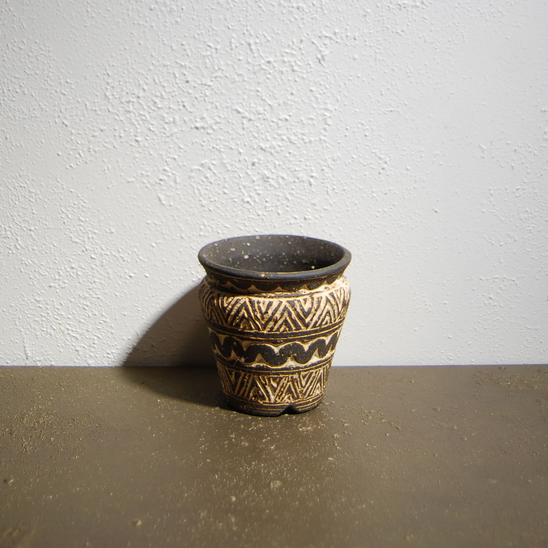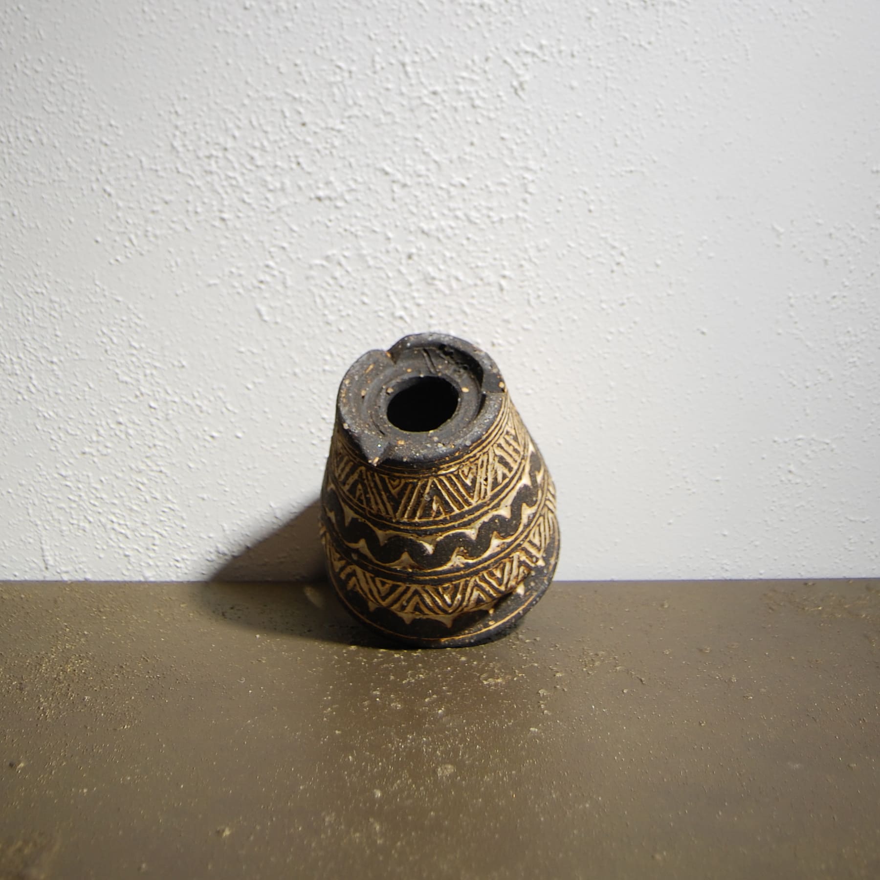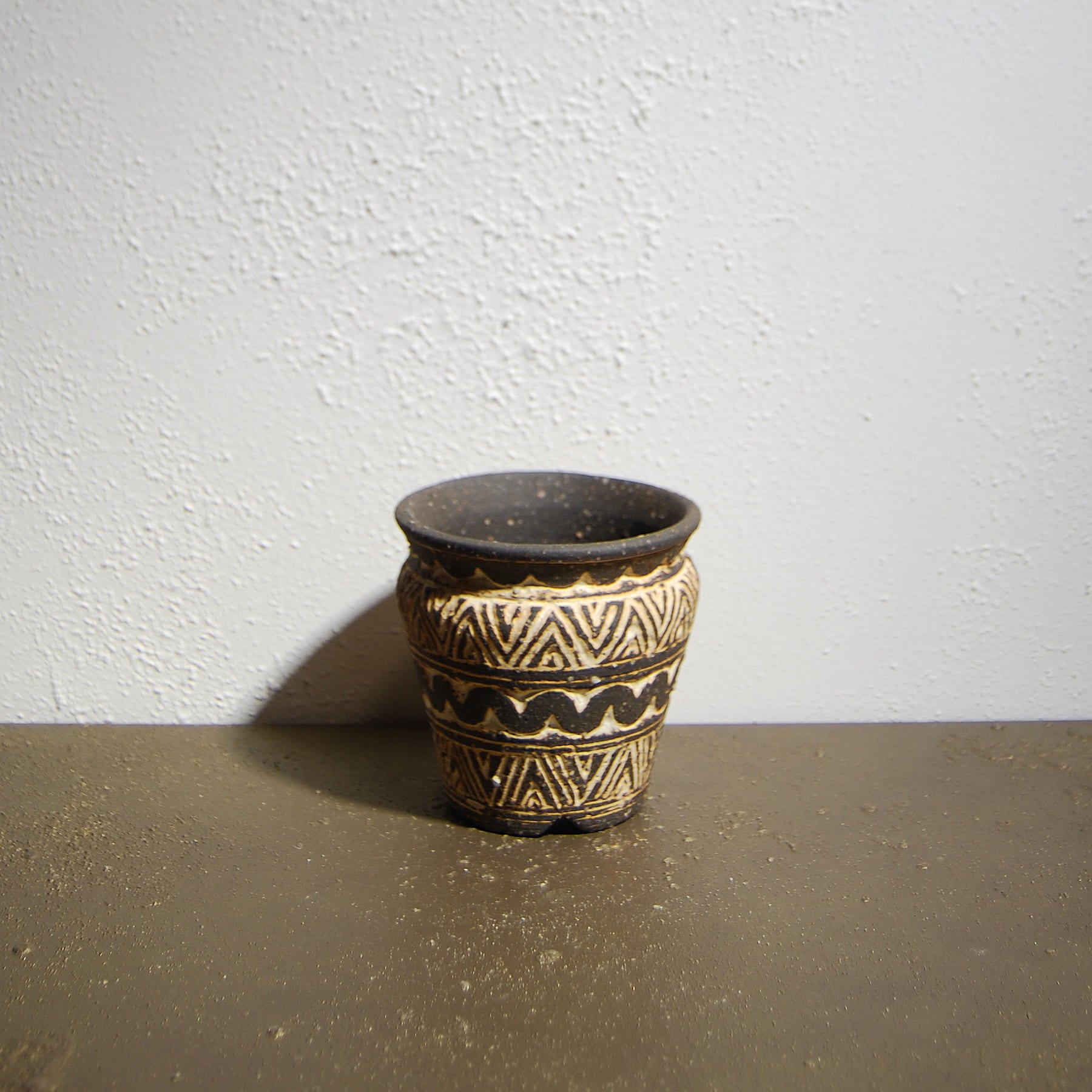 象嵌炭化焼成 刻文壺型植木鉢 243 荻野善史