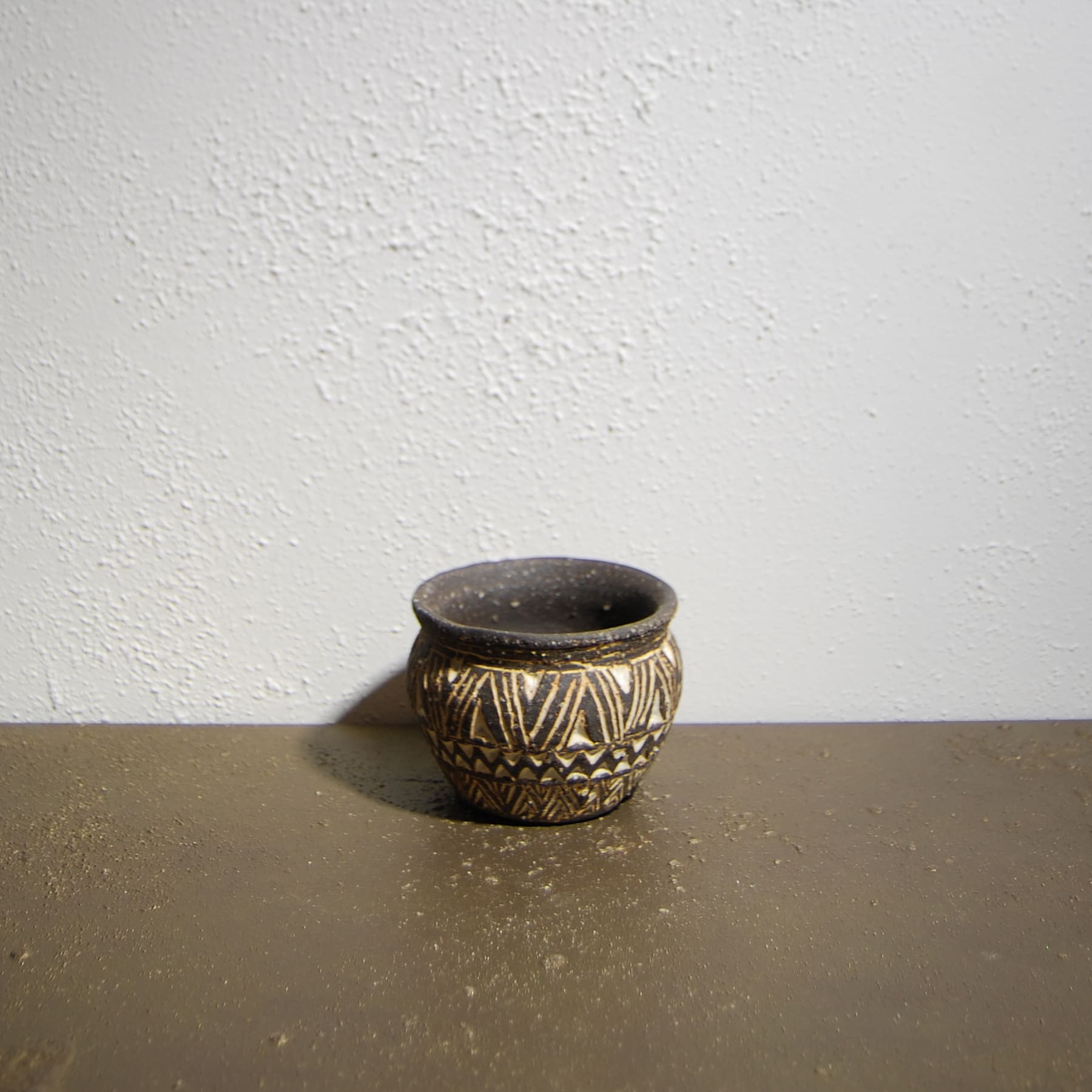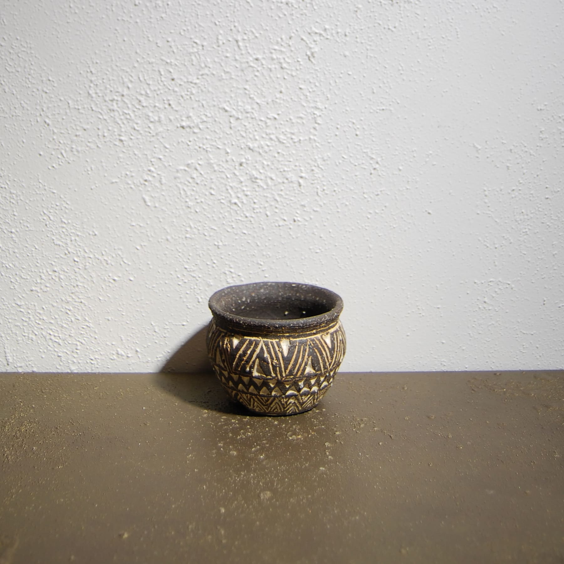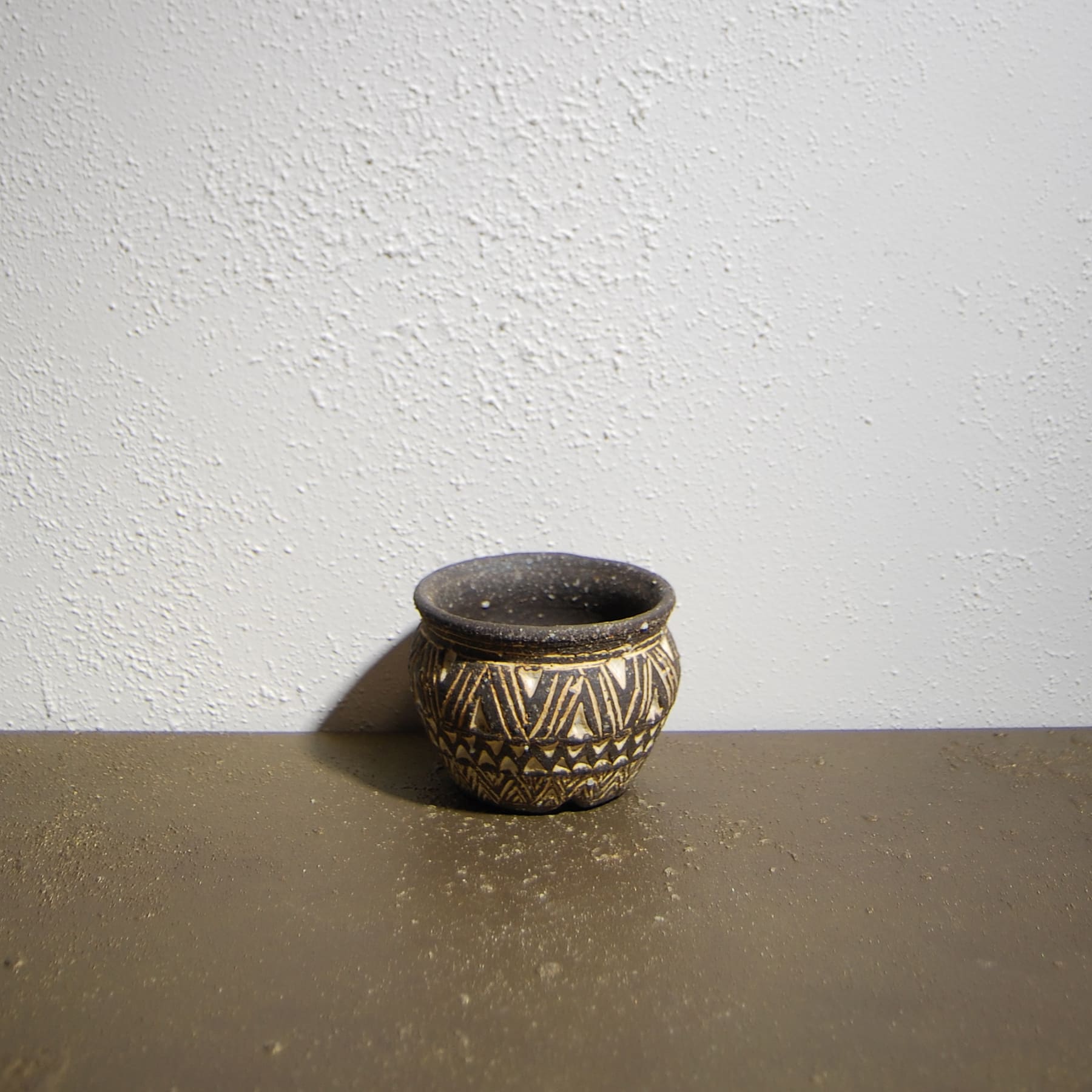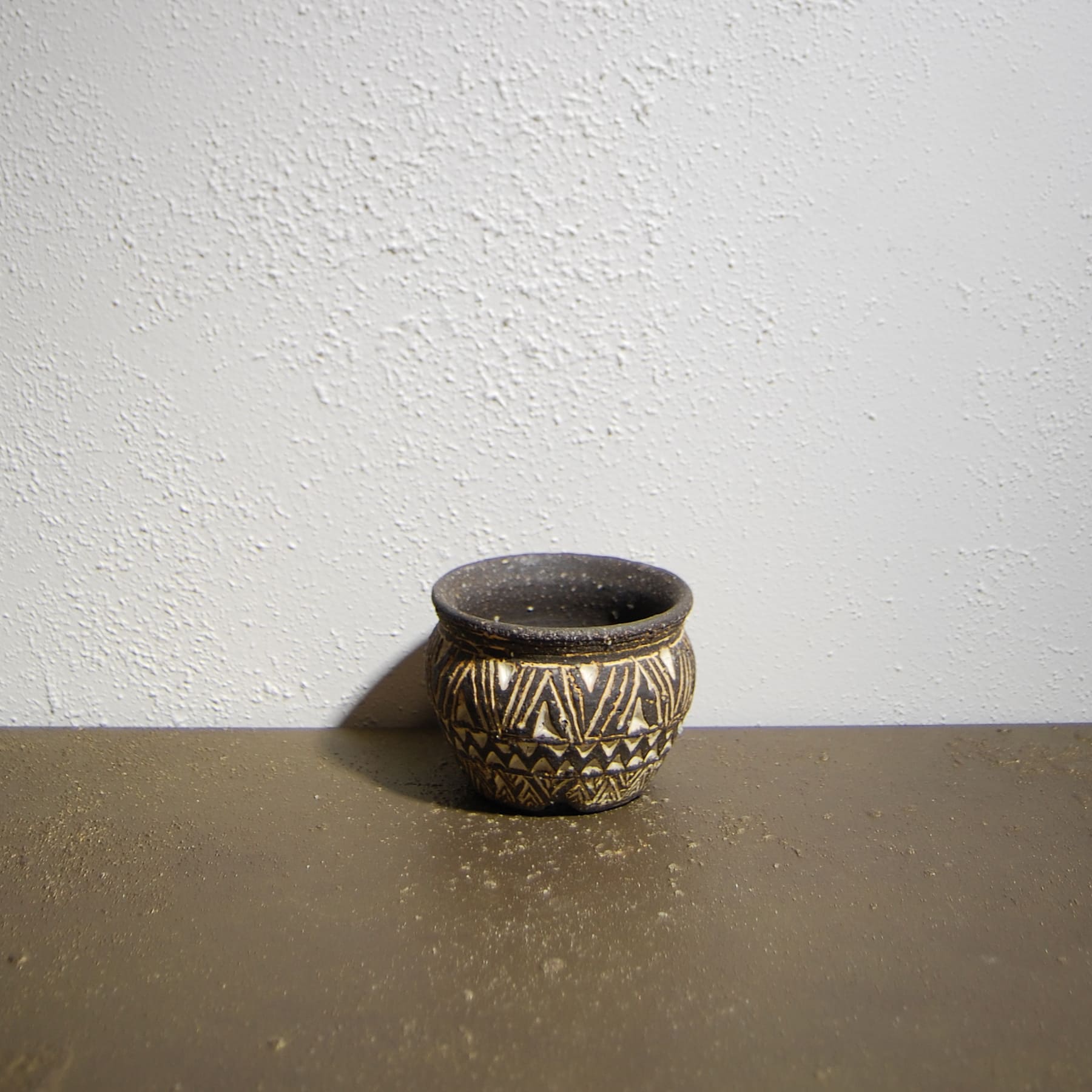 象嵌炭化焼成 刻文壺型植木鉢 244 荻野善史