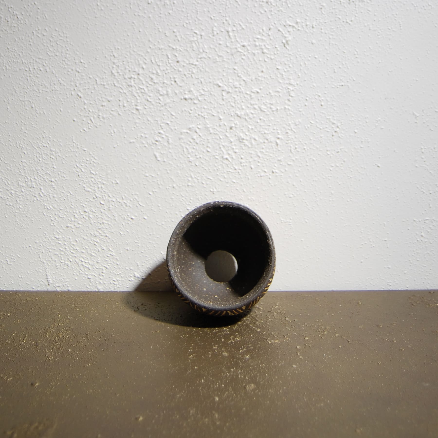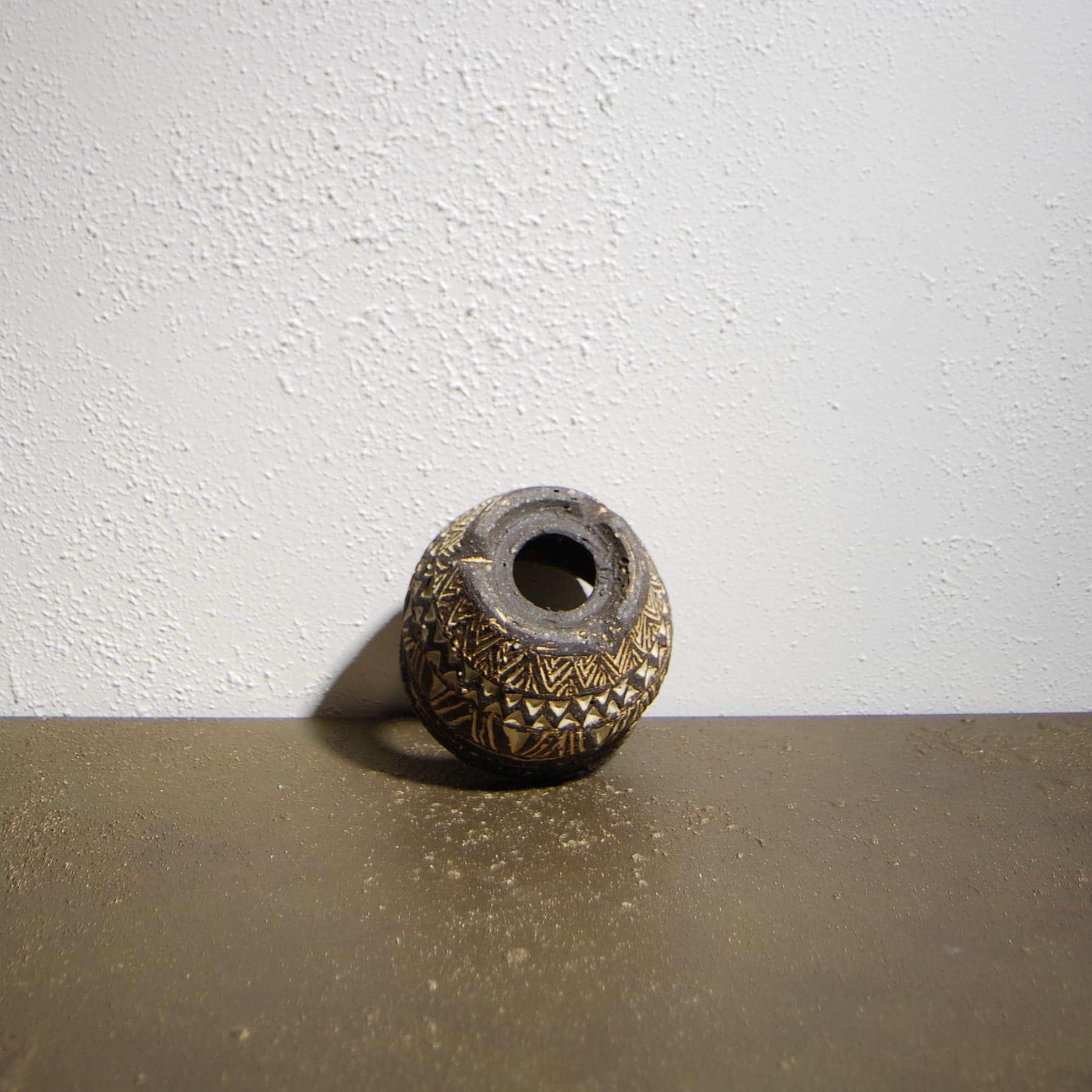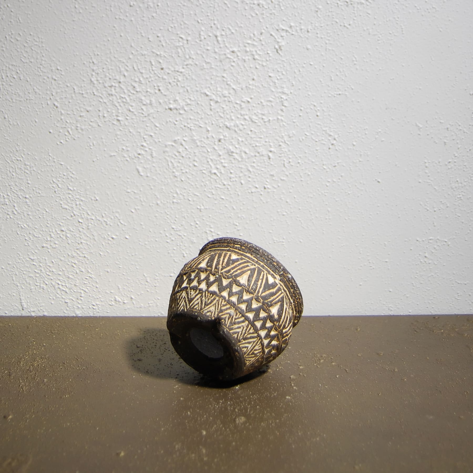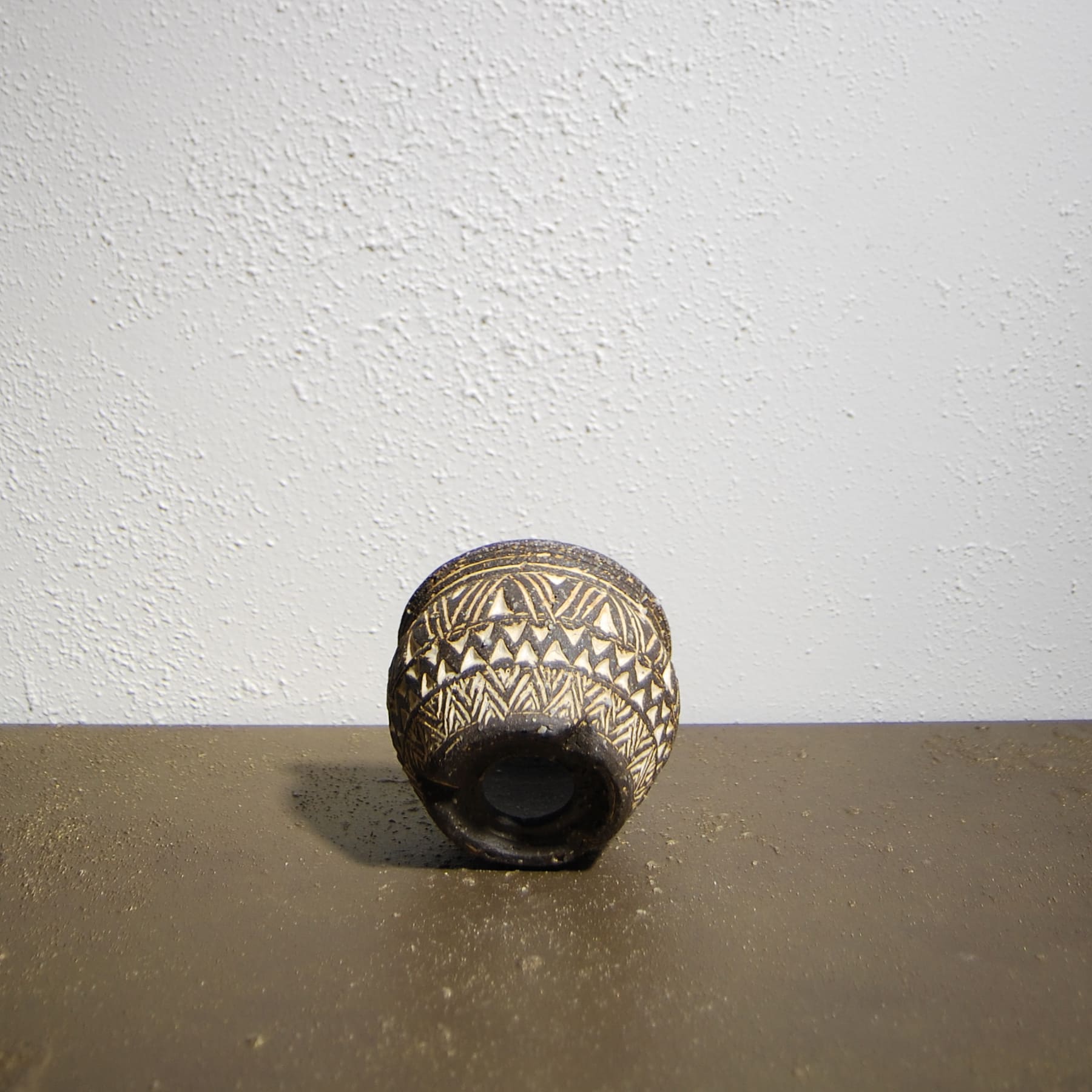 象嵌炭化焼成 刻文壺型植木鉢 244 荻野善史