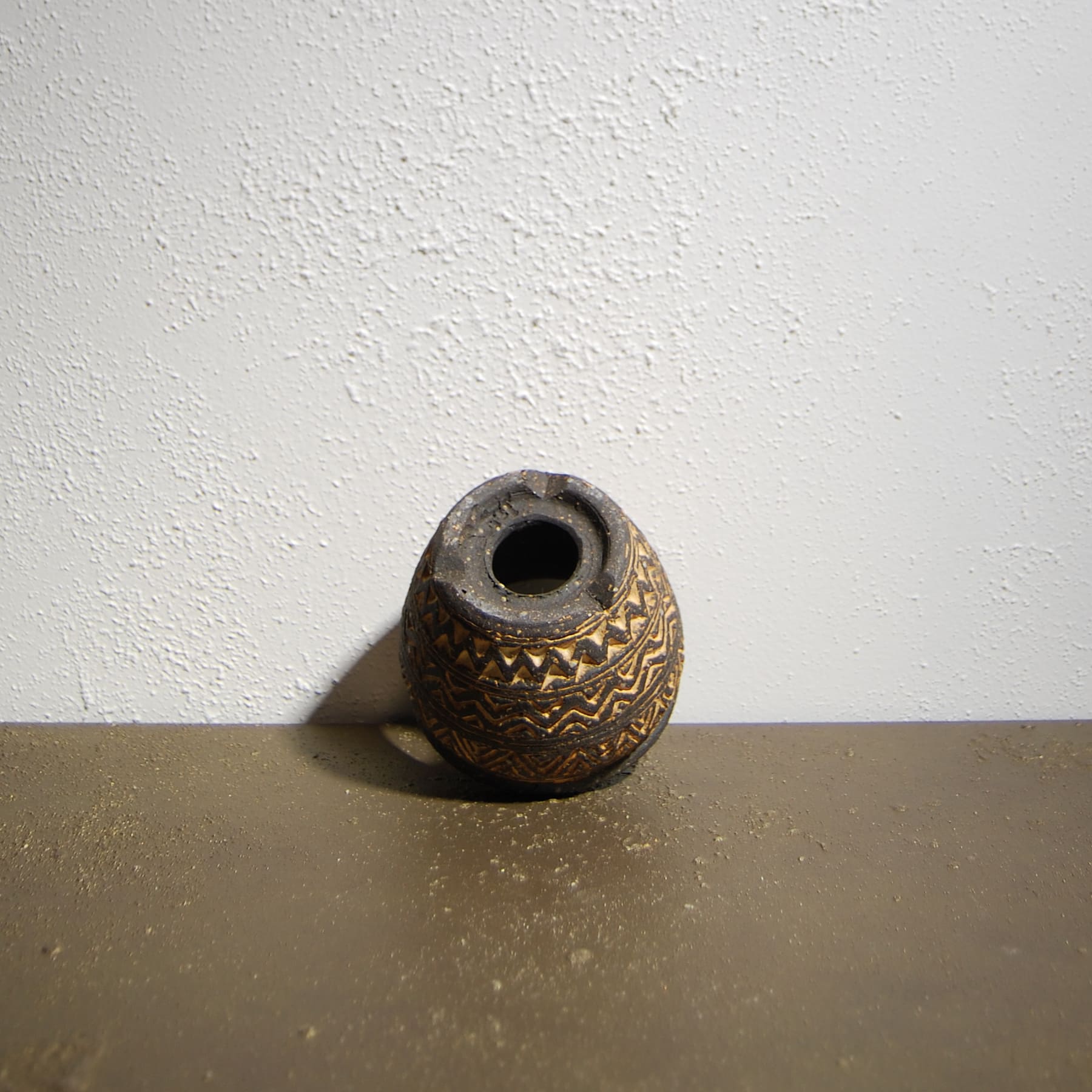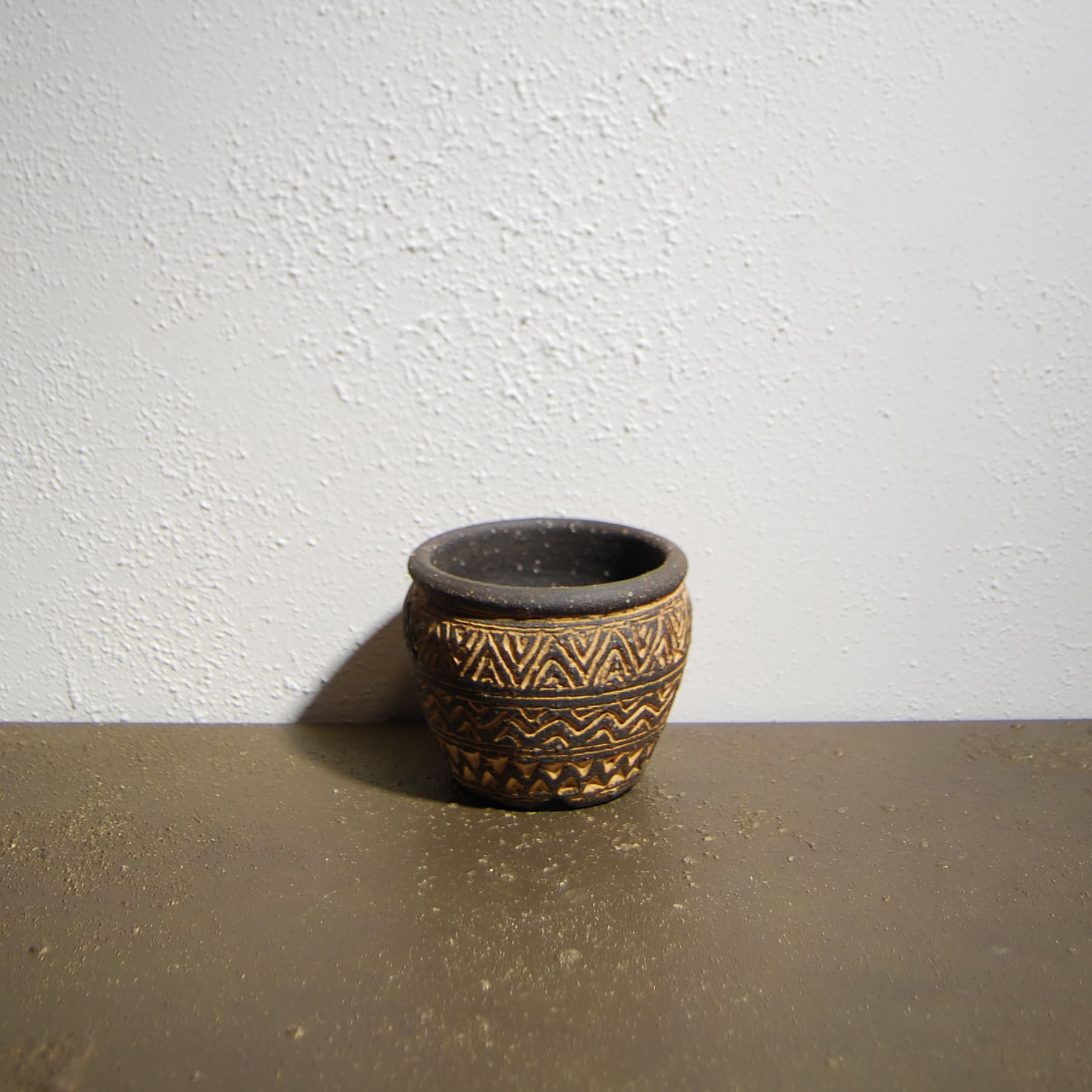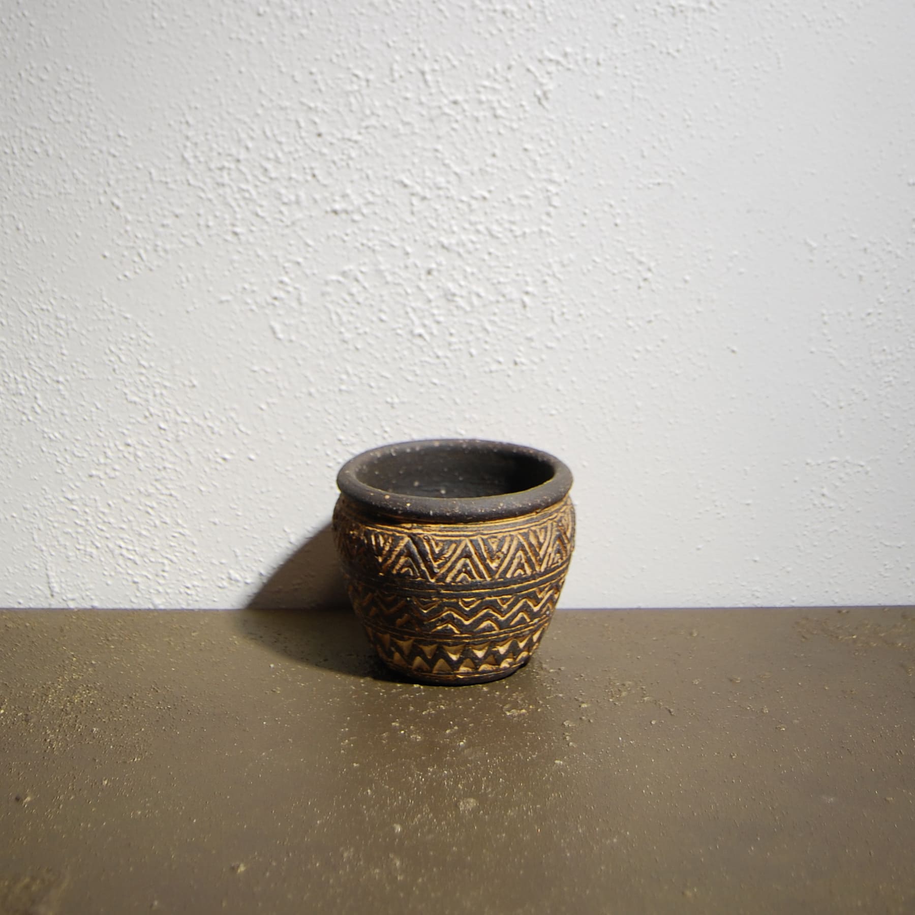 象嵌炭化焼成 刻文壺型植木鉢 245 荻野善史
