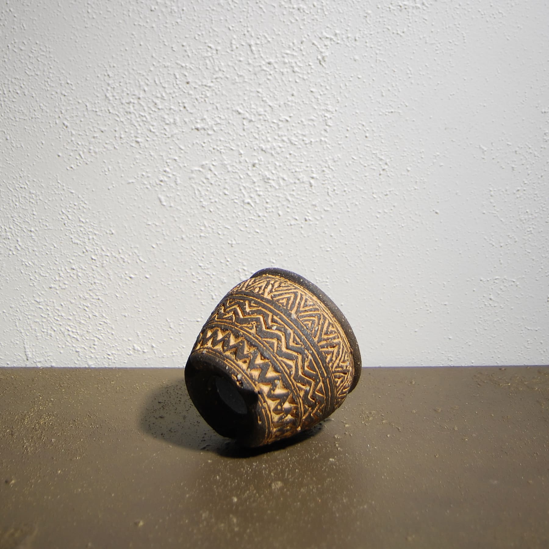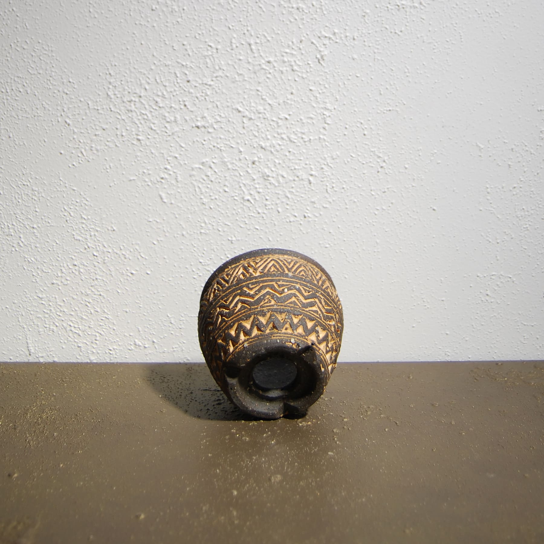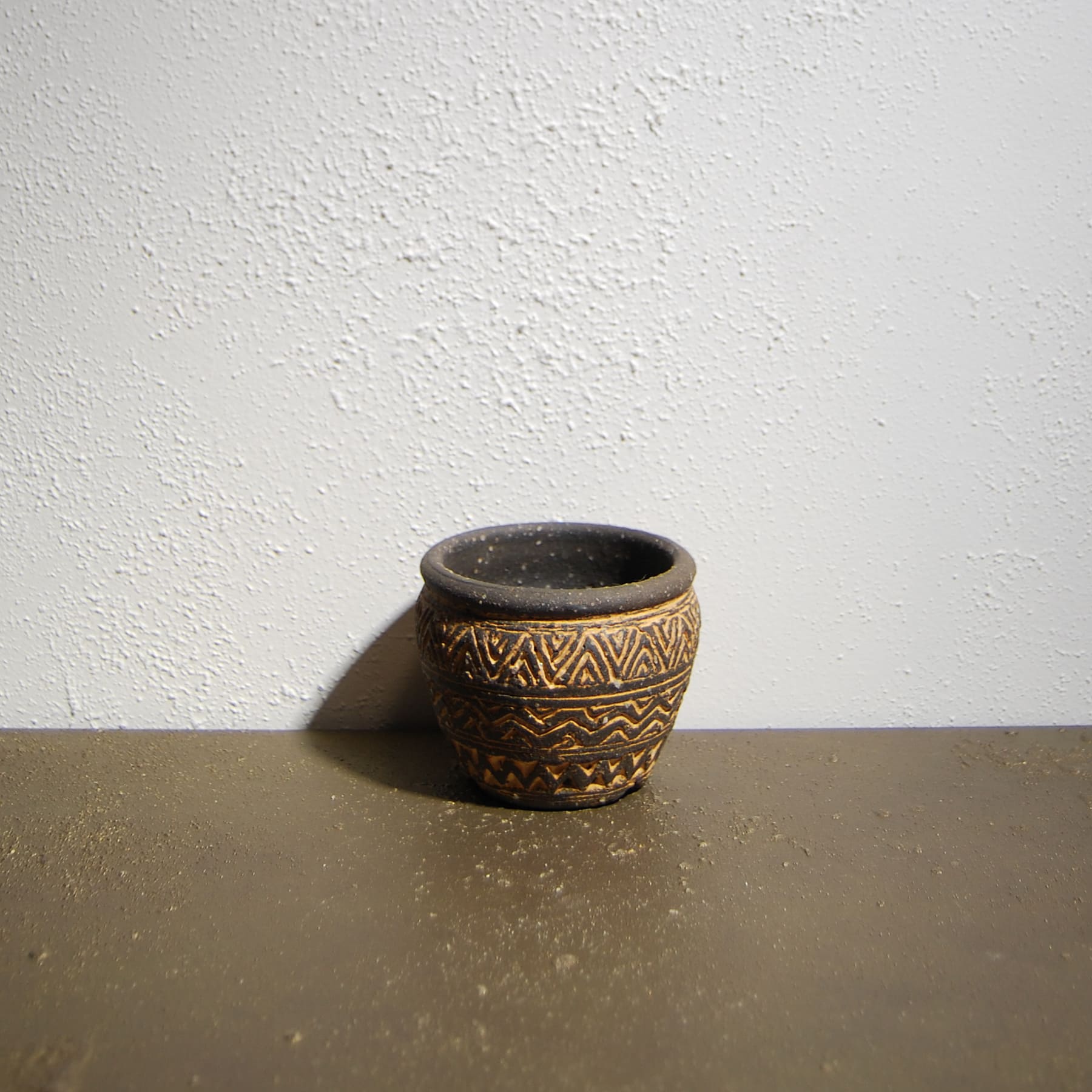 象嵌炭化焼成 刻文壺型植木鉢 245 荻野善史
