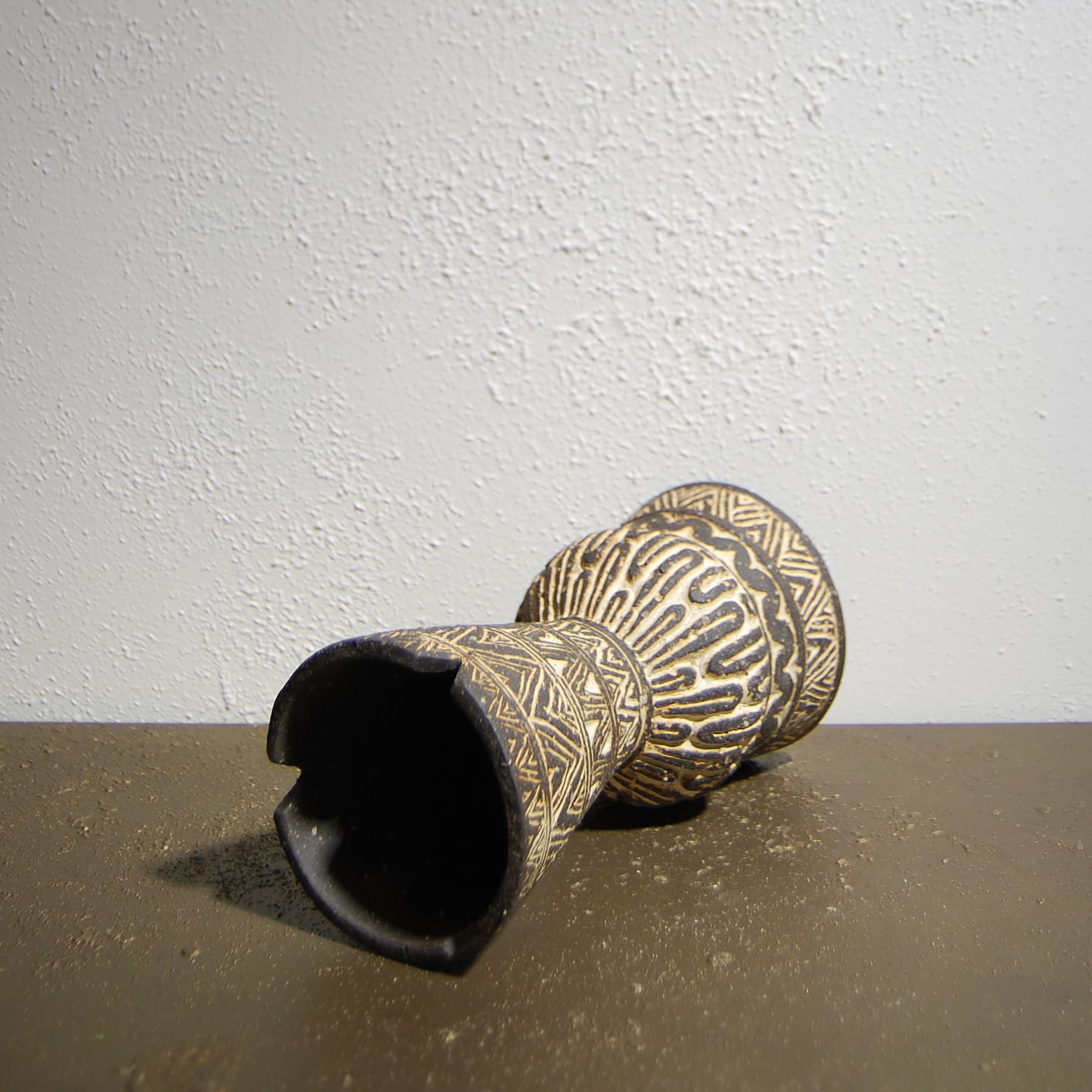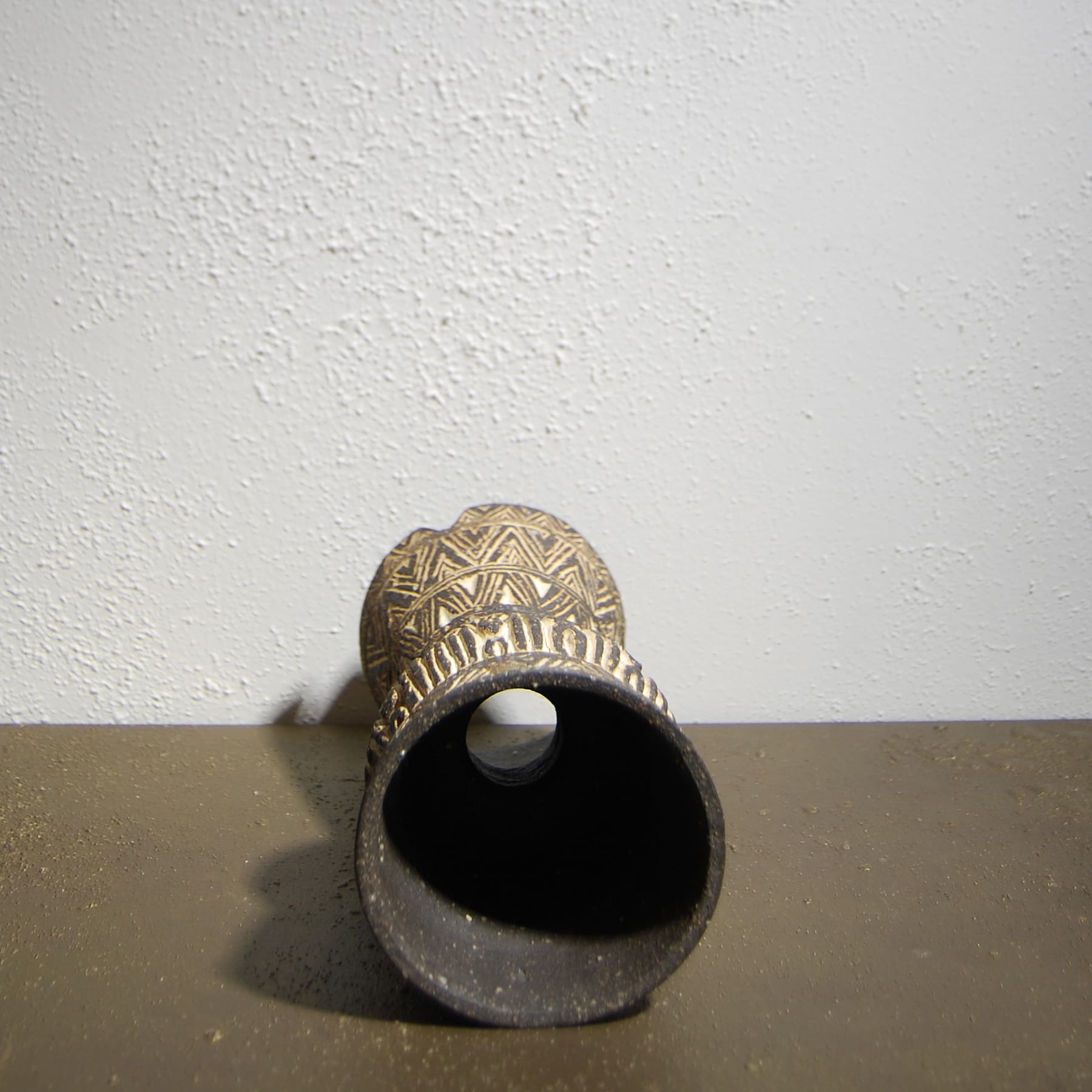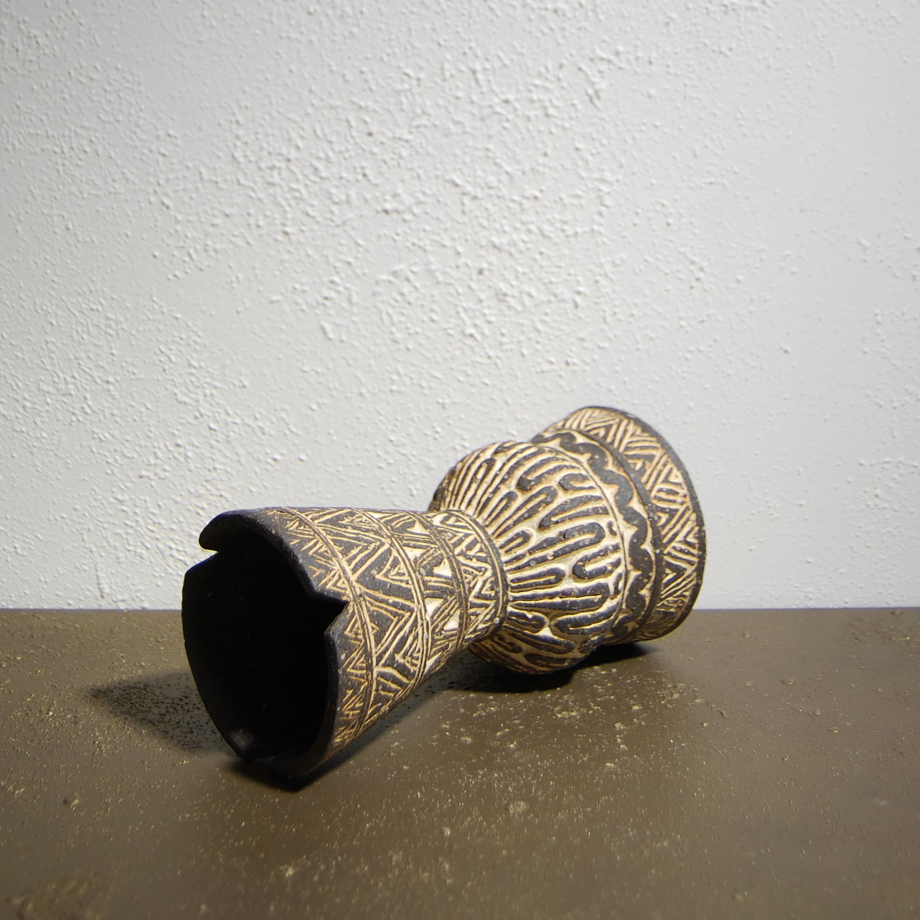 象嵌炭化焼成 刻文太鼓植木鉢 248 荻野善史