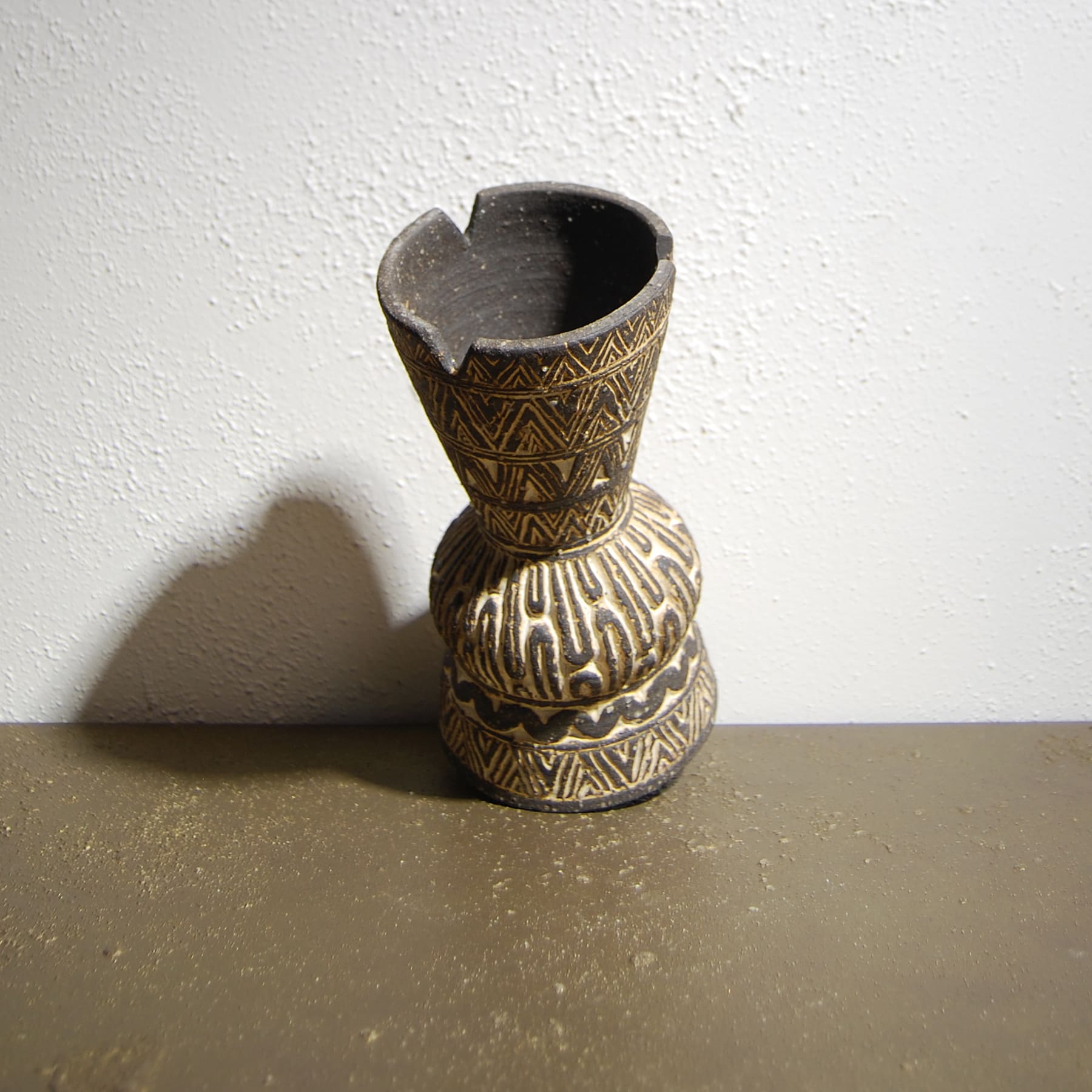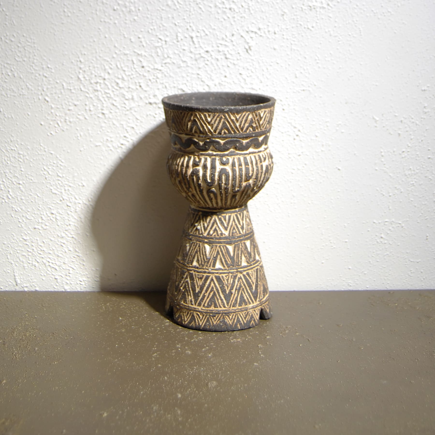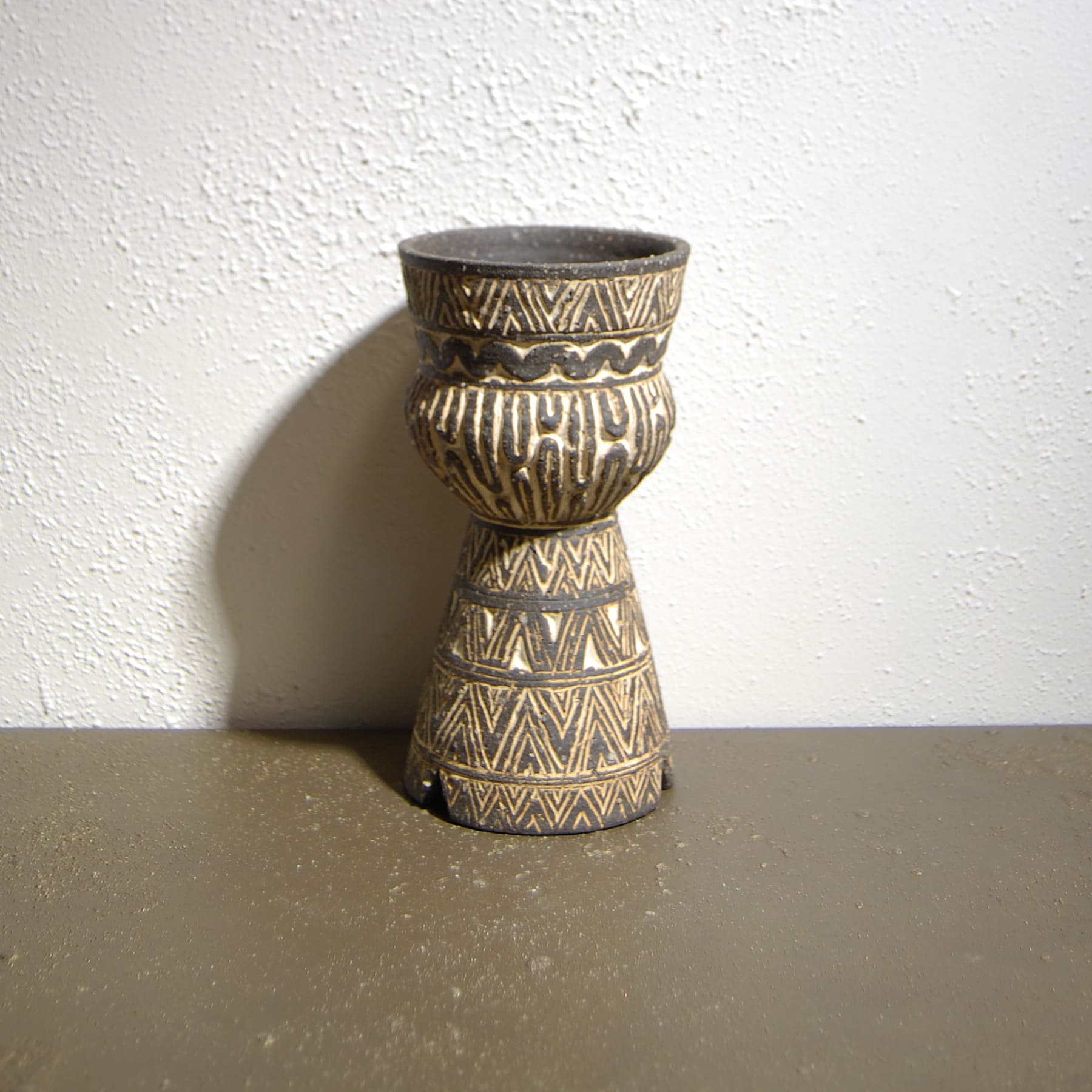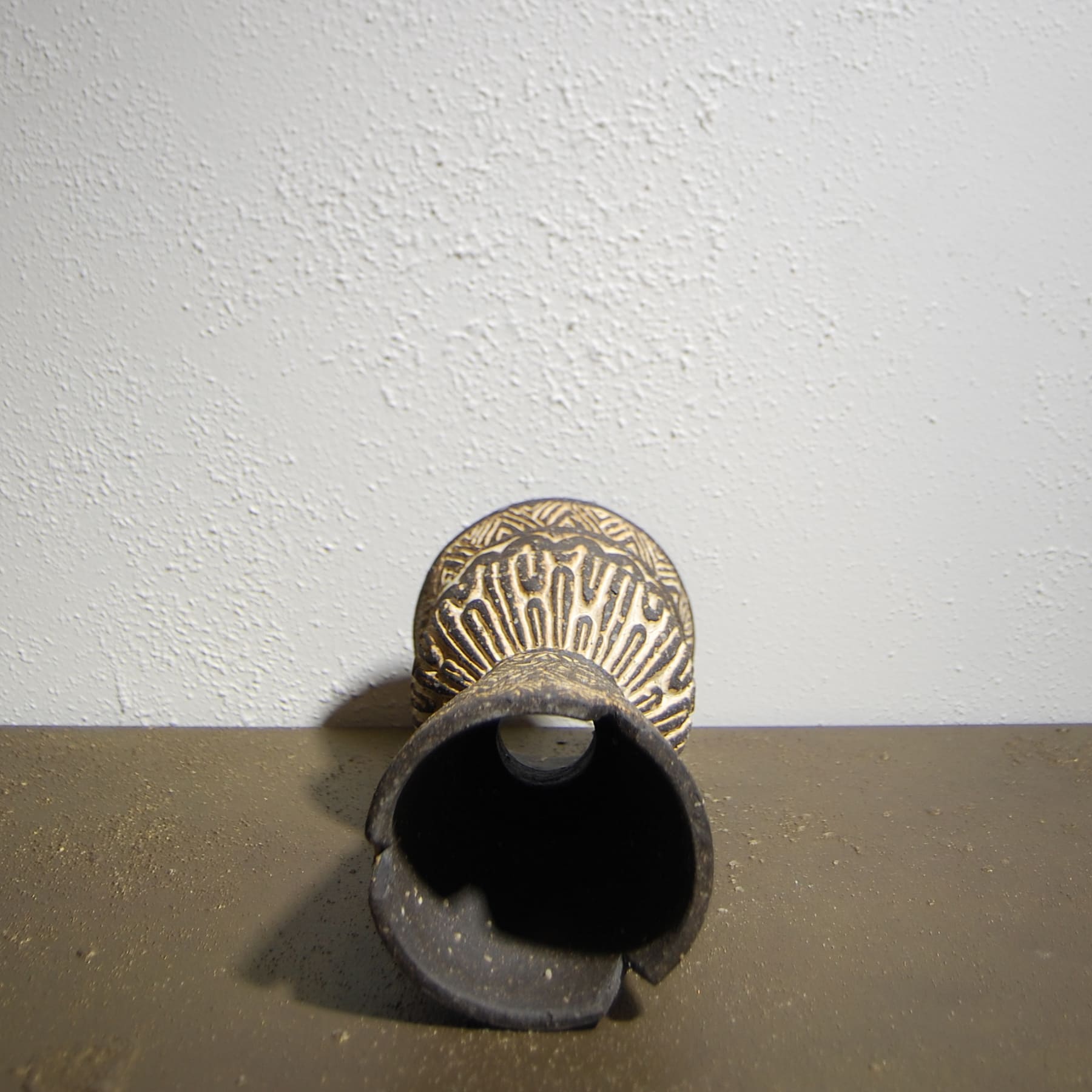 象嵌炭化焼成 刻文太鼓植木鉢 248 荻野善史