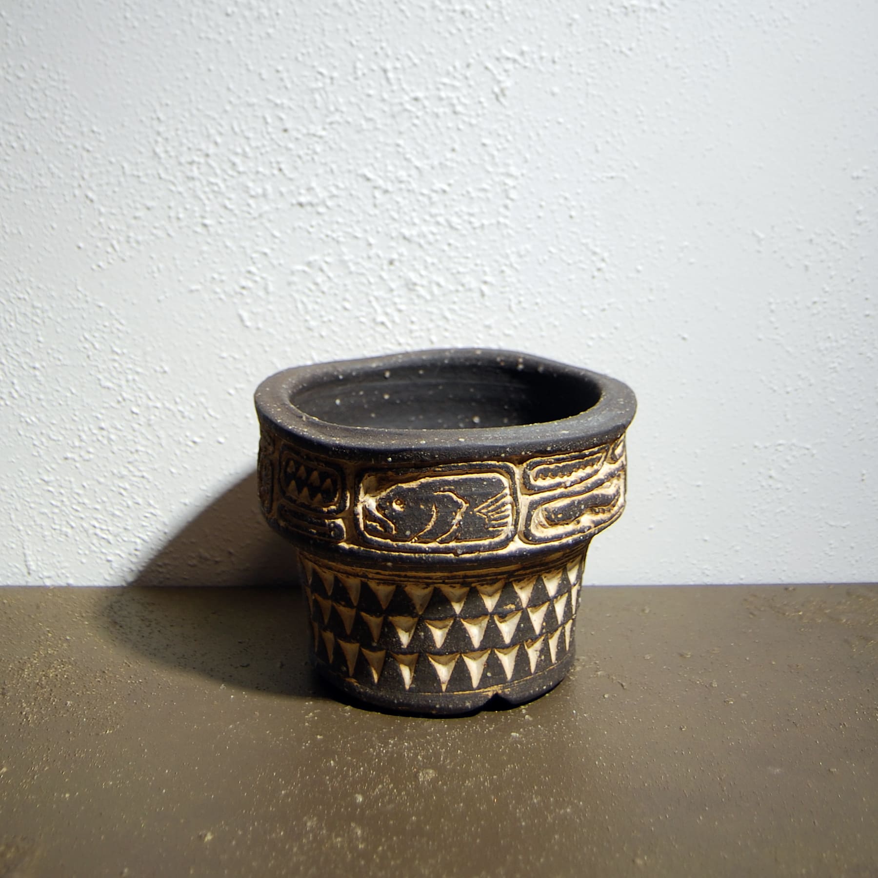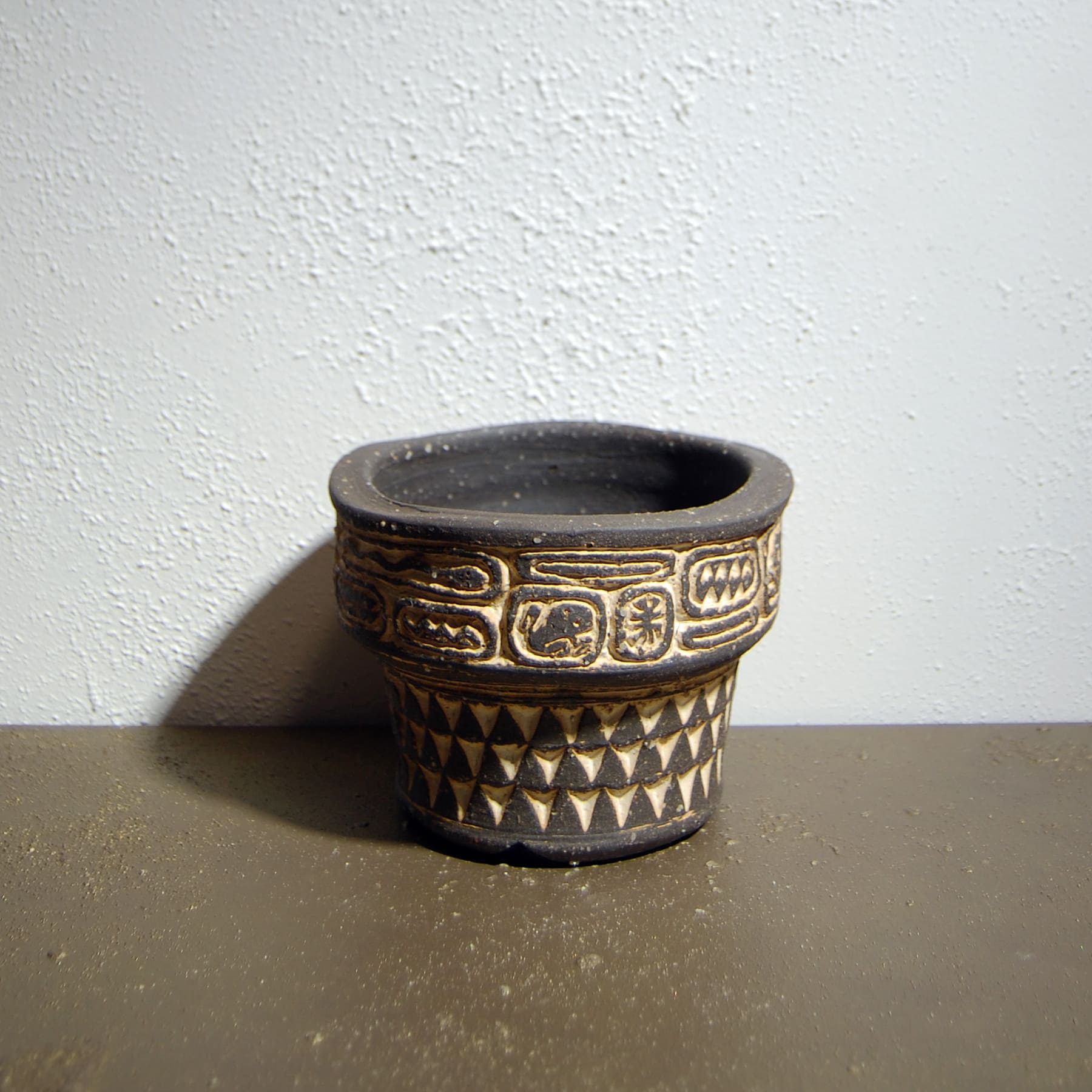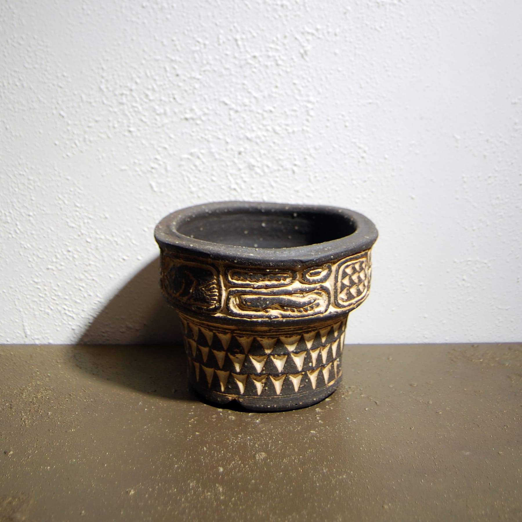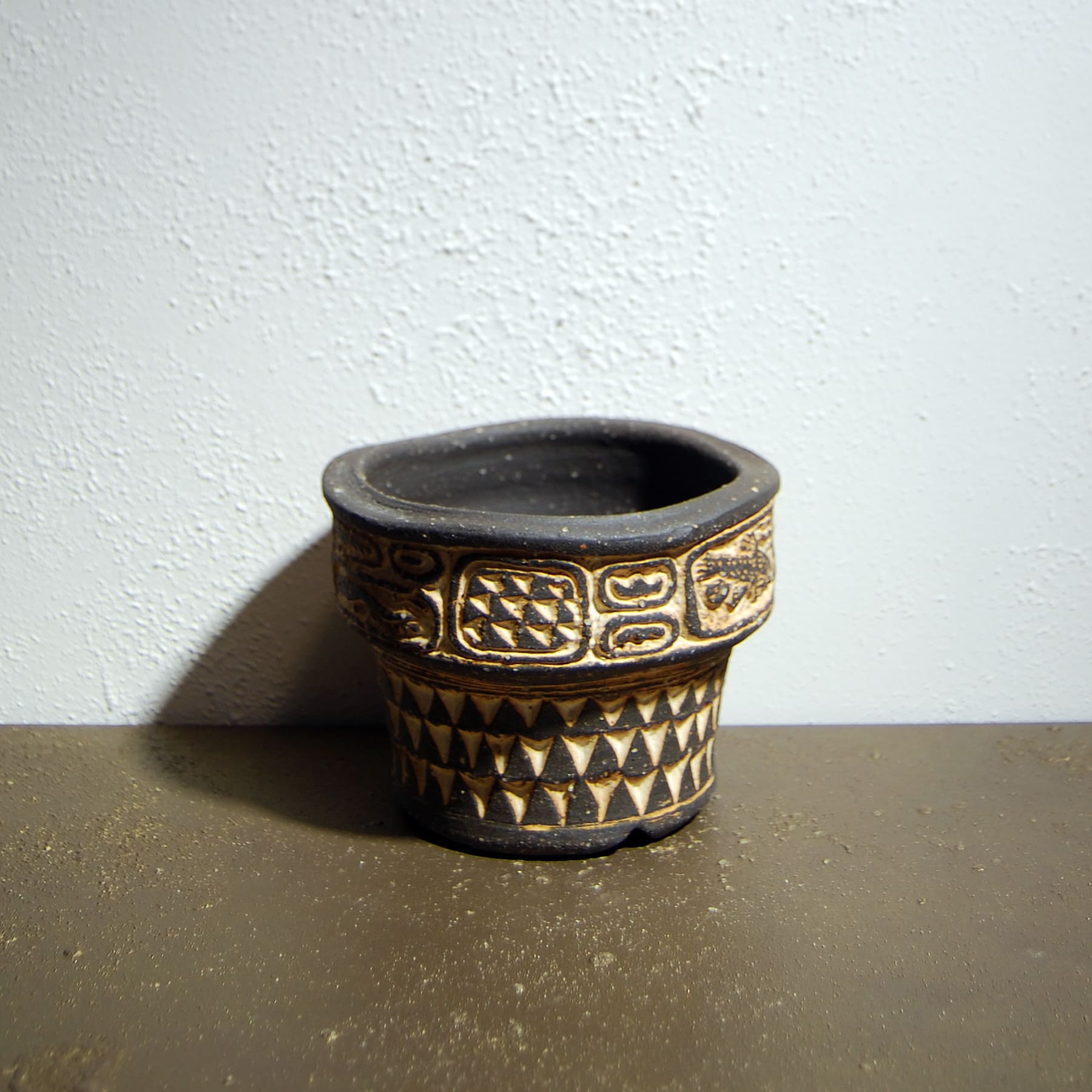 象嵌炭化焼成 窓文植木鉢 202 荻野善史