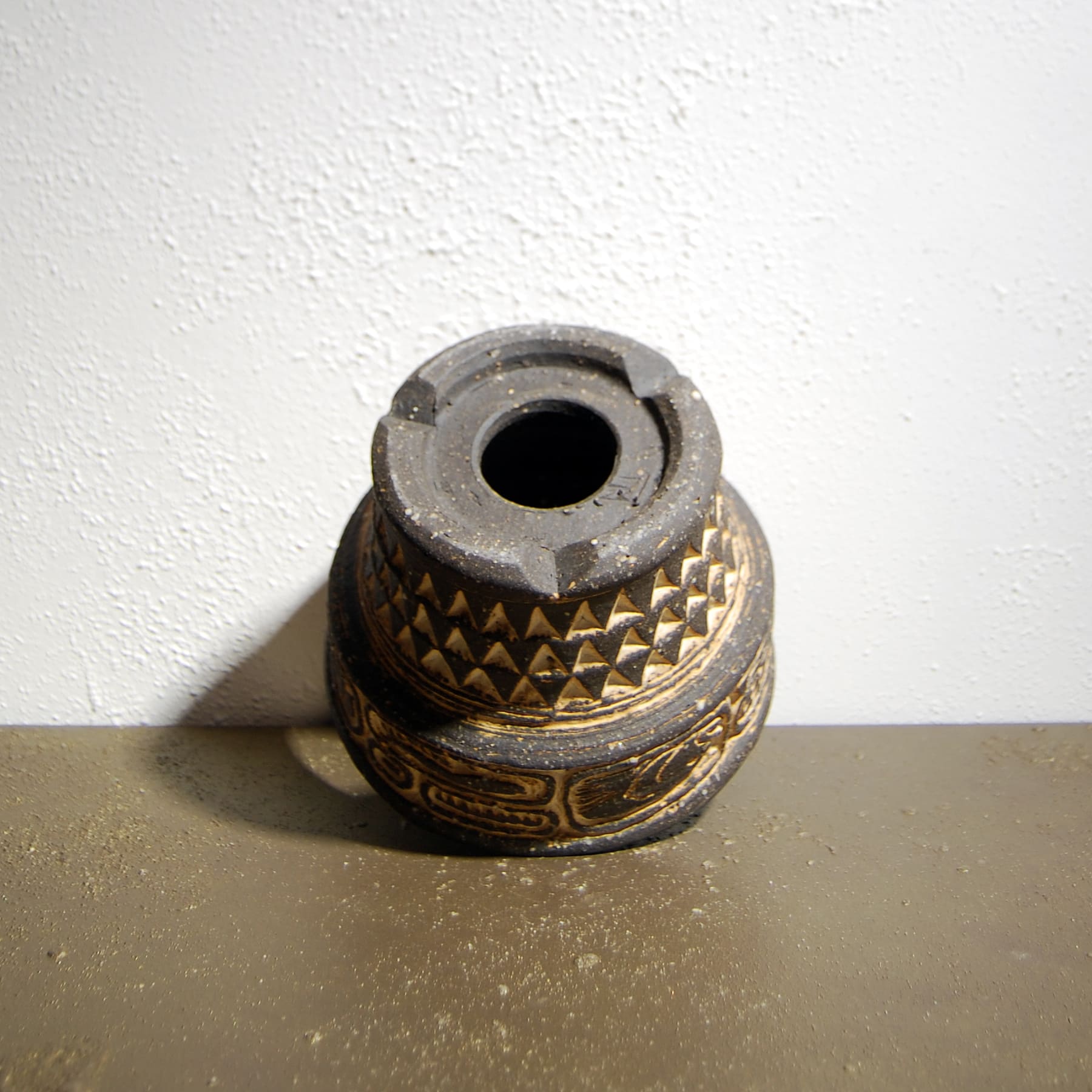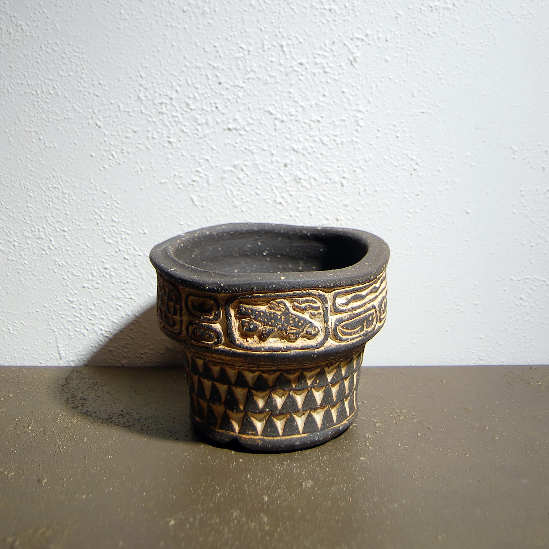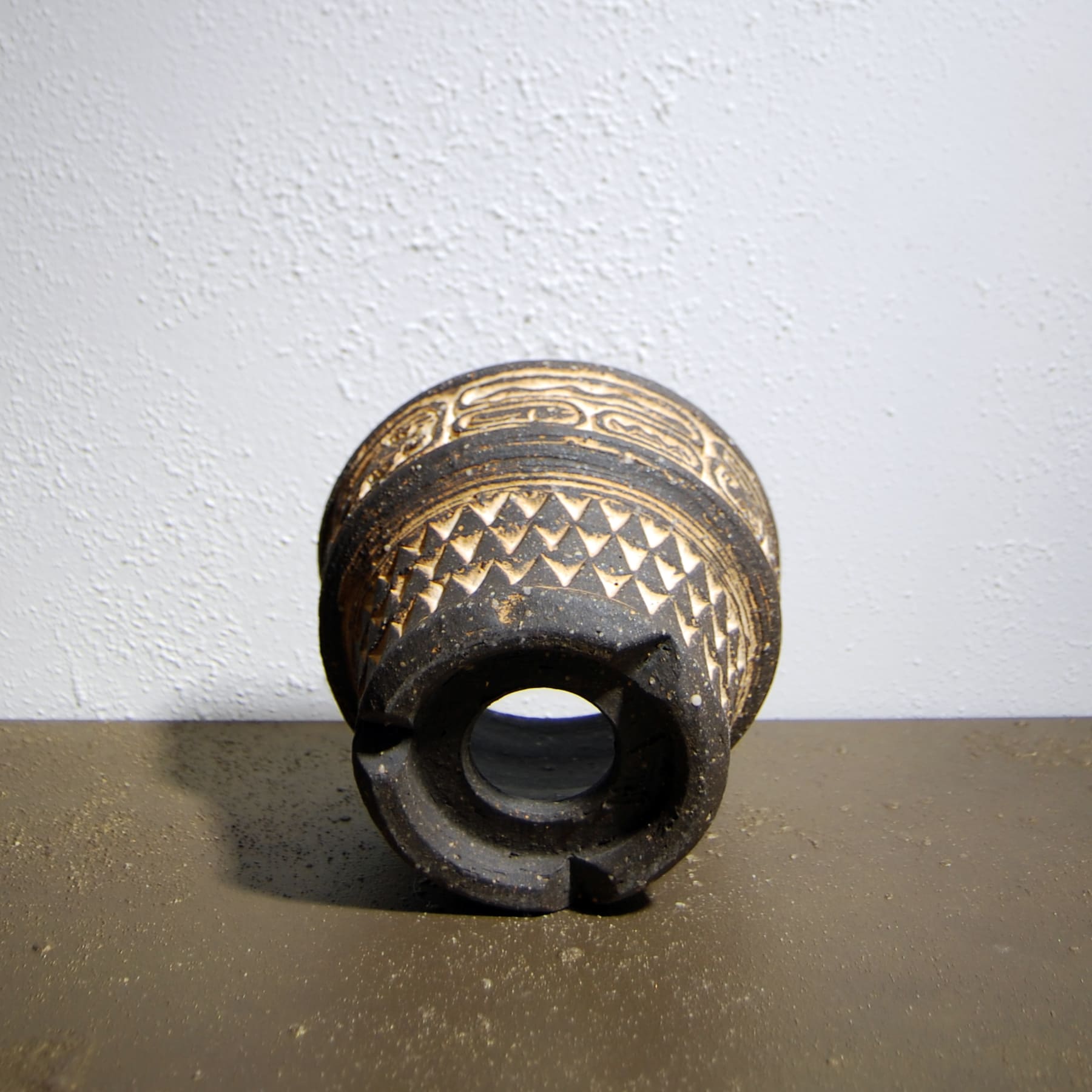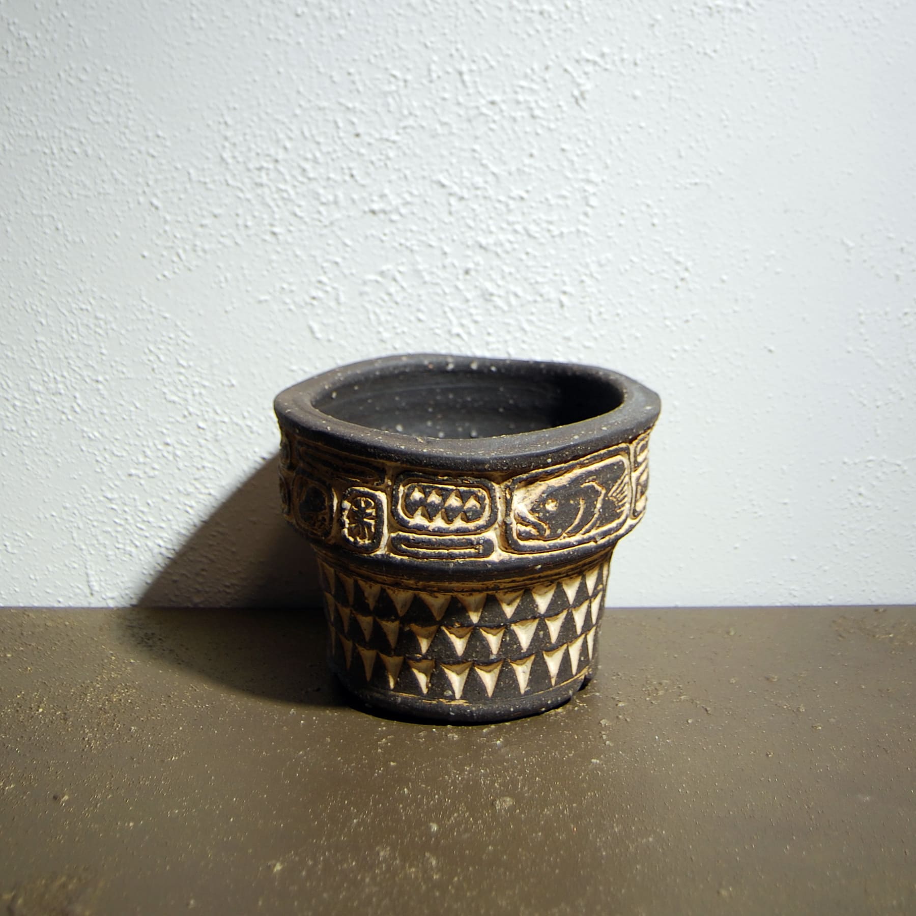象嵌炭化焼成 窓文植木鉢 202 荻野善史
