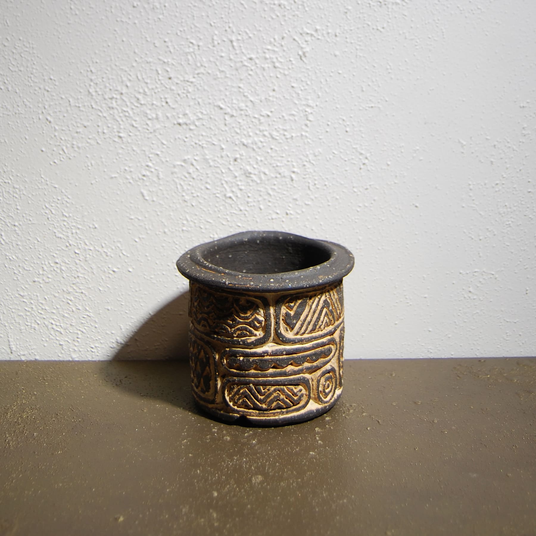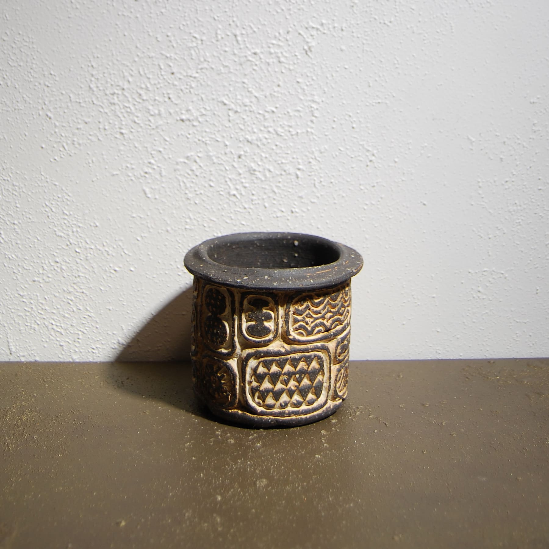 象嵌炭化焼成 窓文植木鉢 205 荻野善史