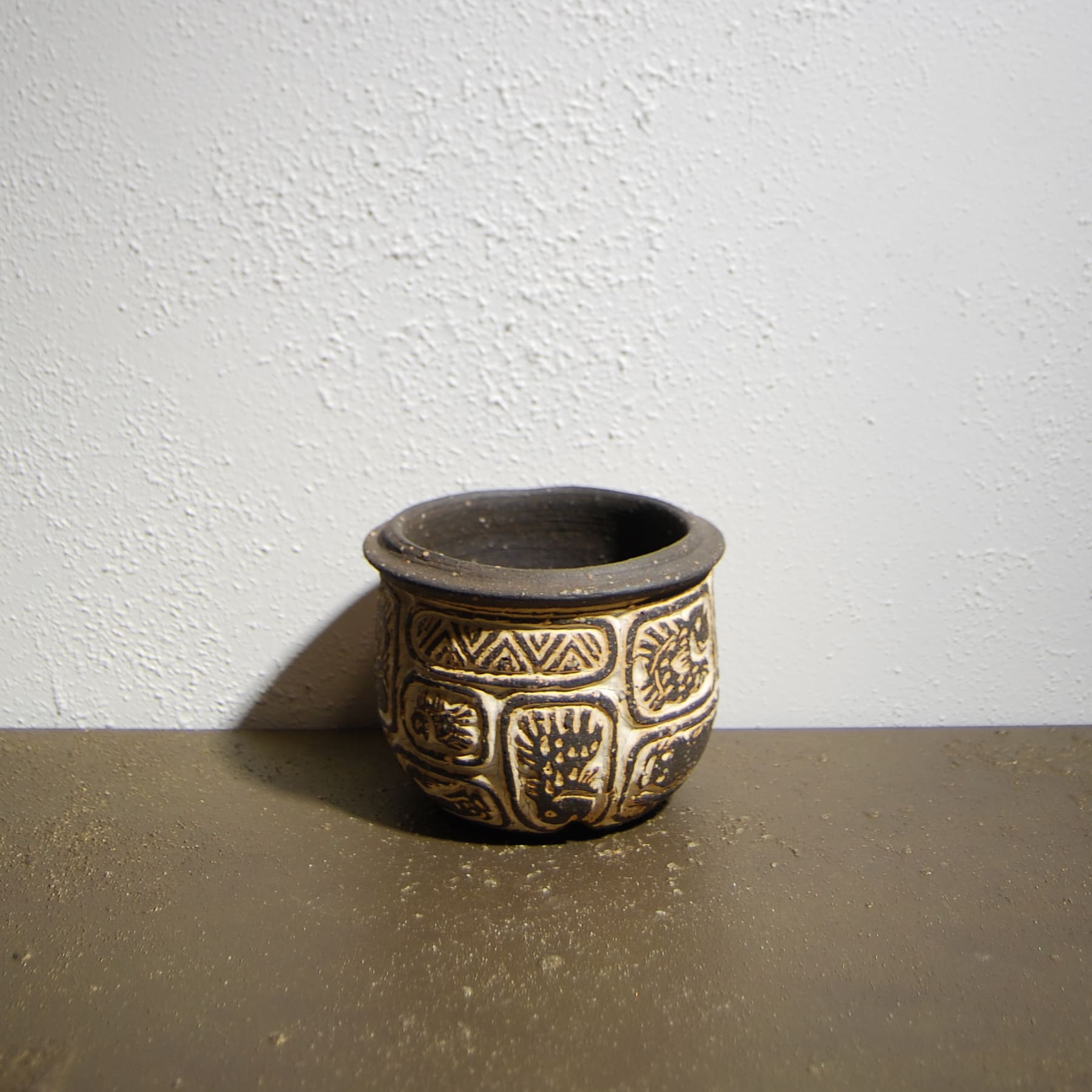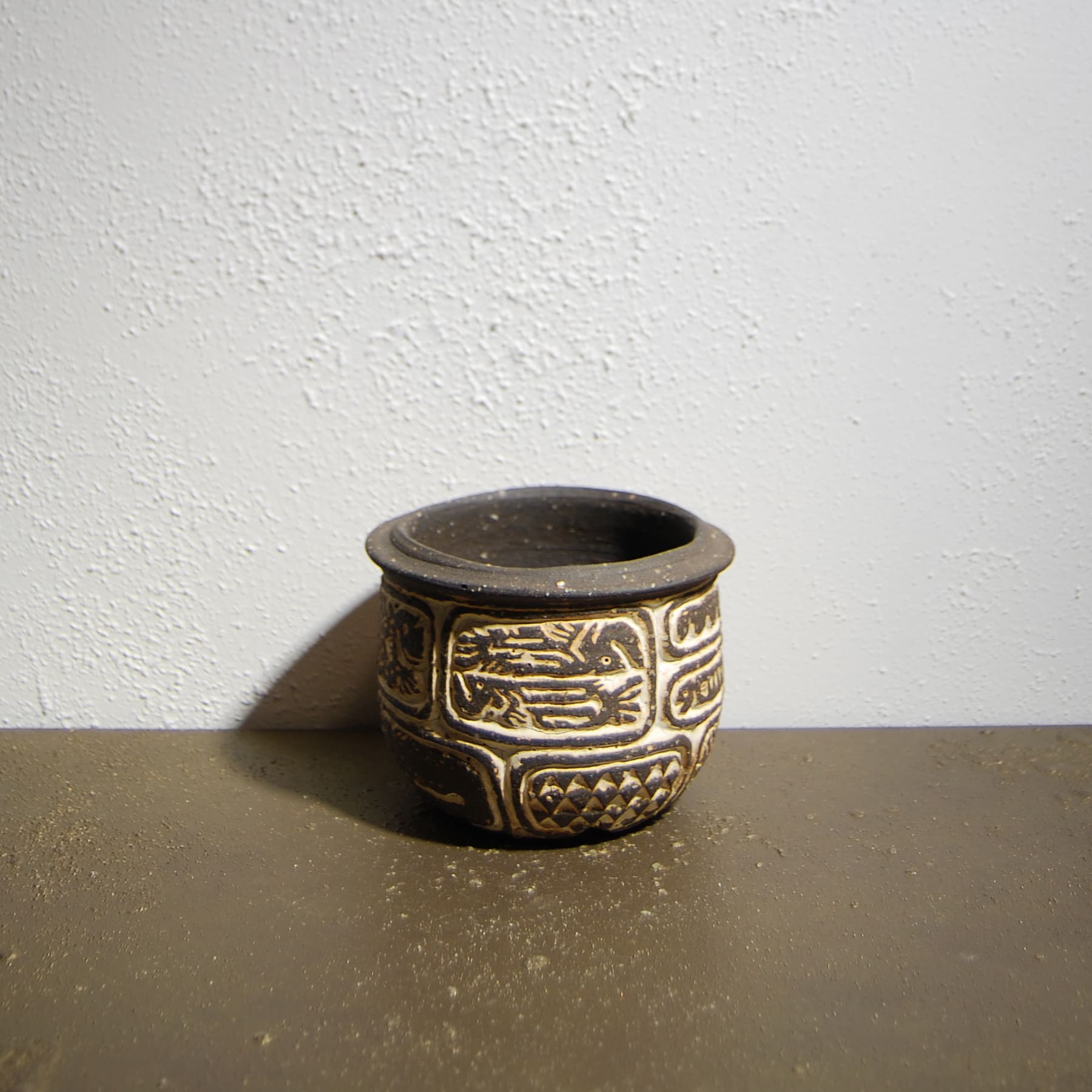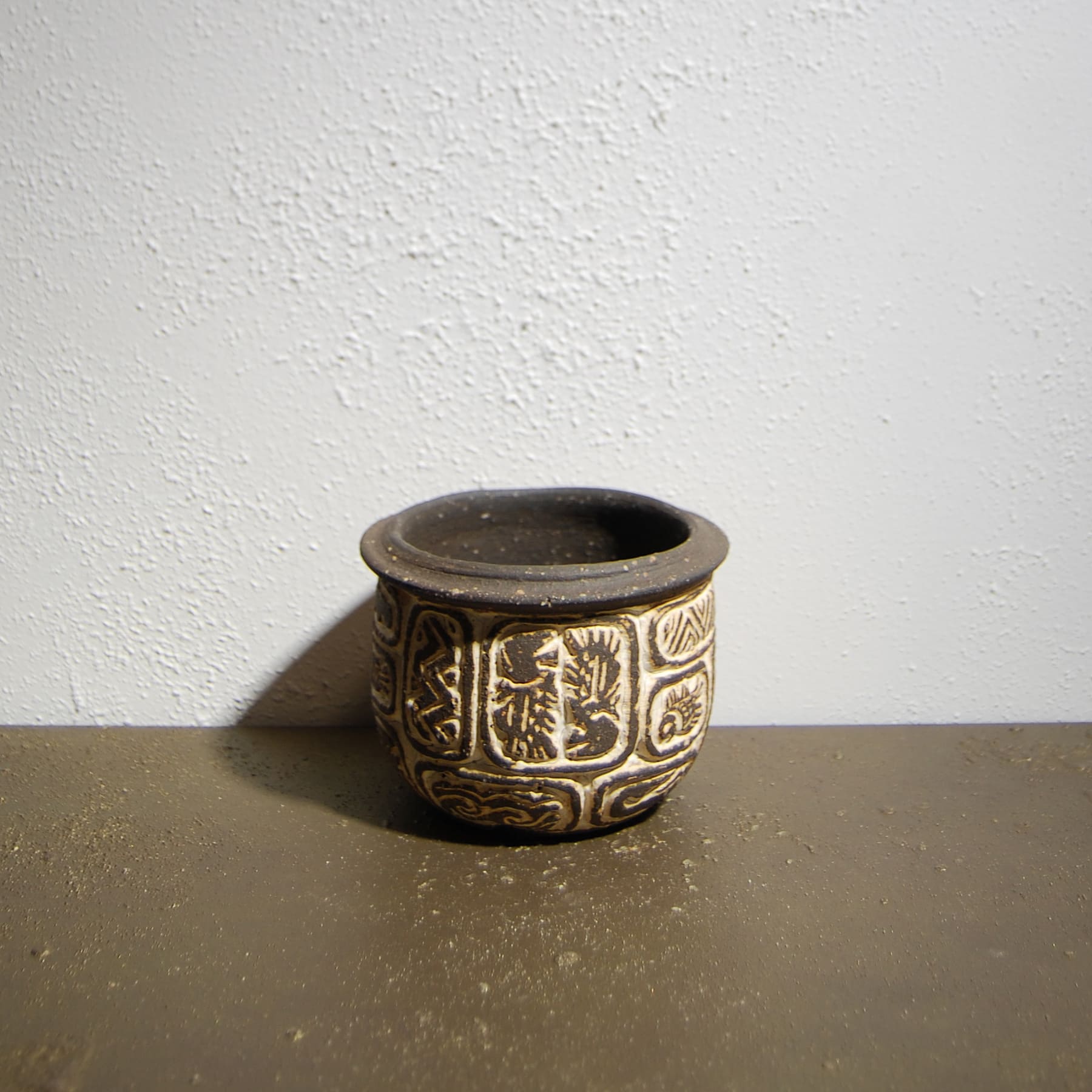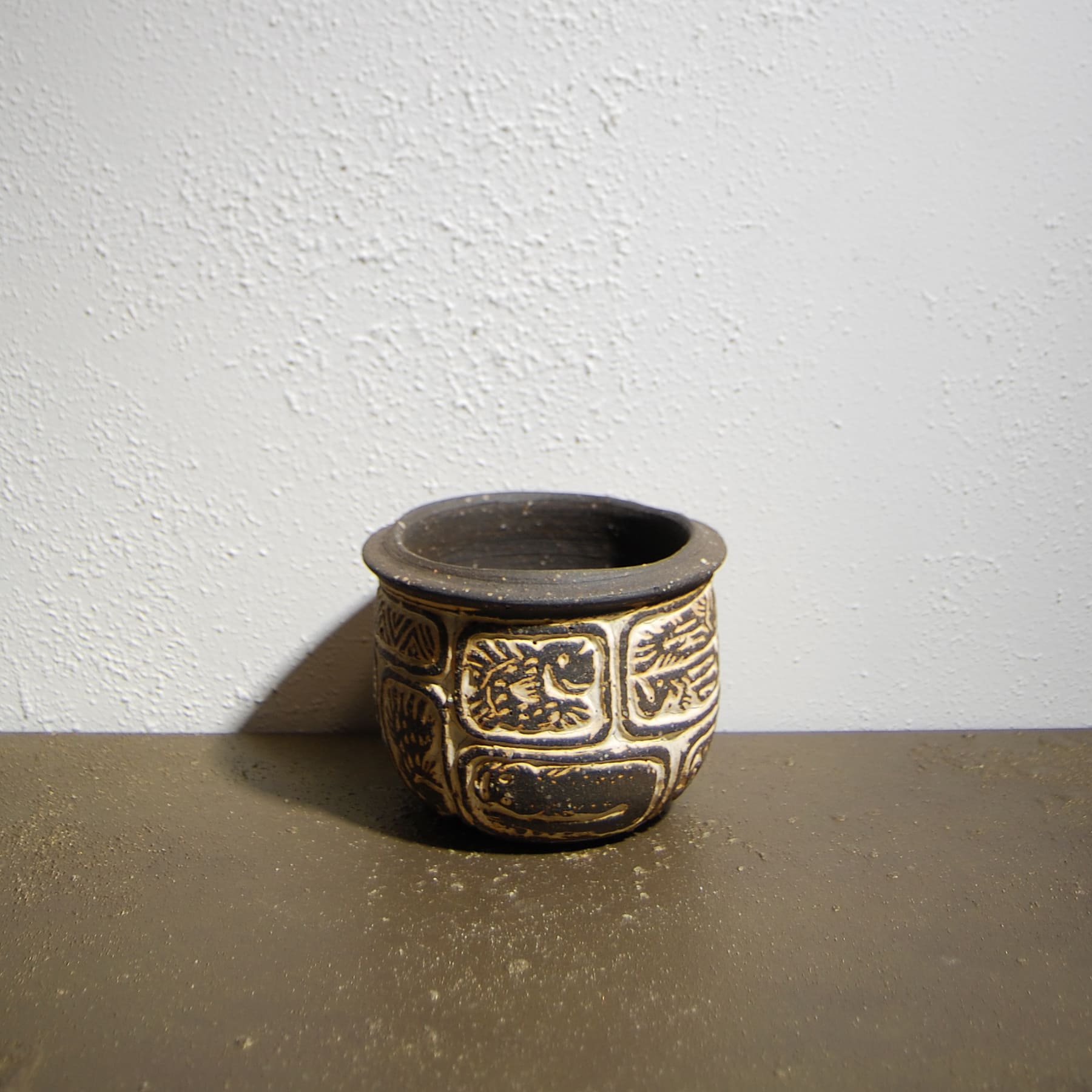 象嵌炭化焼成 窓文植木鉢 207 荻野善史