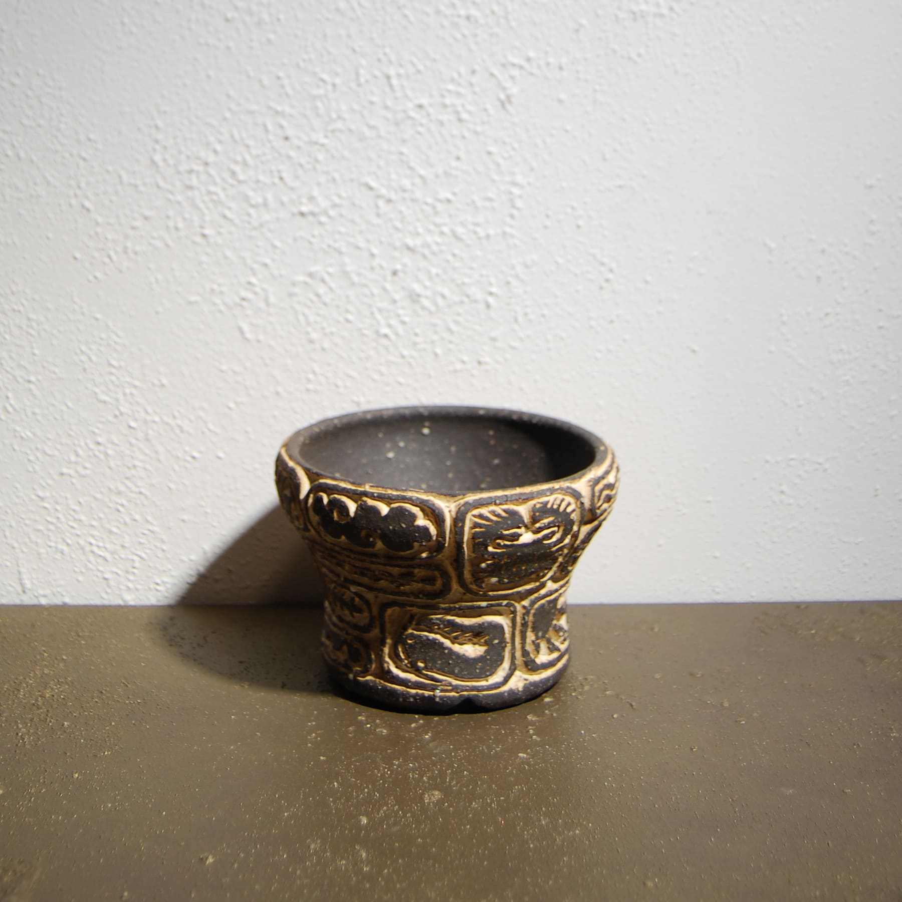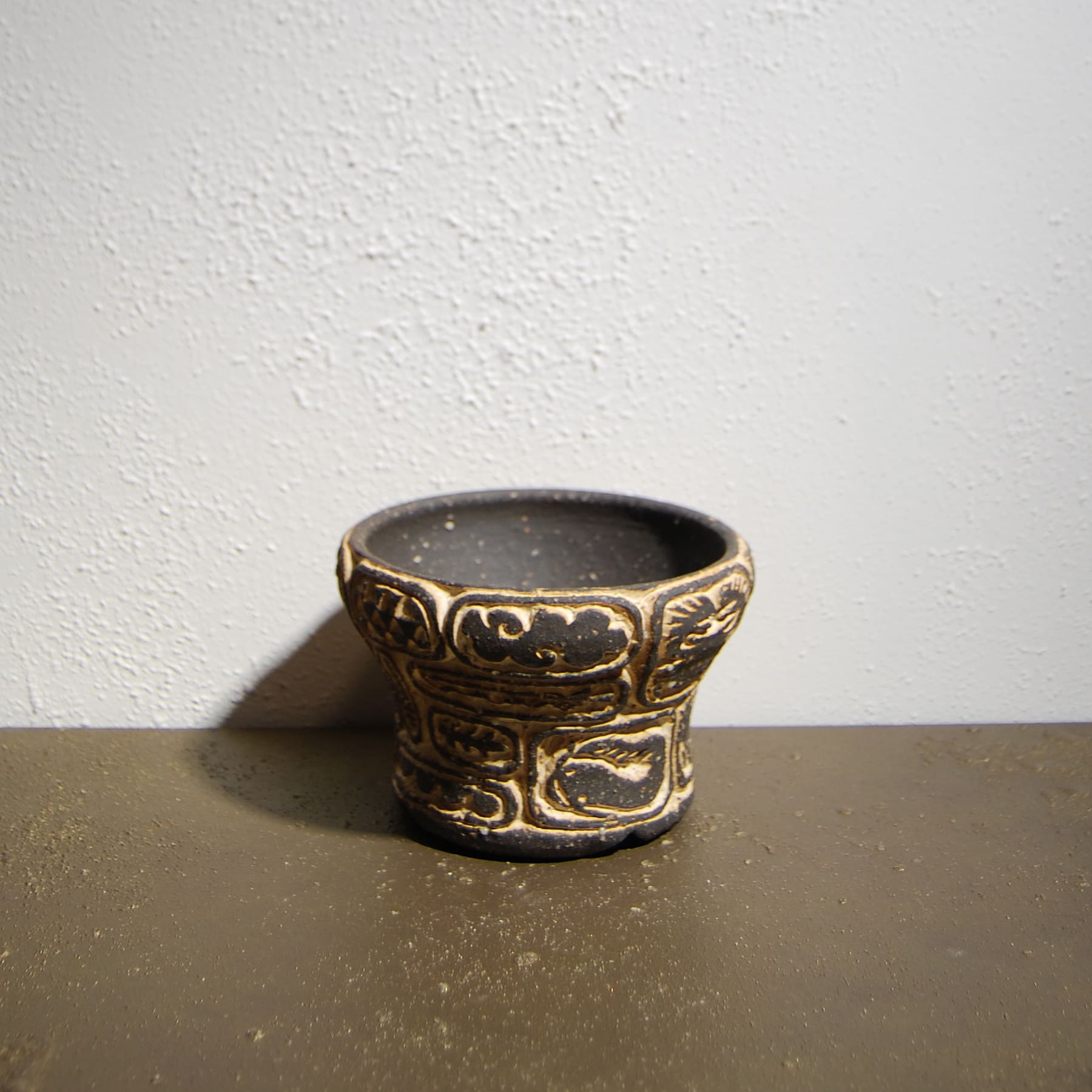 象嵌炭化焼成 窓文植木鉢 208 荻野善史