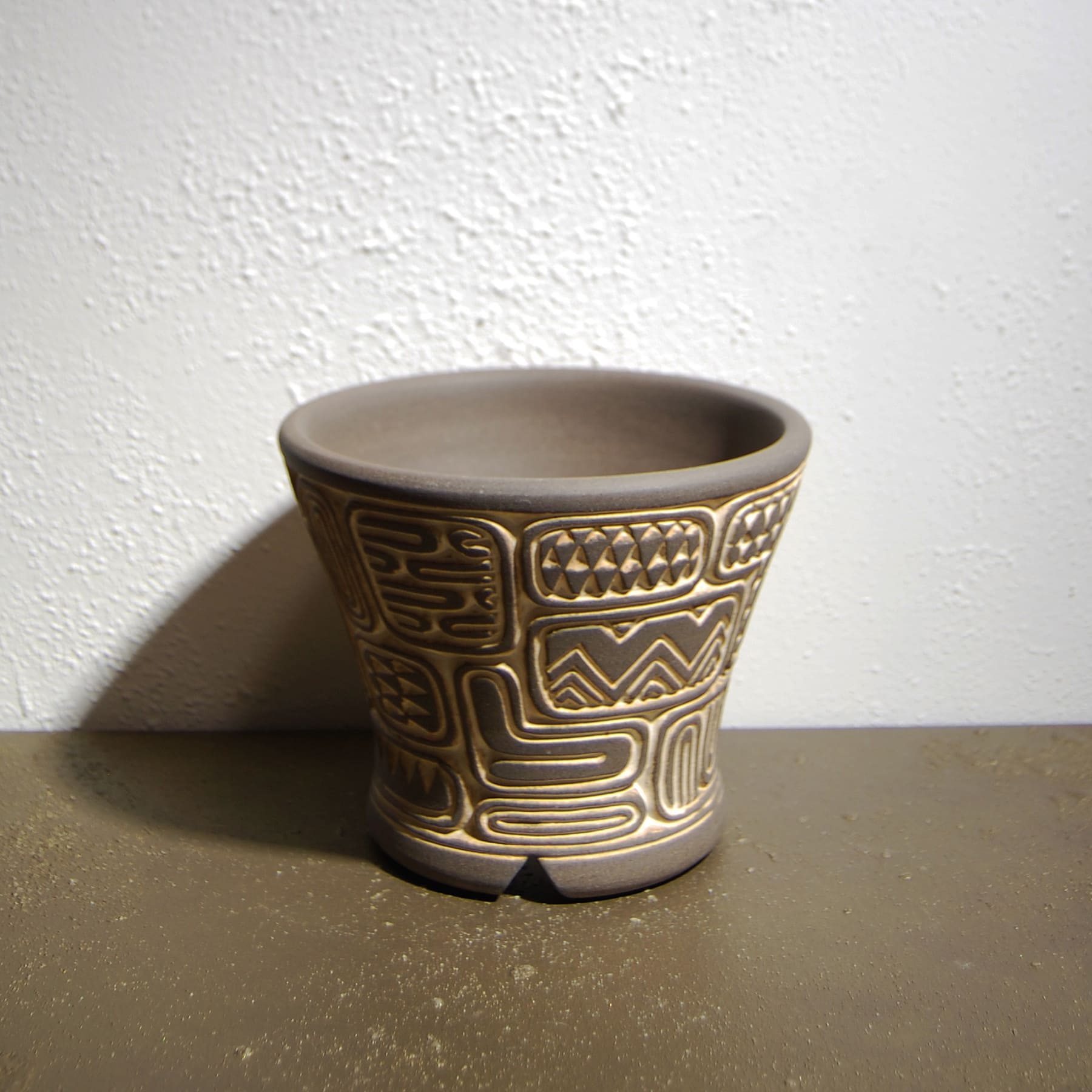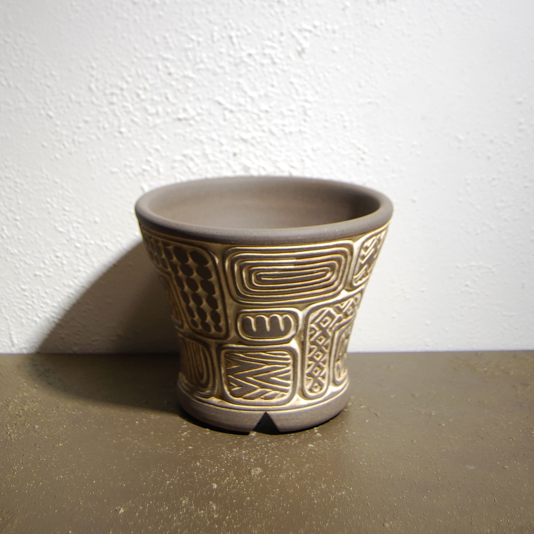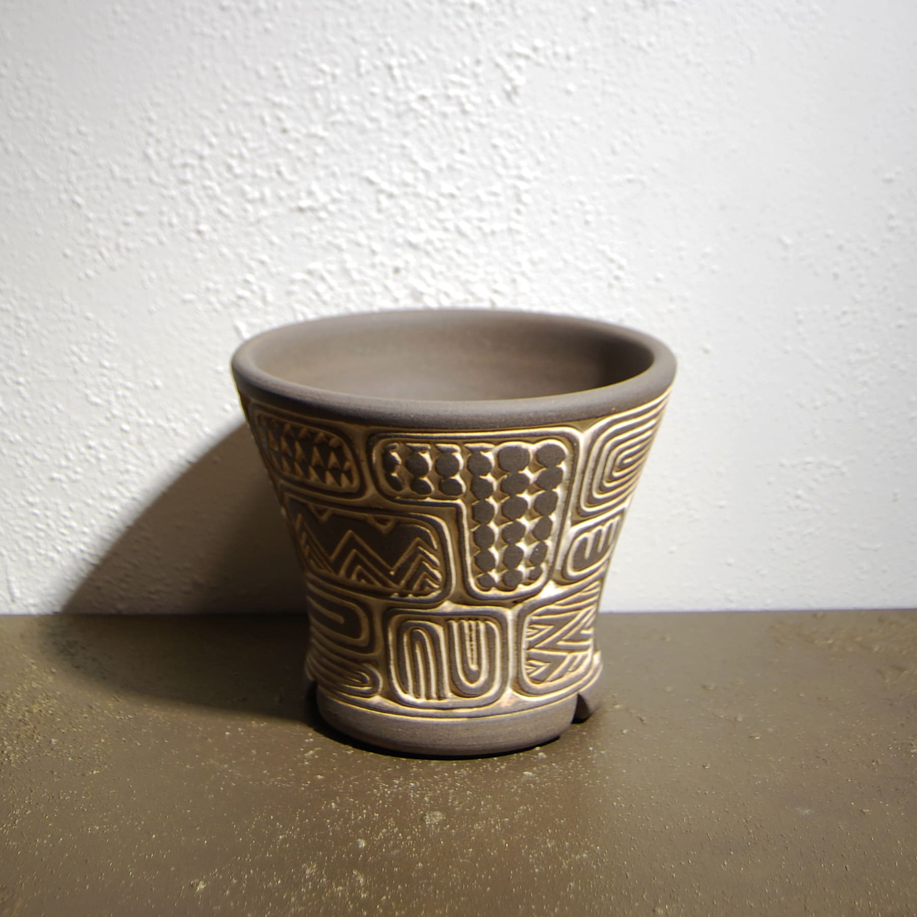 象嵌炭化焼成 窓文植木鉢 005 荻野善史