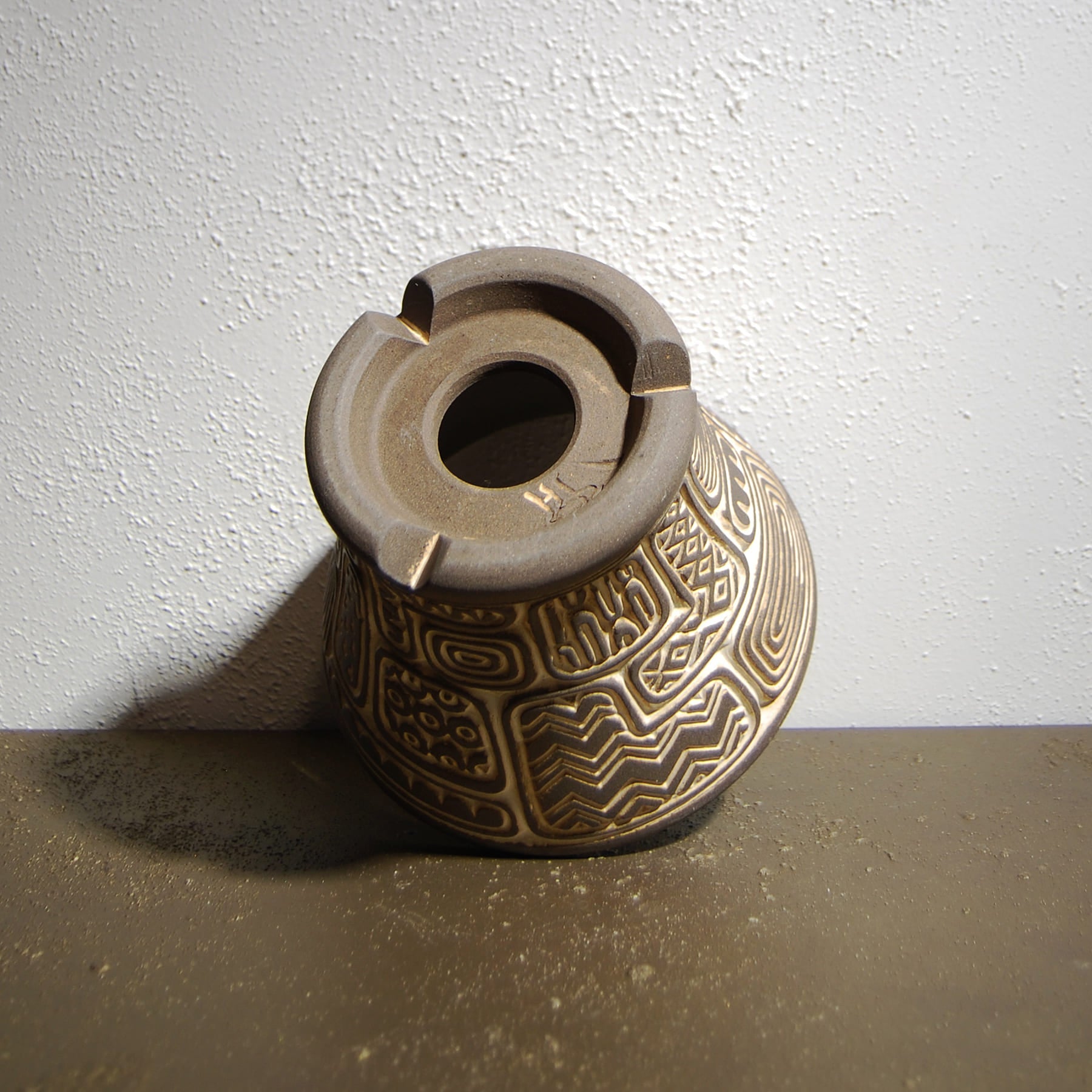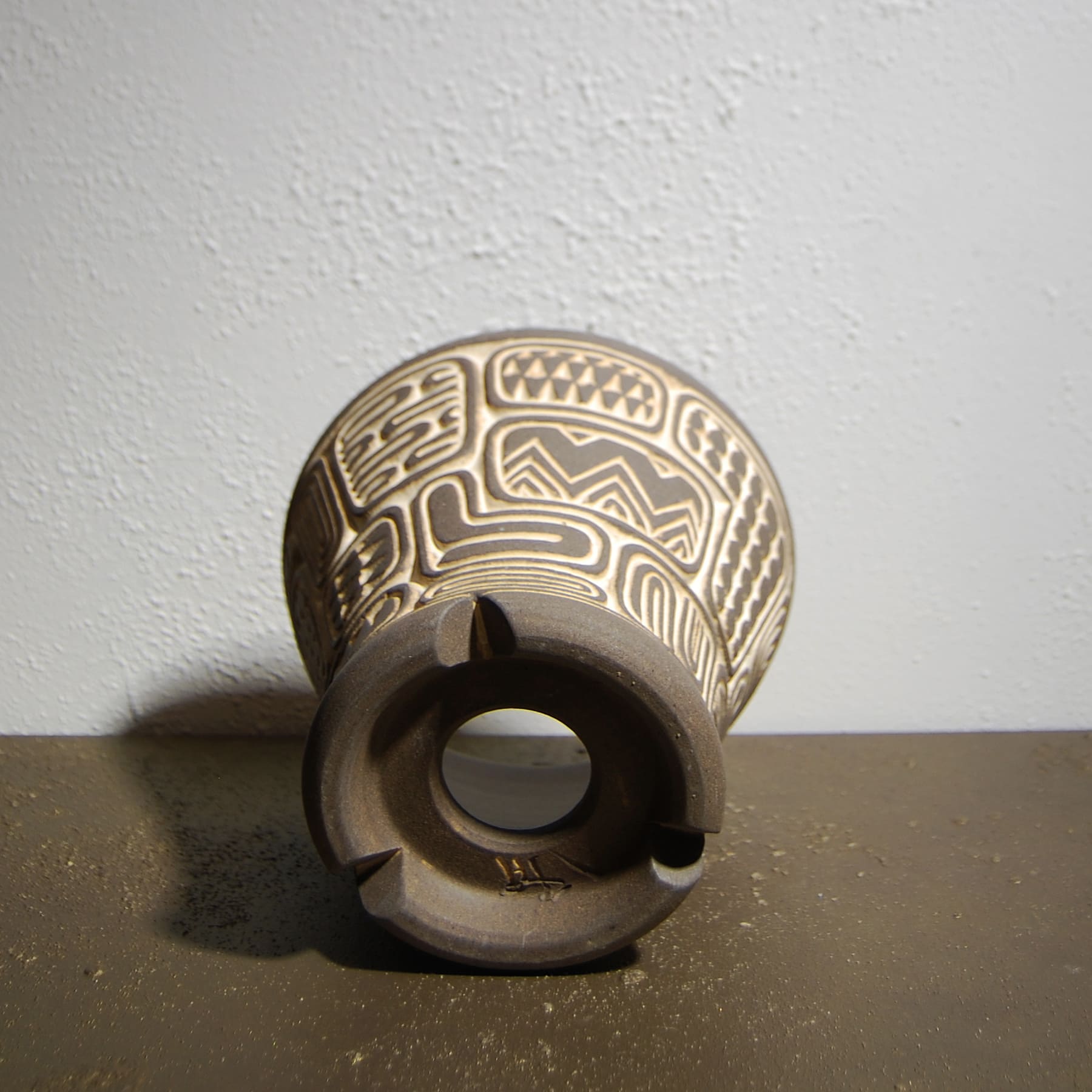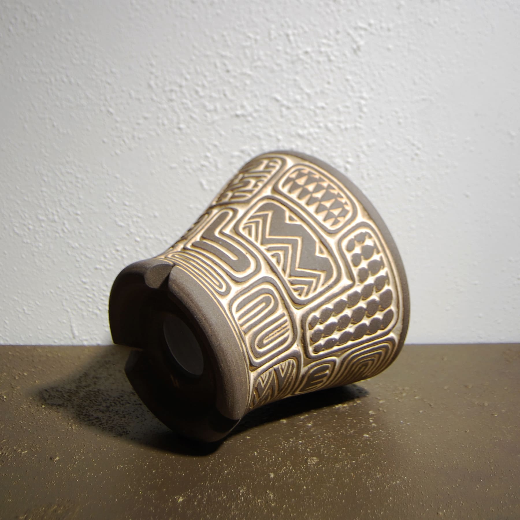 象嵌炭化焼成 窓文植木鉢 005 荻野善史