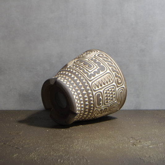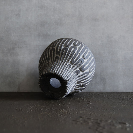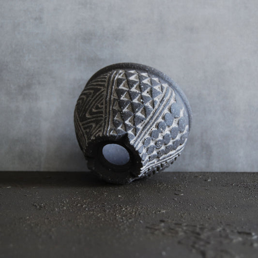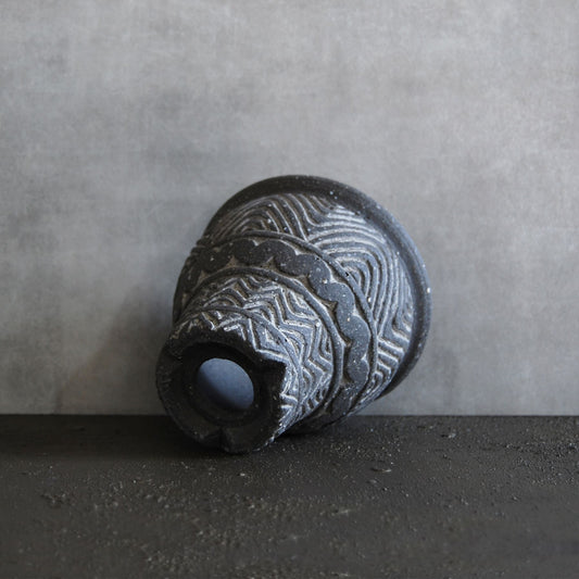 象嵌炭化焼成 窓文植木鉢 002 荻野善史