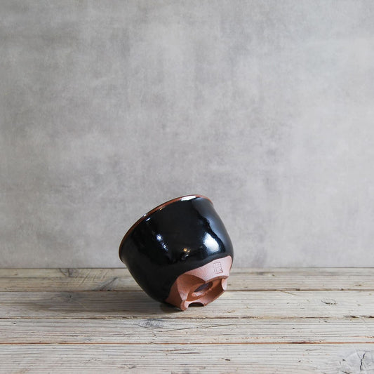 伝市鉢 コウロ型(サクラソウ型)つや消し黒釉 2.5号