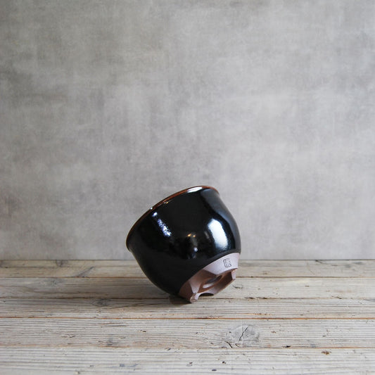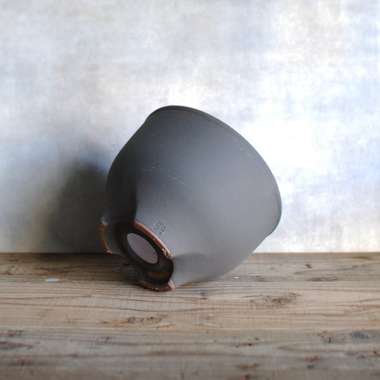 伝市鉢 コウロ型(サクラソウ型)つや消し黒釉 6号