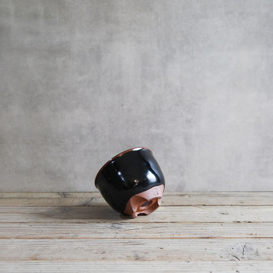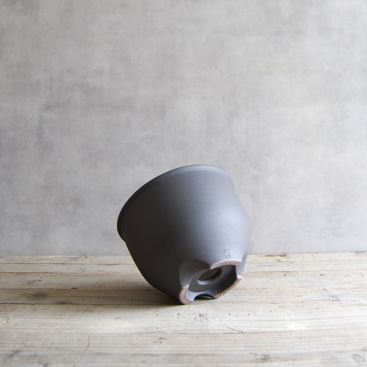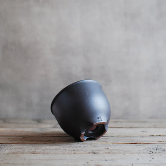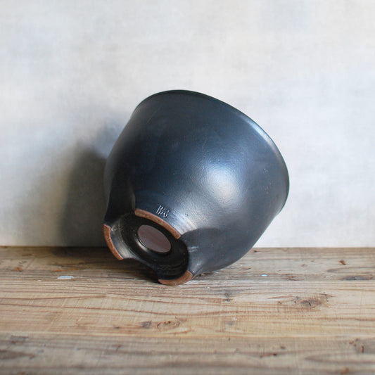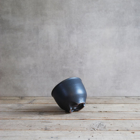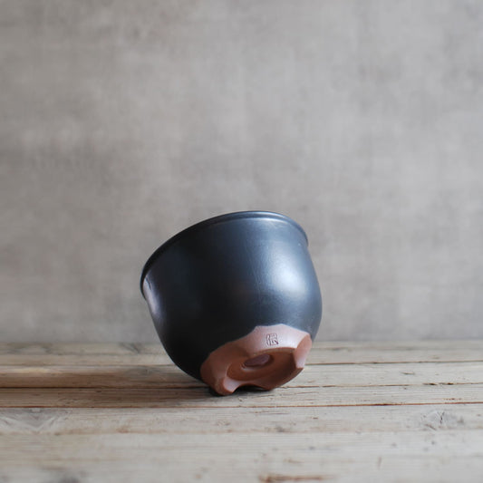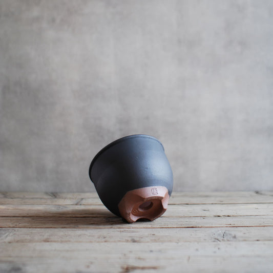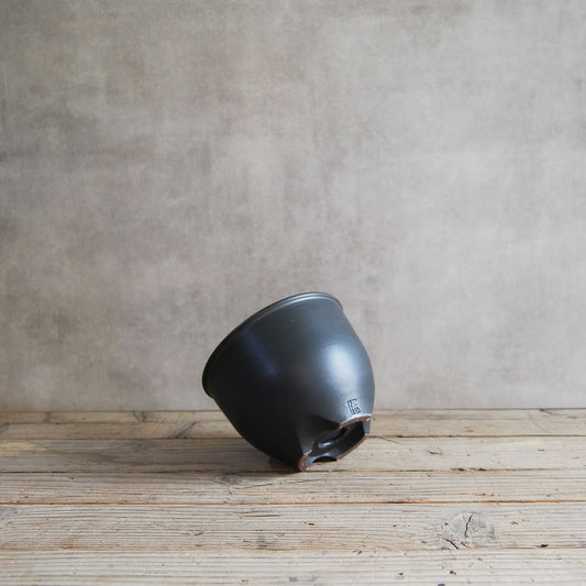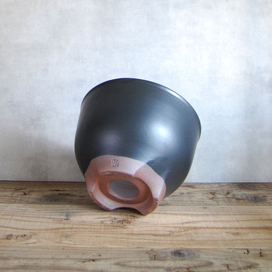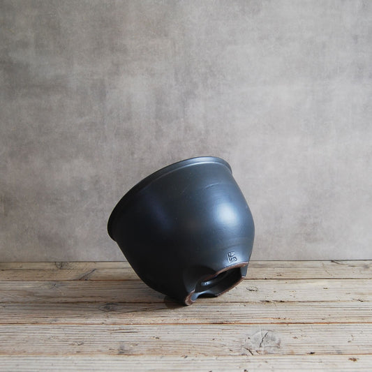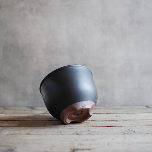 伝市鉢 コウロ型(サクラソウ型)つや消し黒釉(別注足元)2.5号