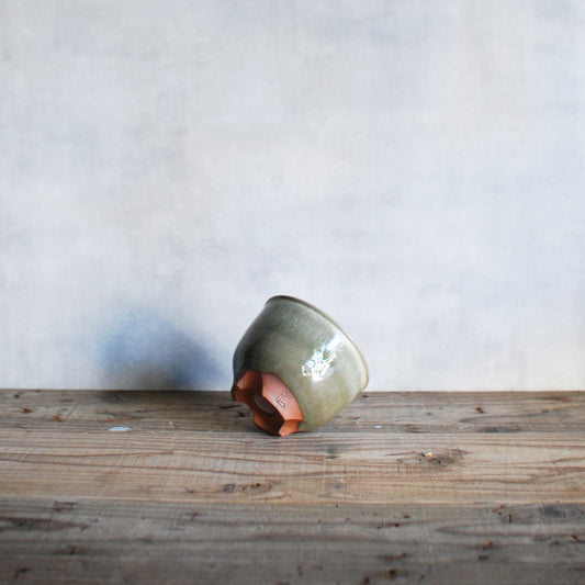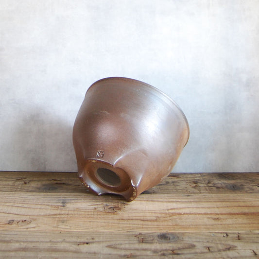 伝市鉢 コウロ型(サクラソウ型)青銅マット釉(別注足元)3.5号