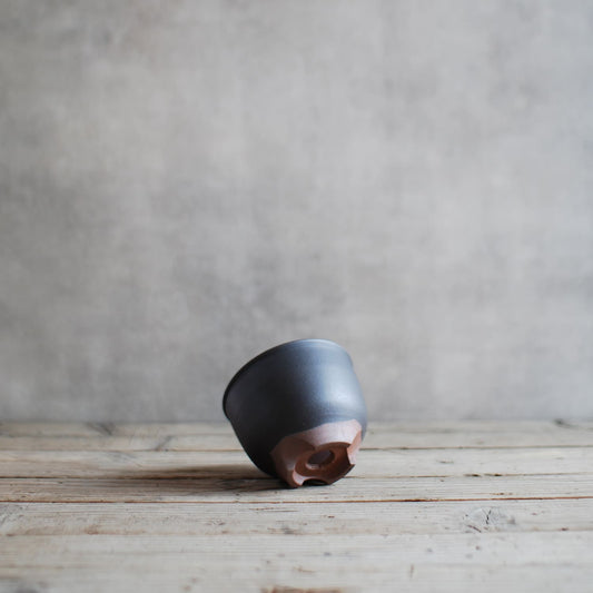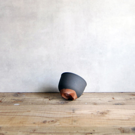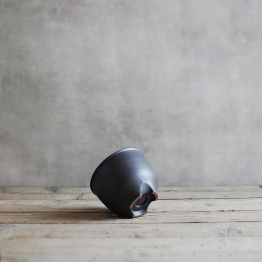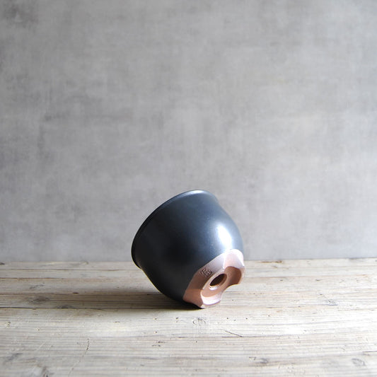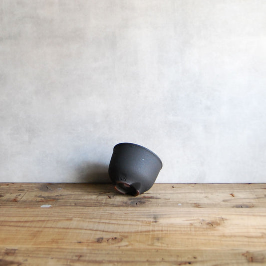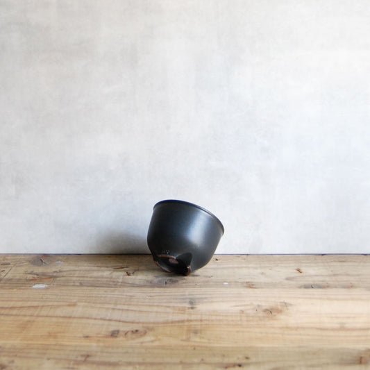 伝市鉢 コウロ型(サクラソウ型)つや消し黒釉 2.5号