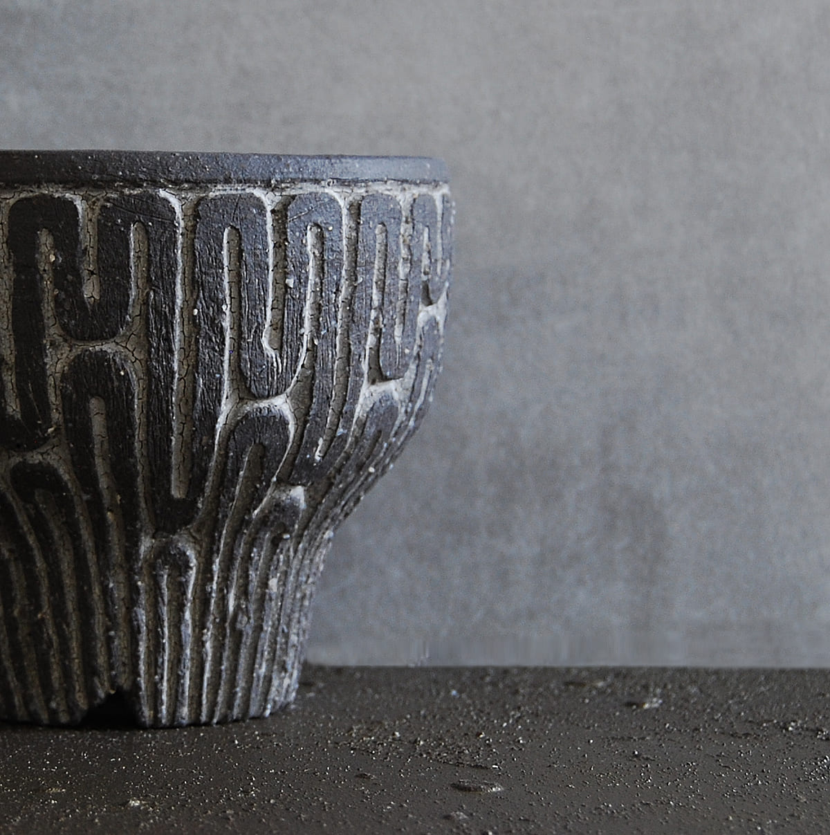 象嵌炭化焼成 刻文太鼓植木鉢 247 荻野善史