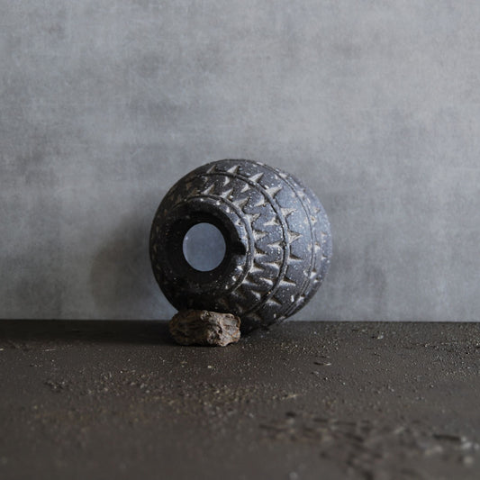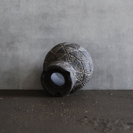 象嵌炭化焼成 窓文植木鉢 002 荻野善史