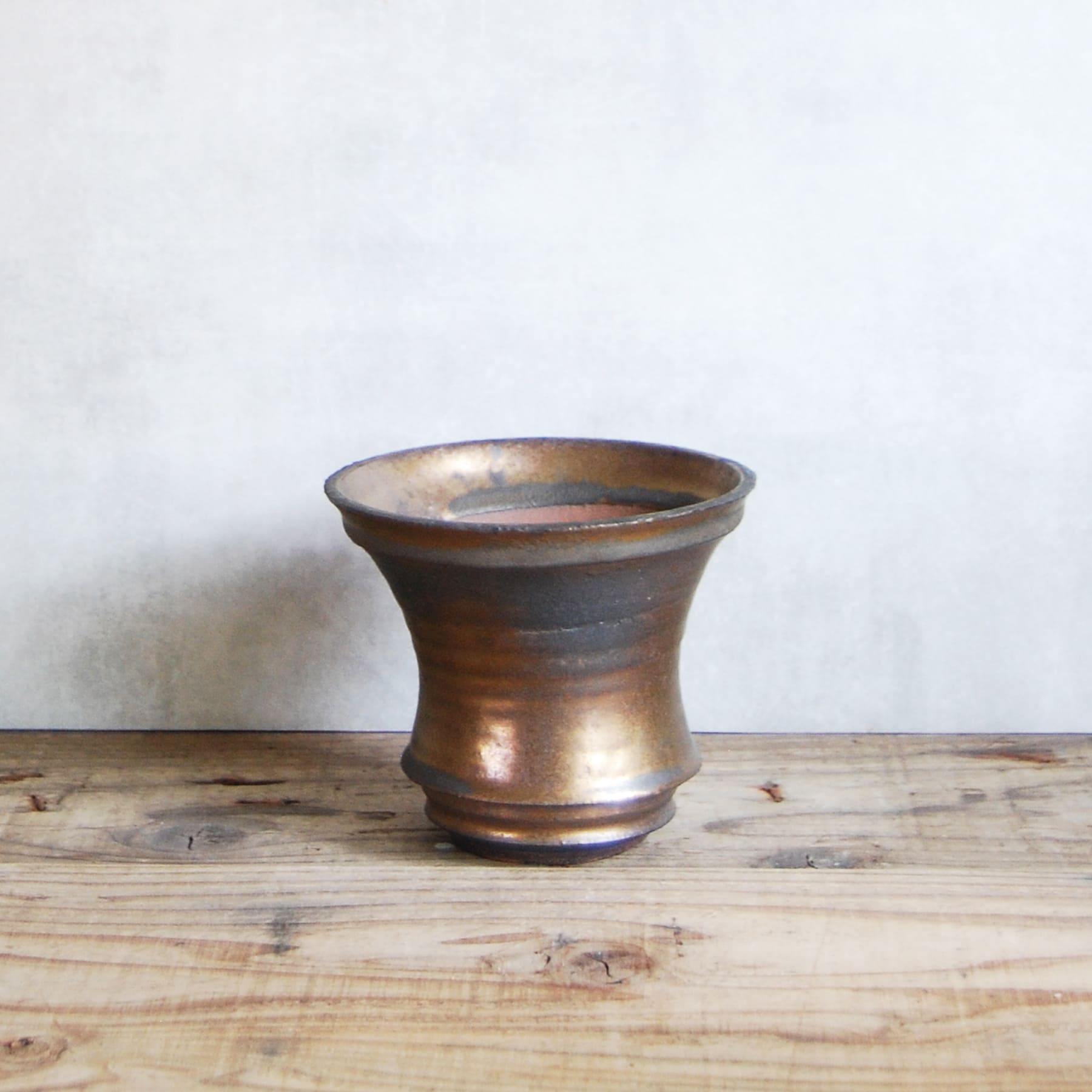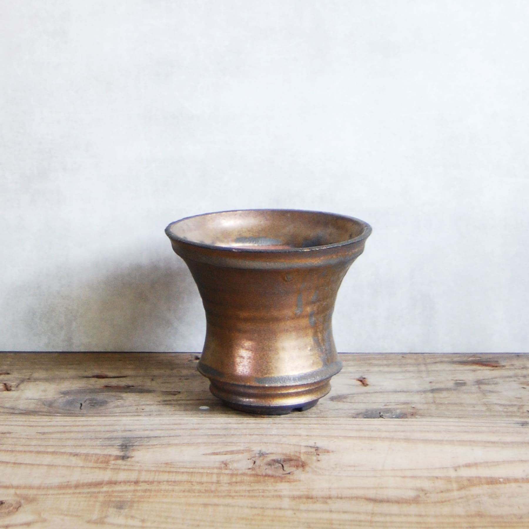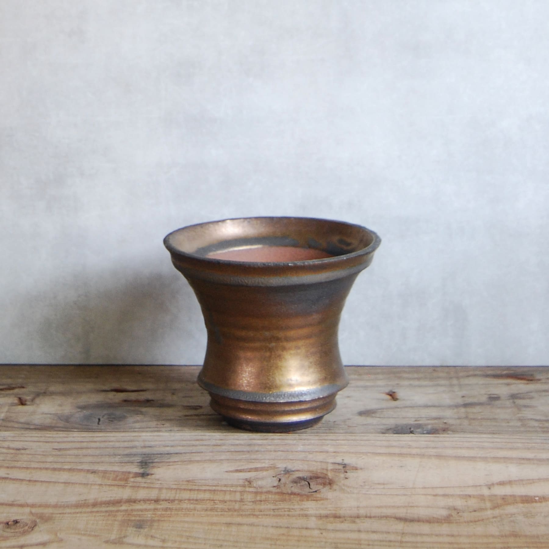 一つひとつハンドメイドで成形され、灯油窯で焼成された金彩鉢はアガベやコーデックスだけでなく様々な観葉植物にも合わせやすい植木鉢です。金彩の表情が美しいだけでなく通気性や排水性も考慮されているので根腐れを起こしにくいのも魅力です。