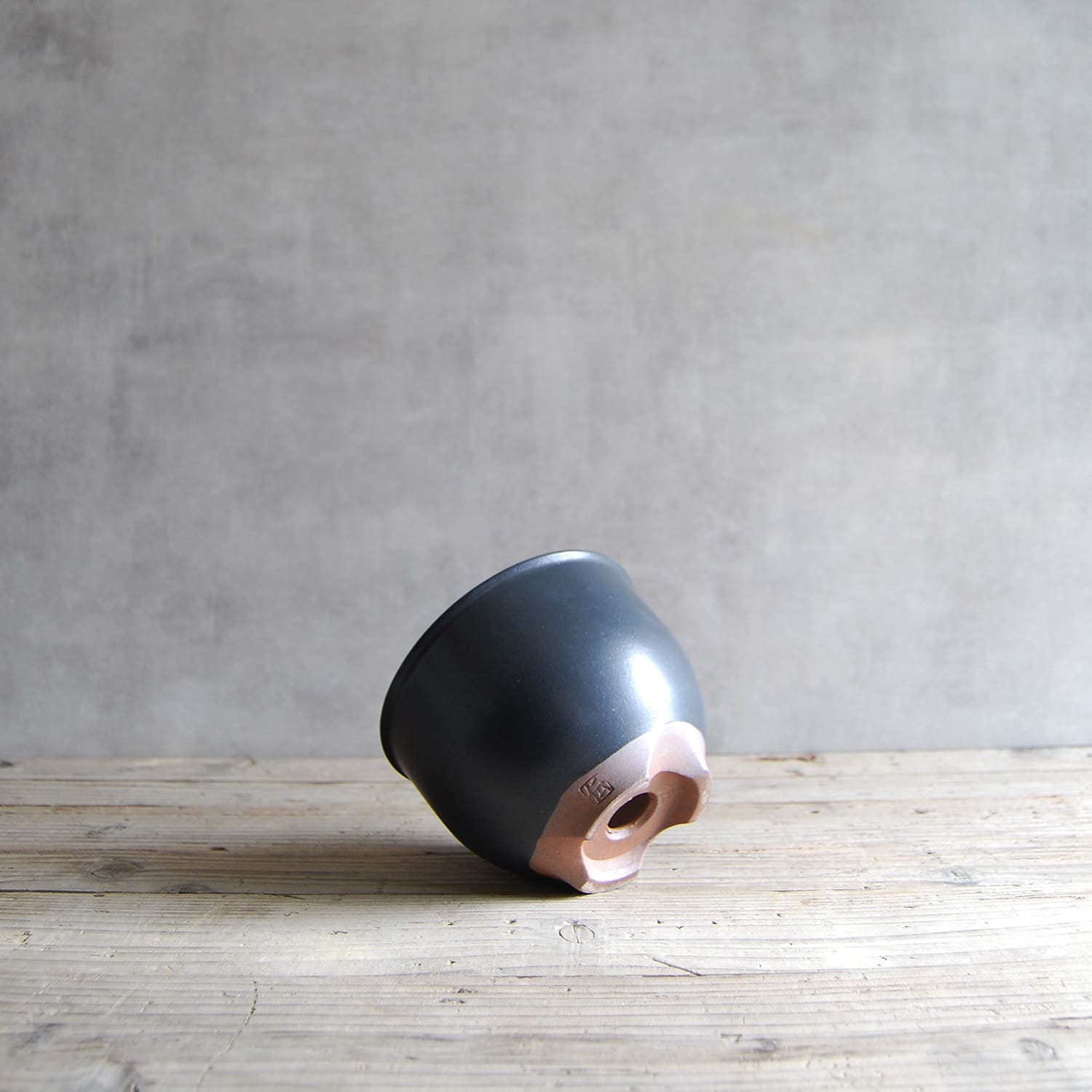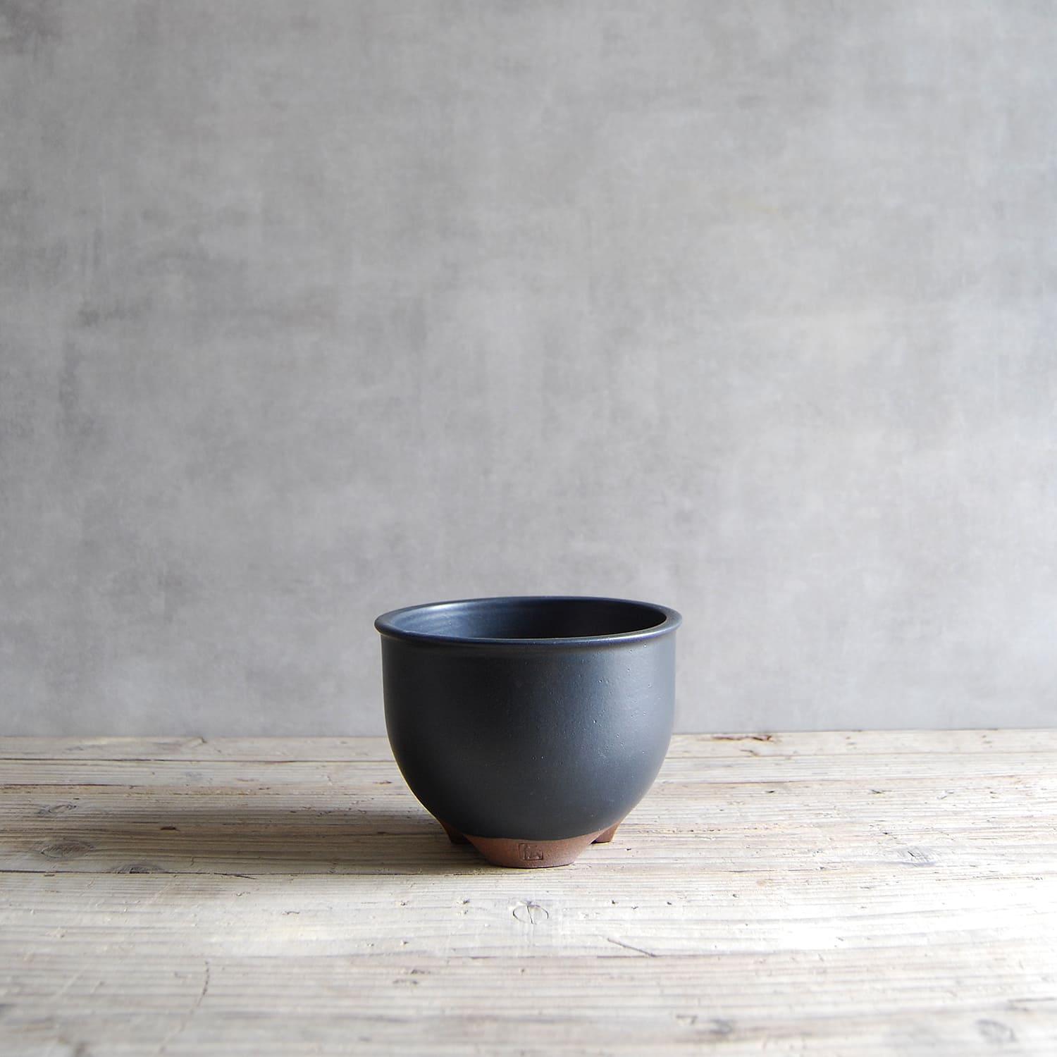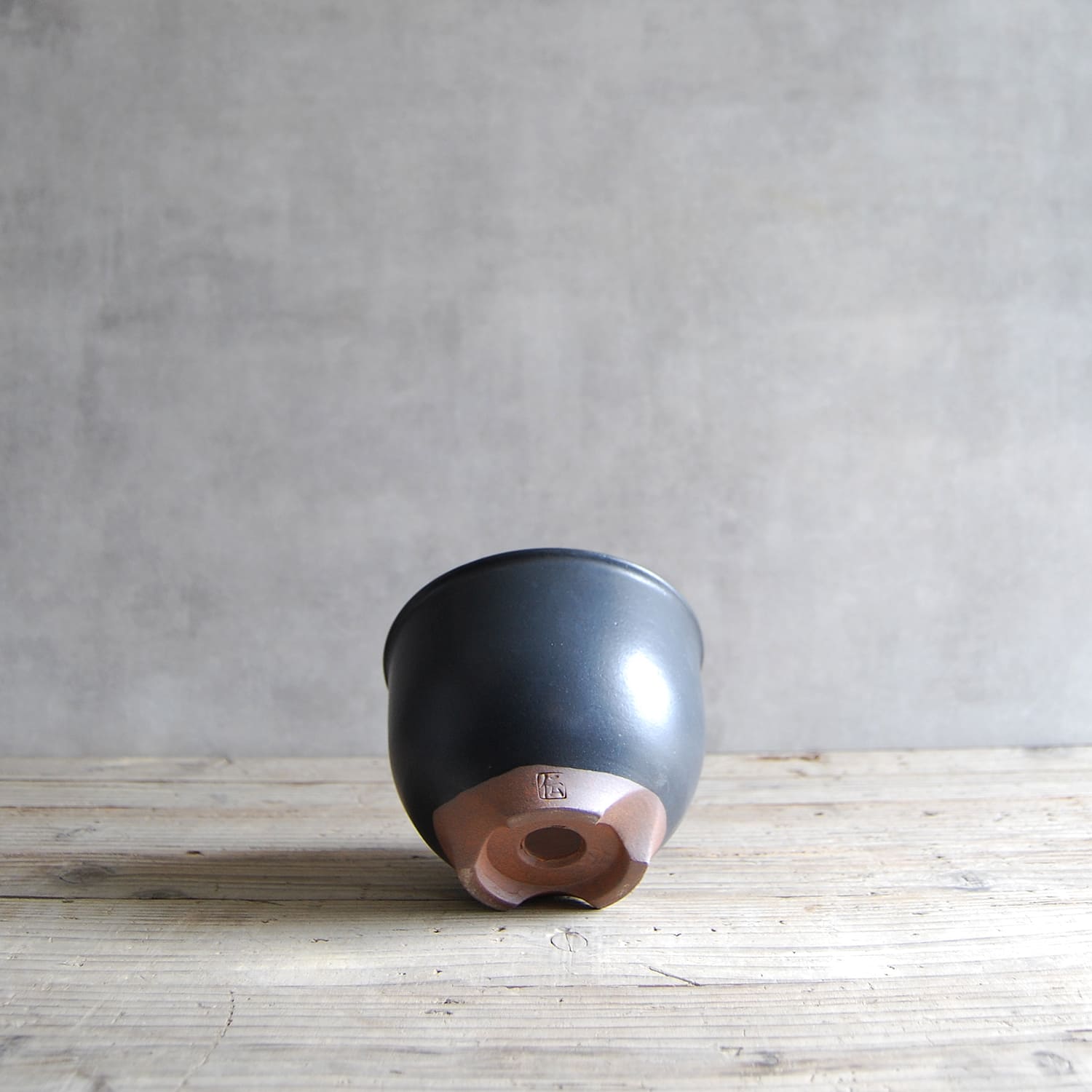 伝市鉢 コウロ型(サクラソウ型)つや消し黒釉 4号