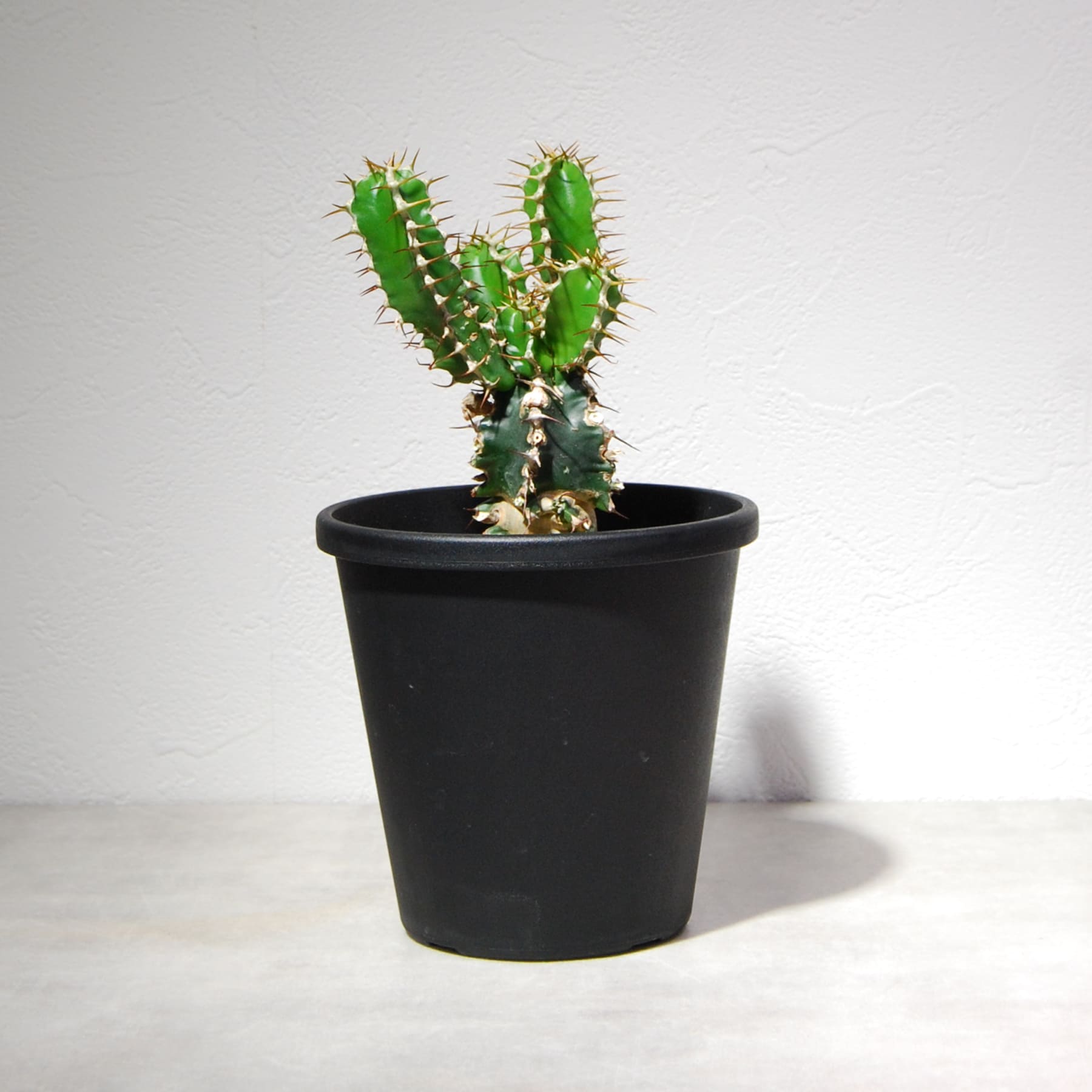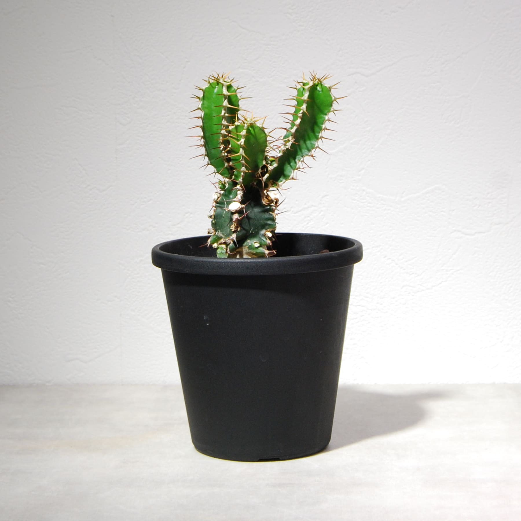 南アフリカ・東アフリカの標高の高い地域に自生するボコボコした太い塊根部が特徴のユーフォルビアです。その特徴のある塊根部は葉が枯れた痕が残り、独特の雰囲気と迫力があります。多肉質で太い緑色の葉にはトゲがあり葉が展開して充実するとさらに迫力が増します。